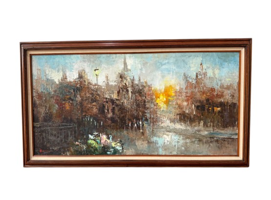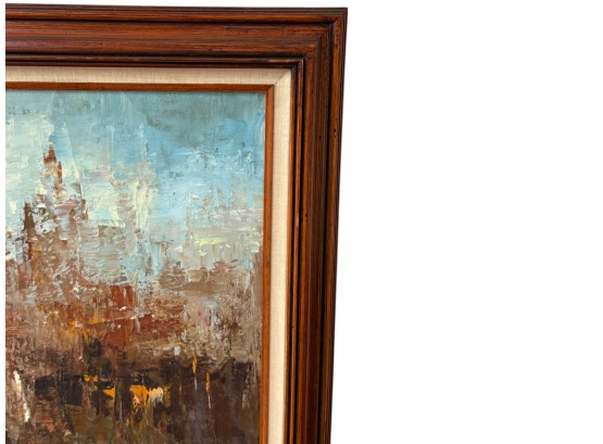 Vibrant, abstract cityscape with expressive color to evoke the energy of urban life.