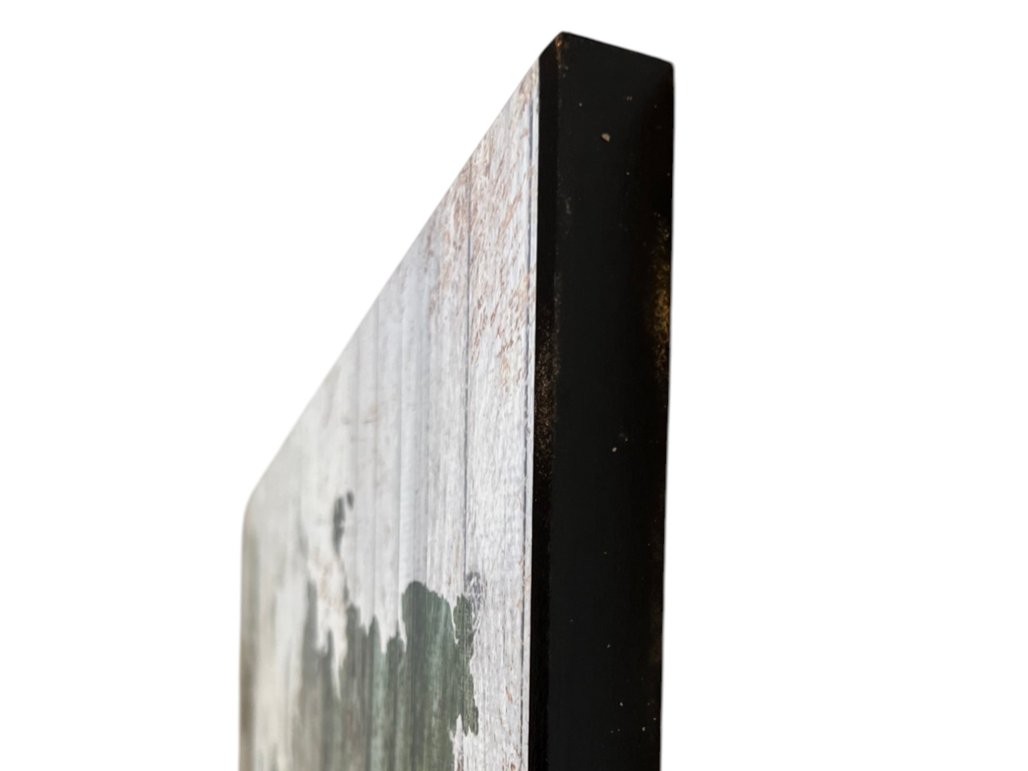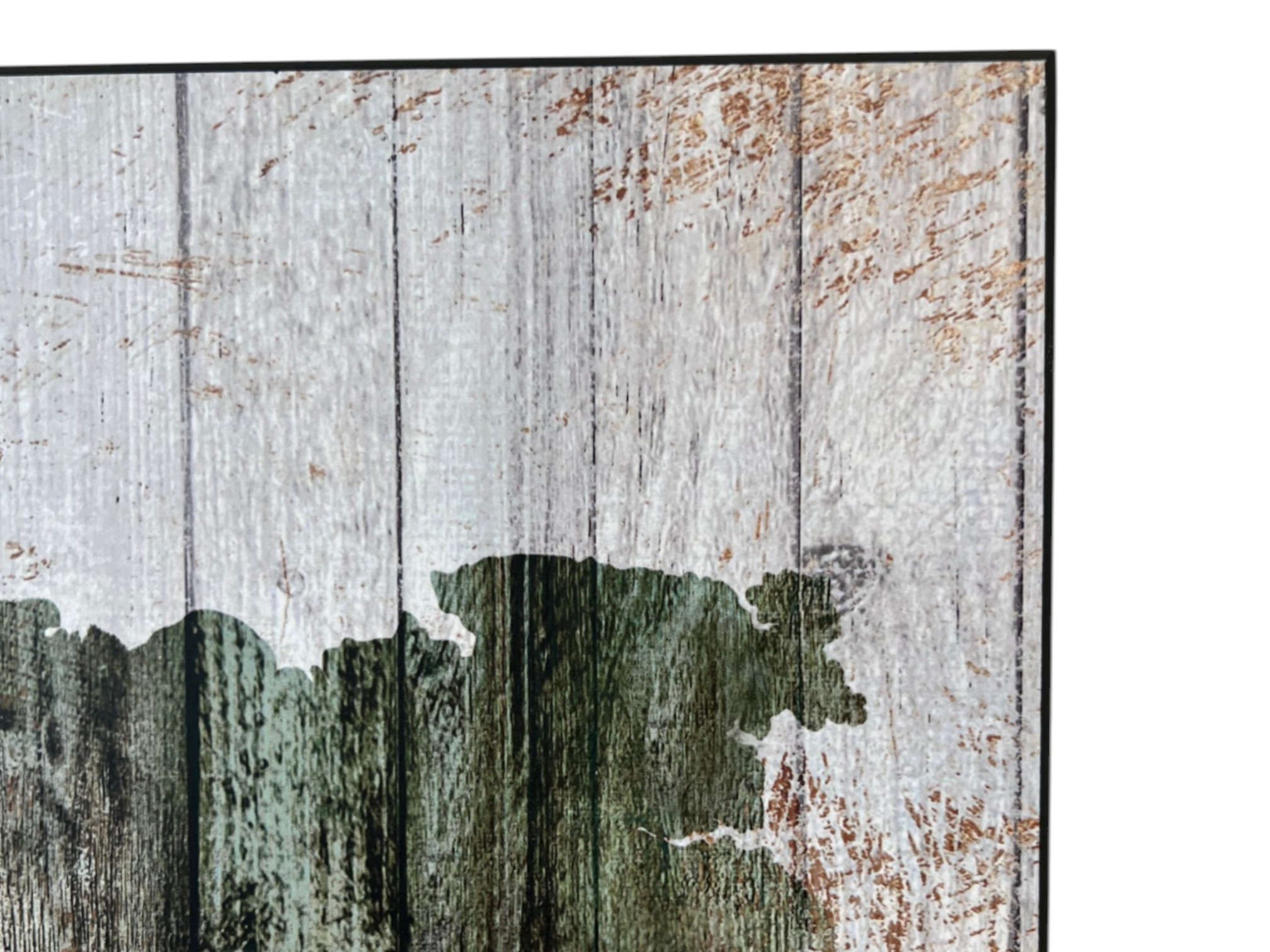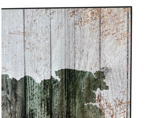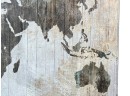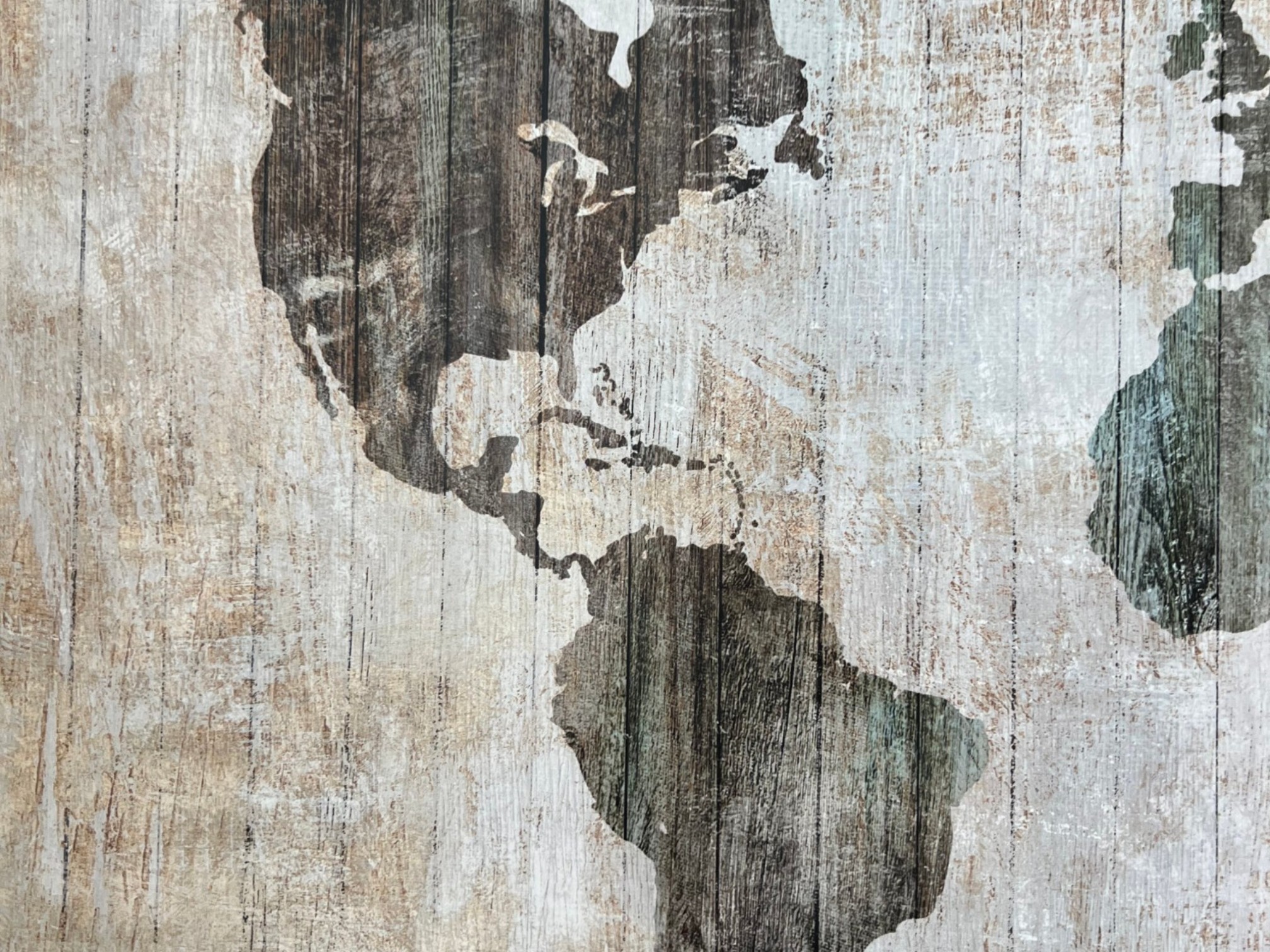 "World Map I" by Isabelle Z (American, 21st c.) canvas art print, featuring a vintage, weathered aesthetic with the world map overlaid on a background that resembles vertical wood planks.