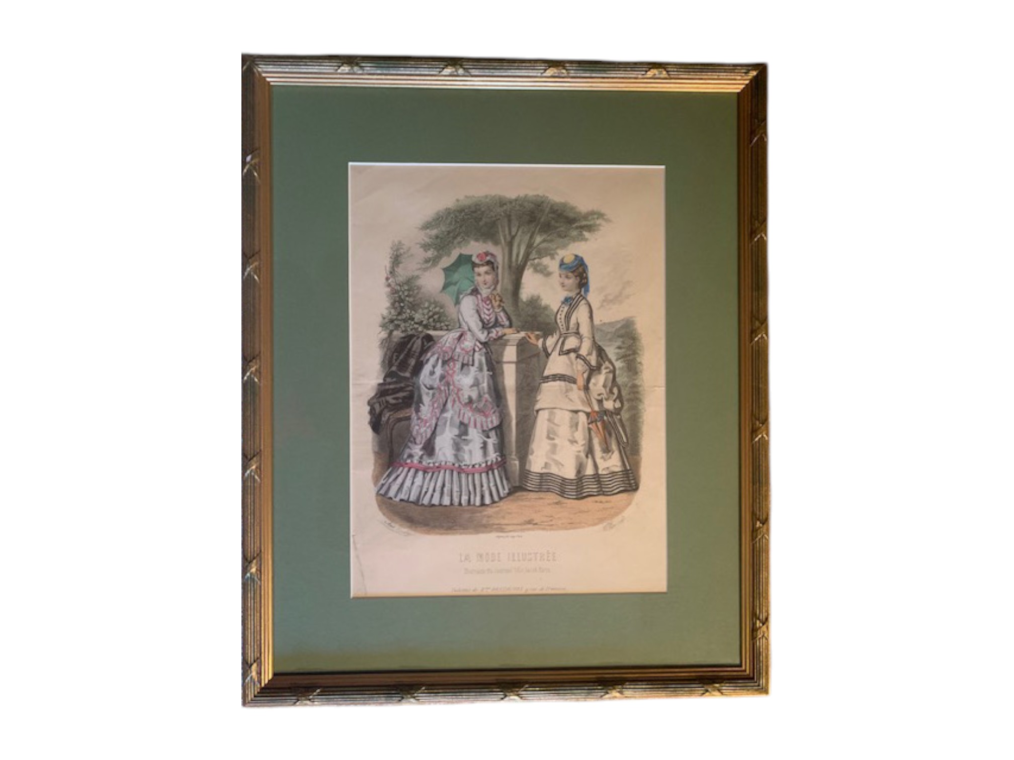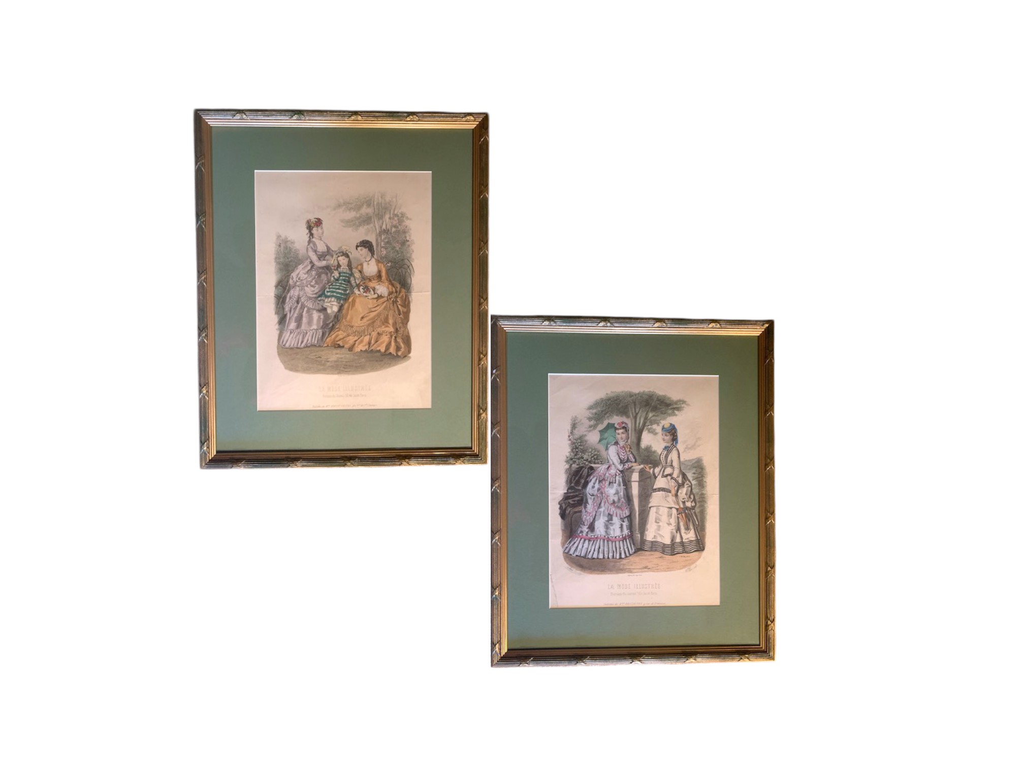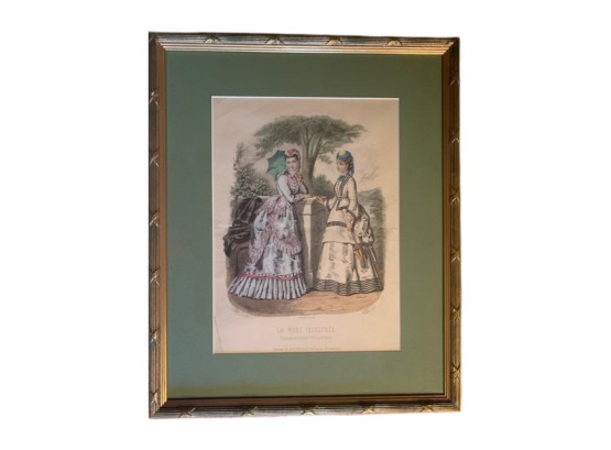 Pair of hand‑colored fashion plates from the French magazine "La Mode Illustrée," one of Paris’s most prominent fashion periodicals (1860-1937).