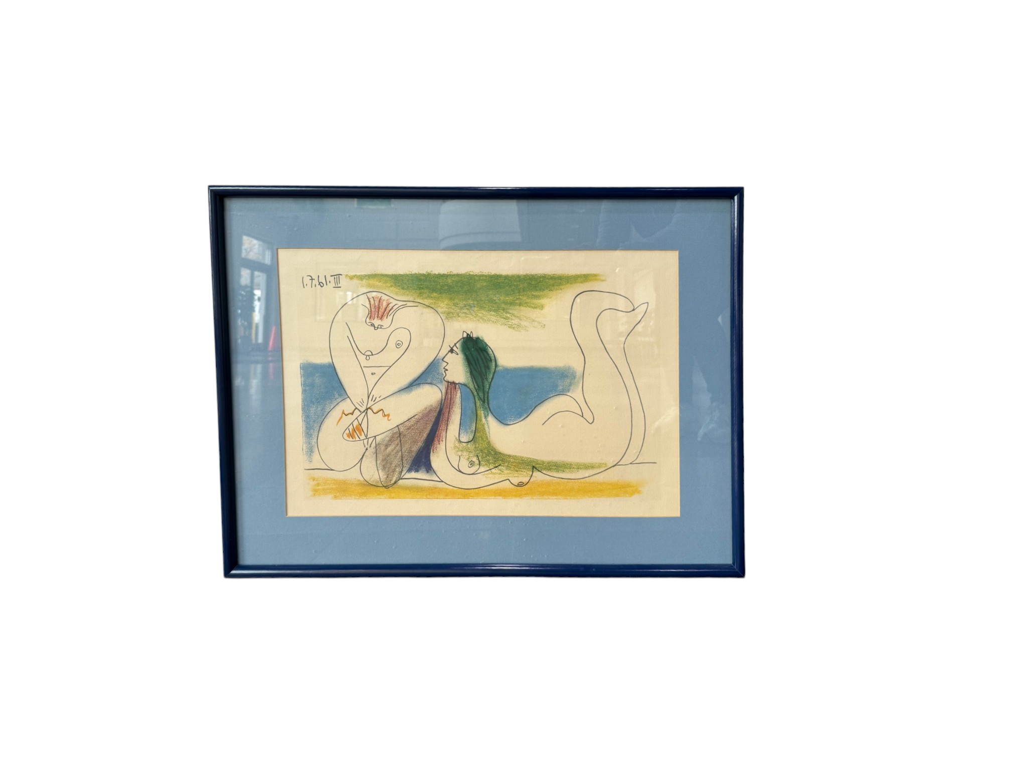 Framed (black) and matted (blue)