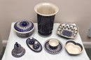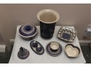Assorted Blue And White Patterned Pottery Tableware