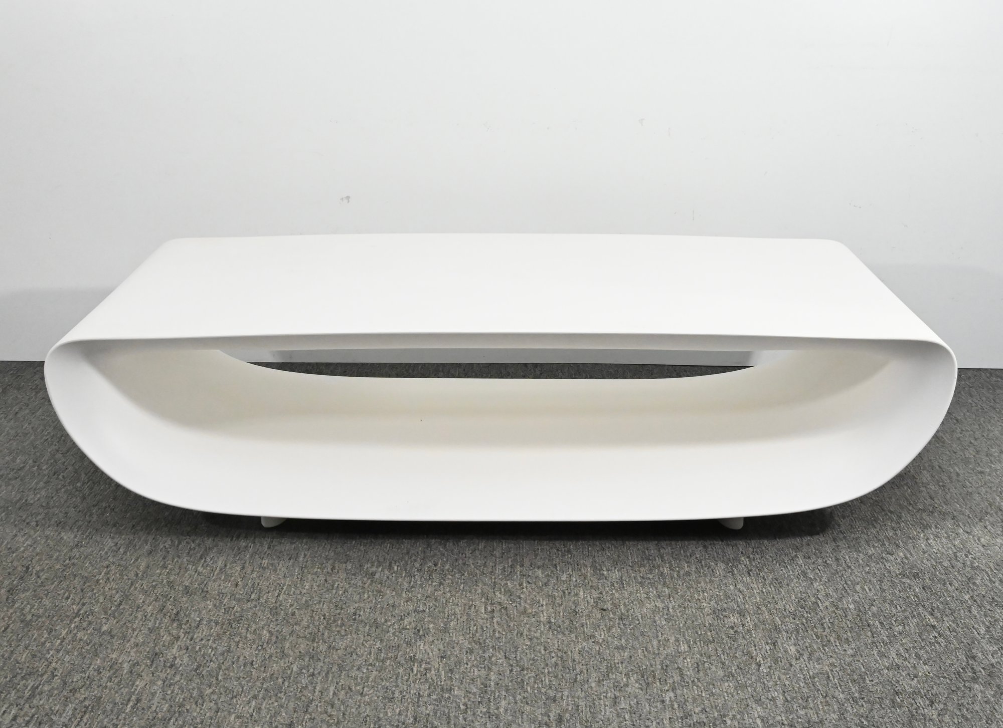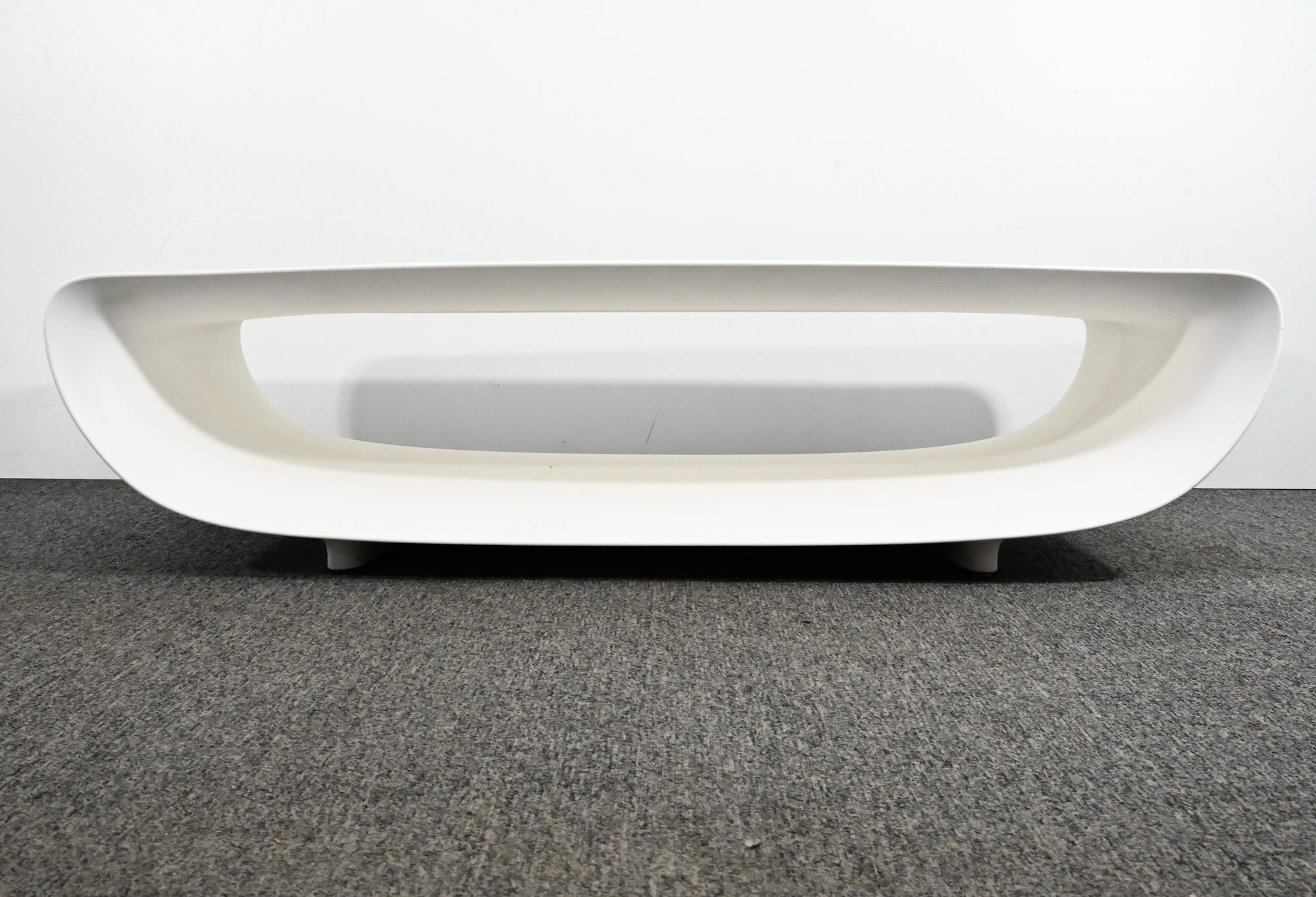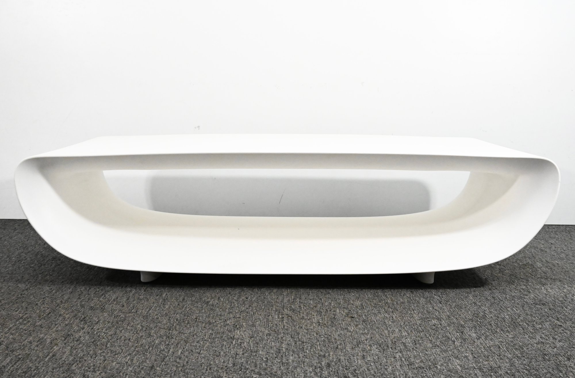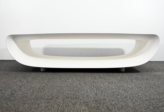 Authentic “Bum Bum” coffee table with a smooth, sculptural silhouette and continuous curved form. Finished in glossy white, the design features a rounded rectangular shape with an open center. A bold, modern piece with a clean, minimalist presence.