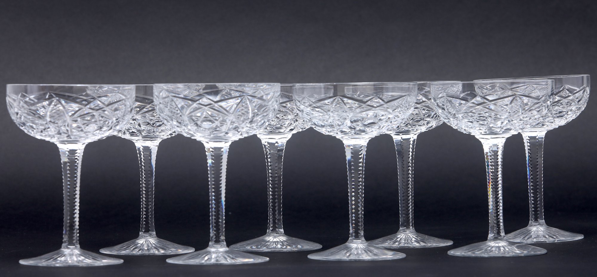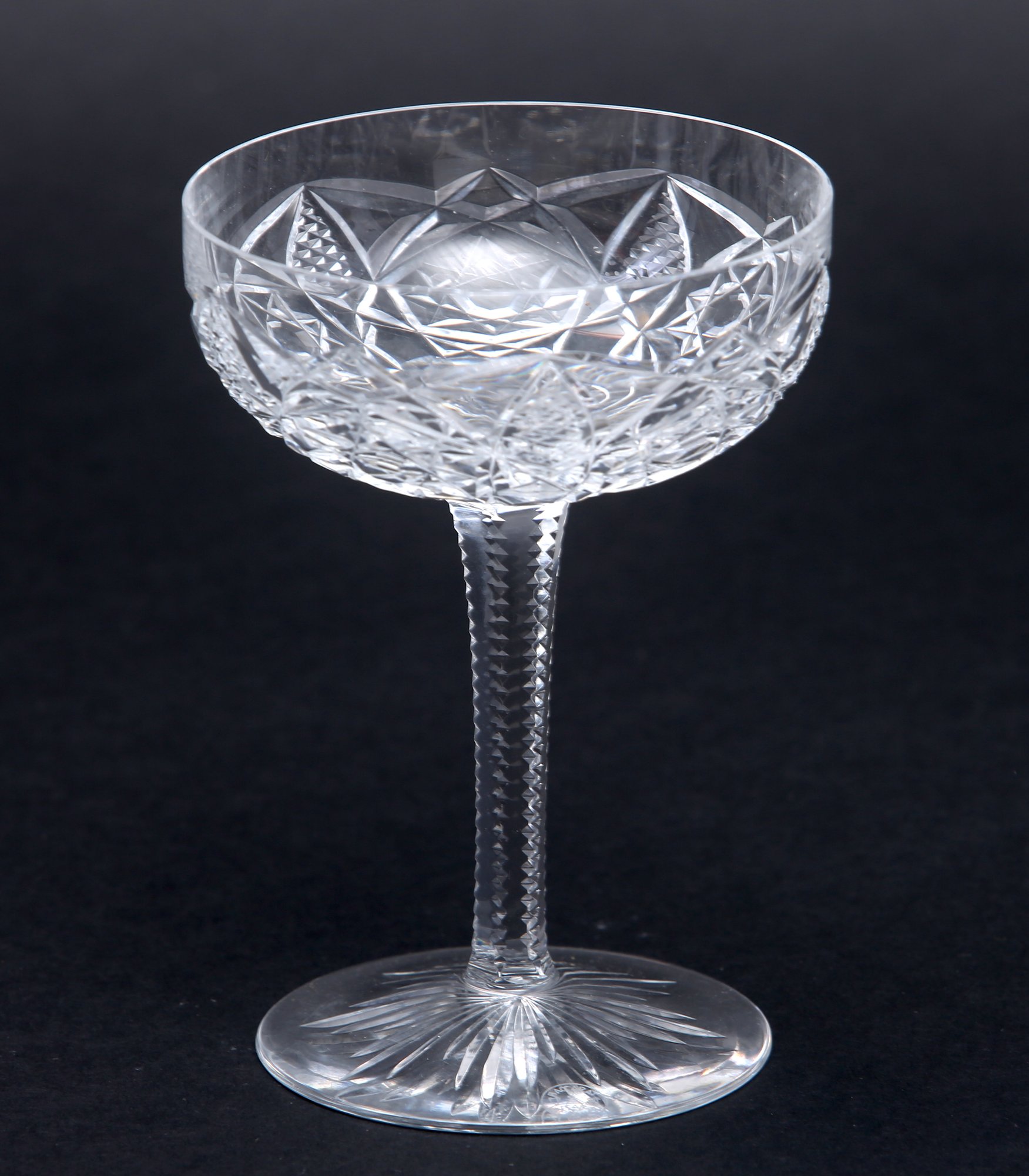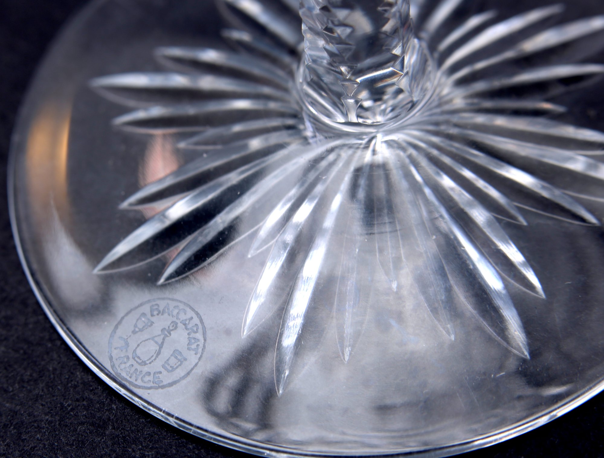 In the Lagny Clear pattern by Baccarat. Cut glass star design with a ridged stem. Marked Baccarat on the base.