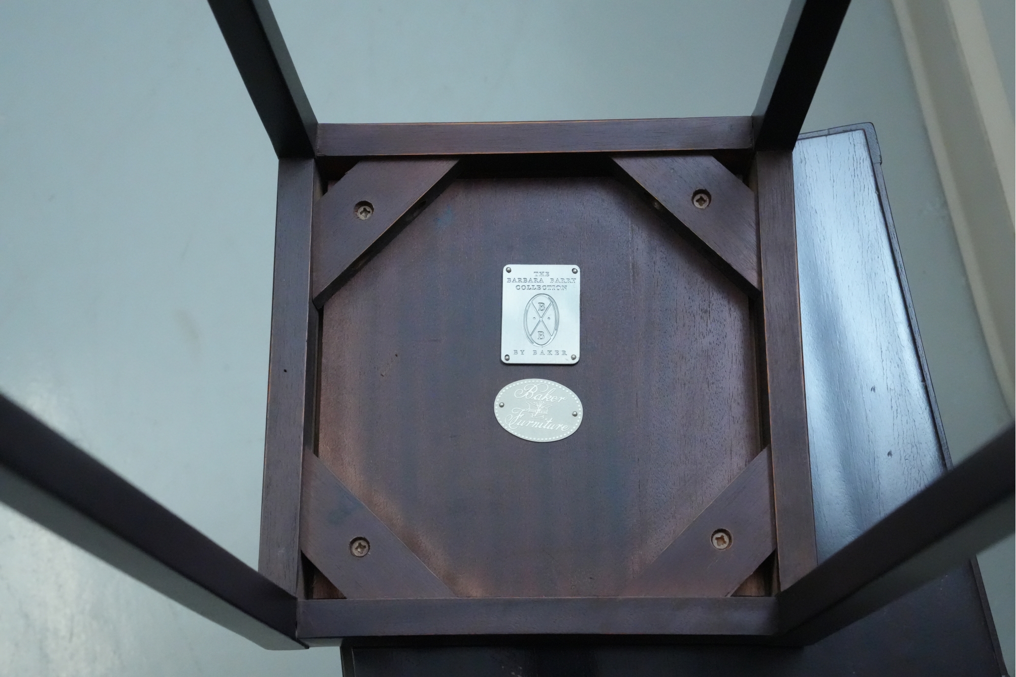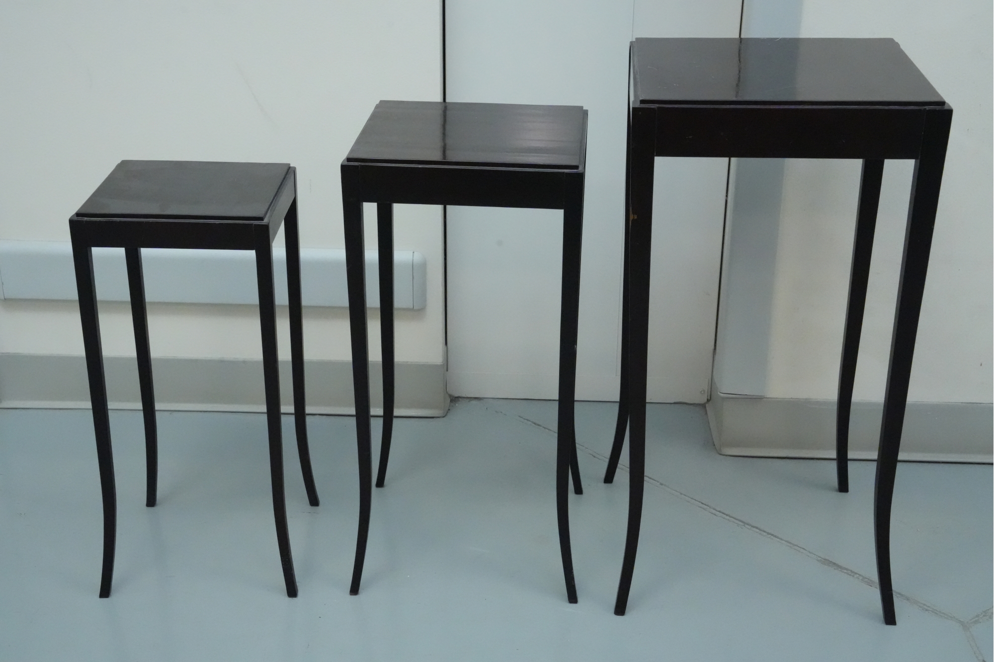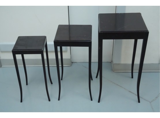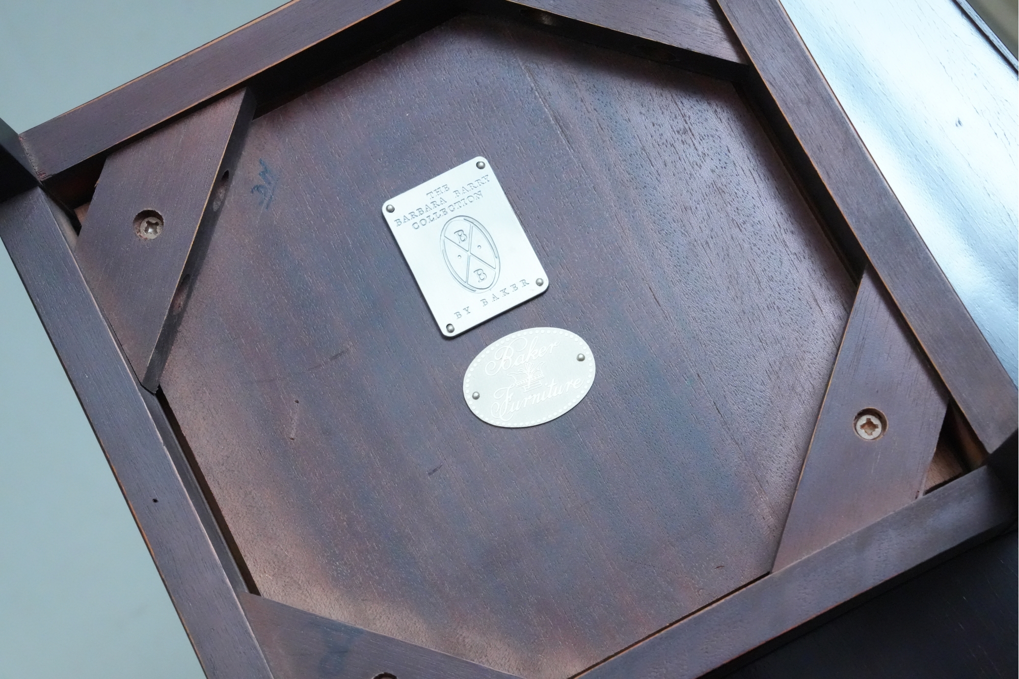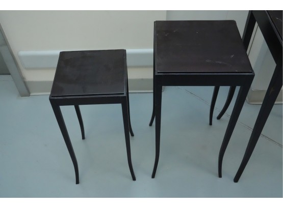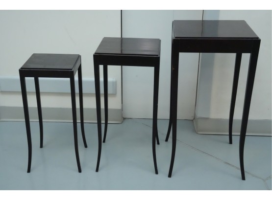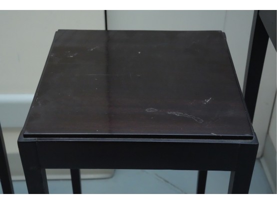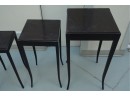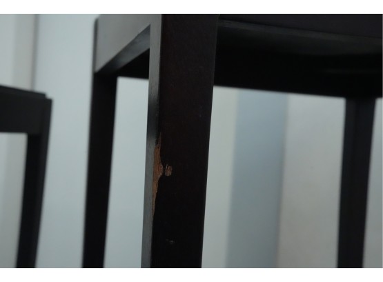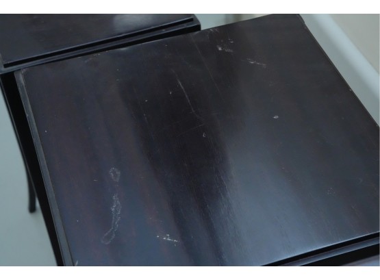 Baker Furniture Company (U.S.A.) "The Barbara Barry Collection" mahogany nesting tables in a dark finish. Some signs of wear due to age and use.