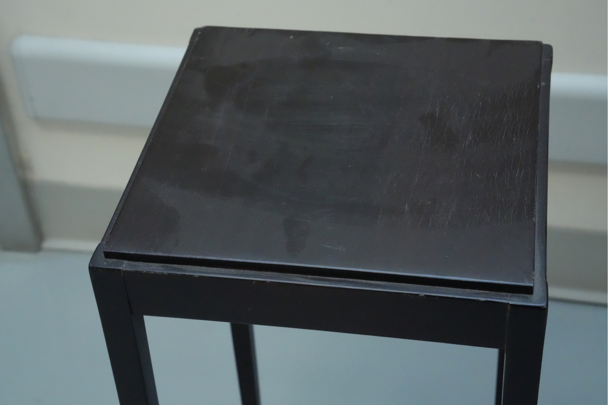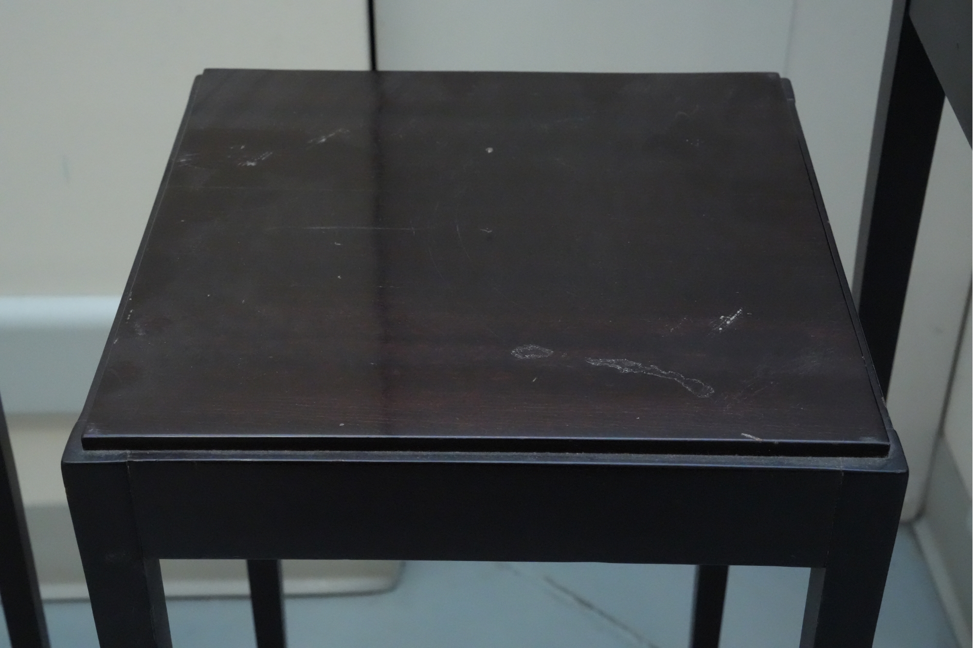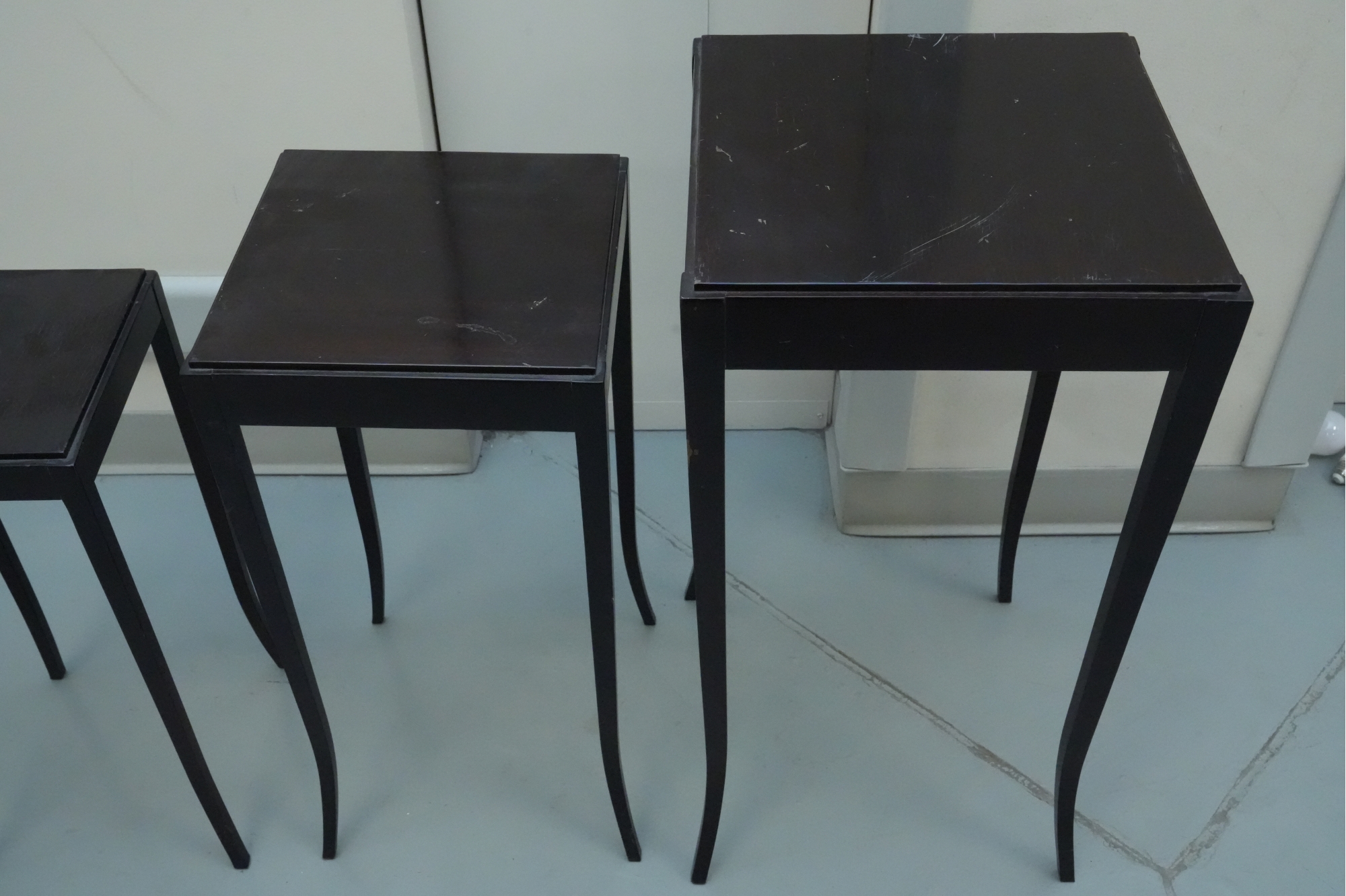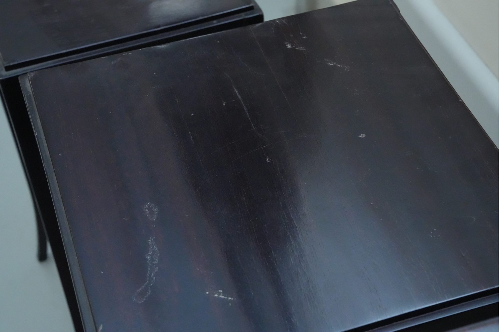 Baker Furniture Company (U.S.A.) "The Barbara Barry Collection" mahogany nesting tables in a dark finish. Some signs of wear due to age and use.