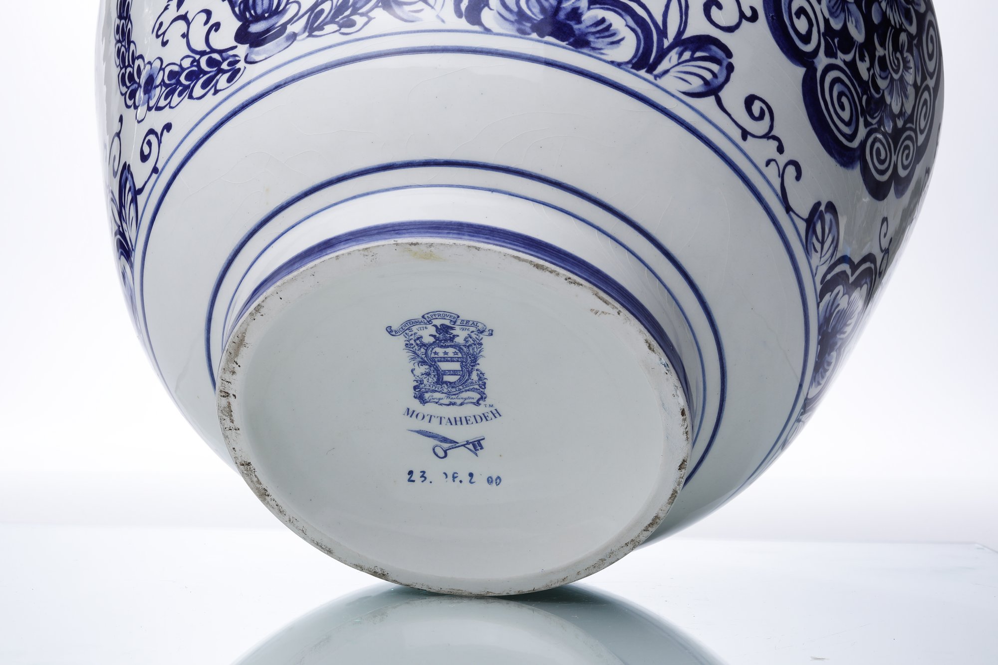 Blue And White Mottahedeh Bowl measuring 12 inches round and 7 inches tall