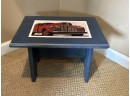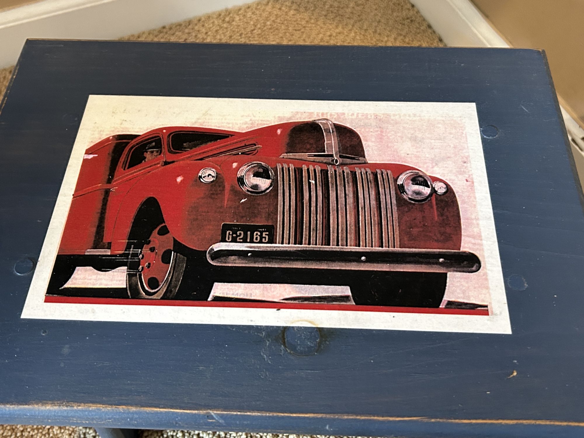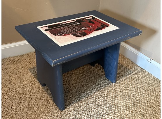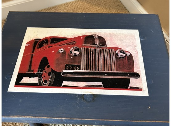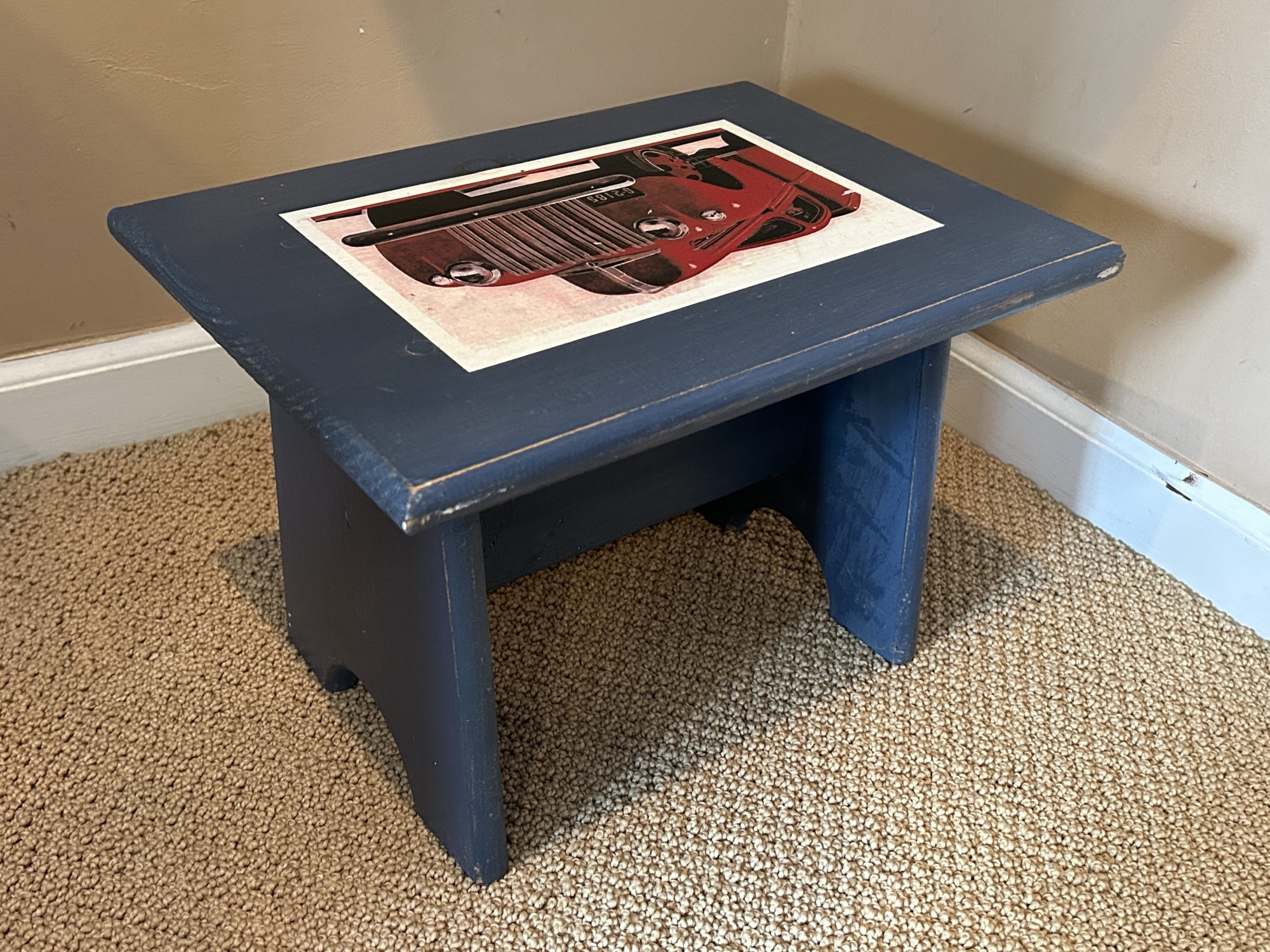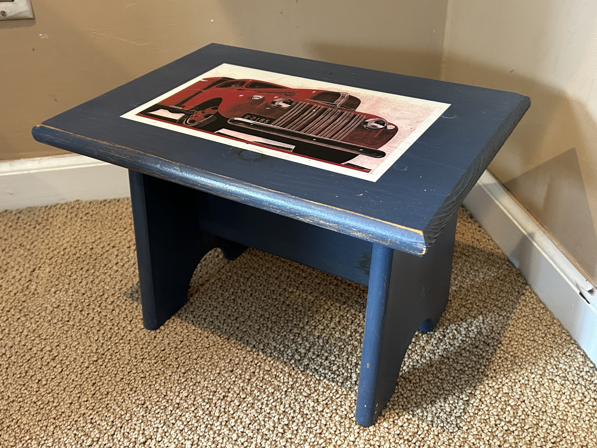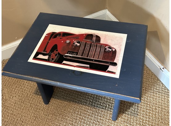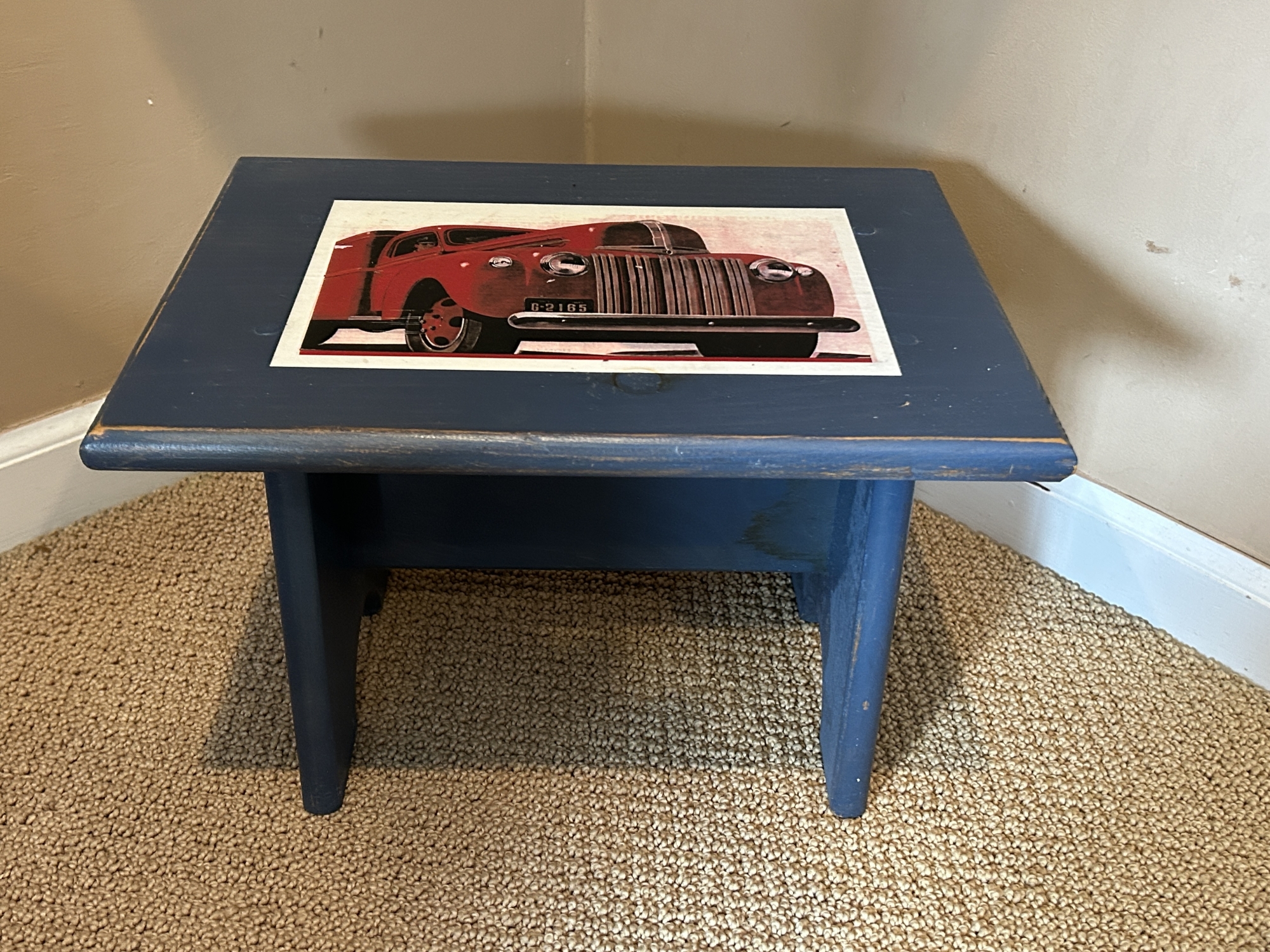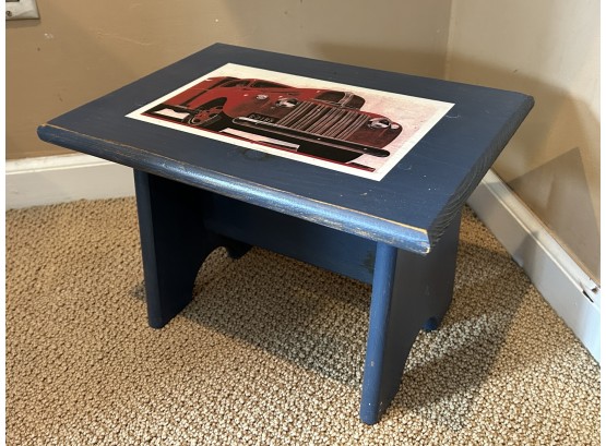 Blue Painted Wooden Childs Step Stool With Car Motif