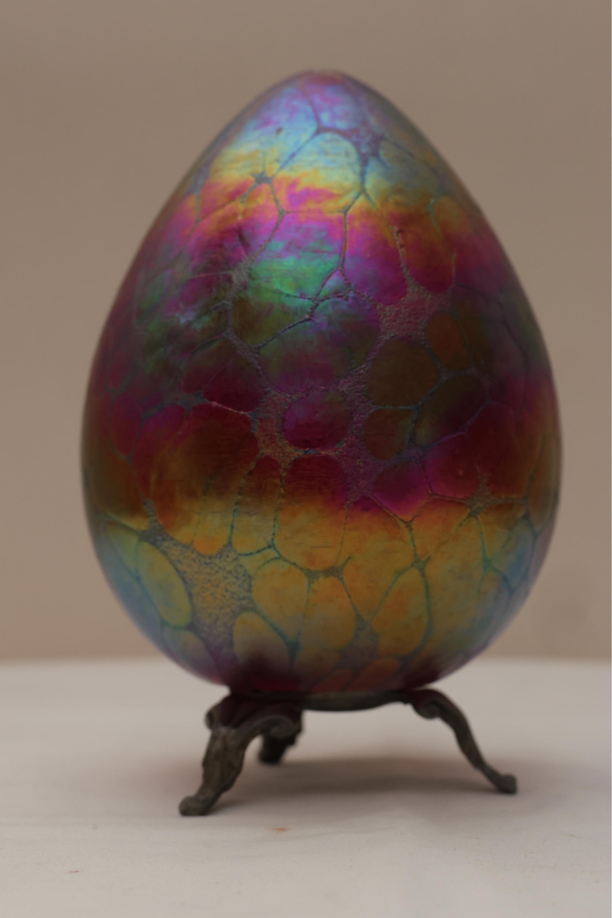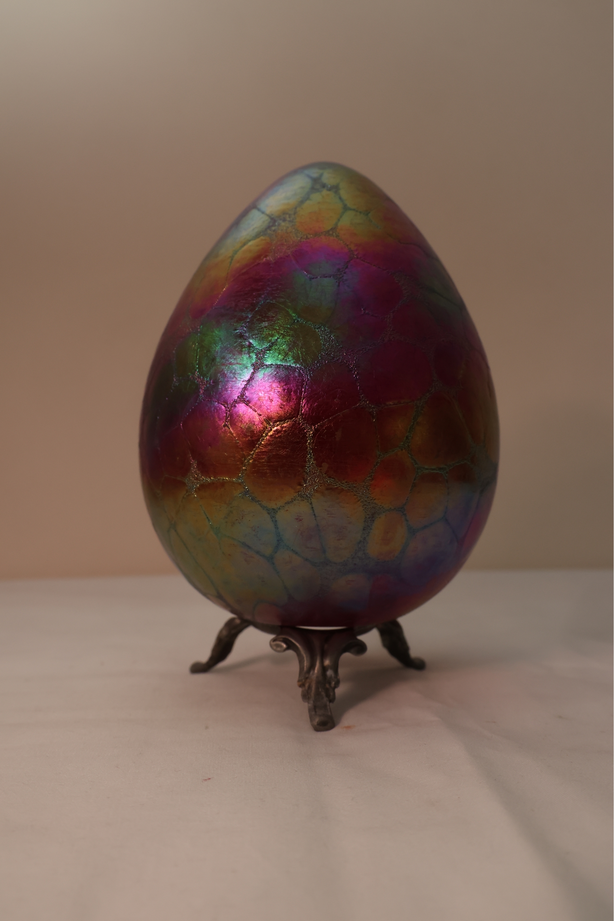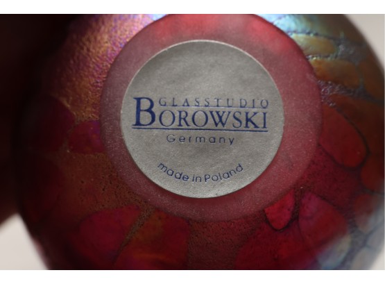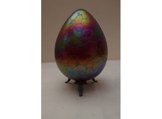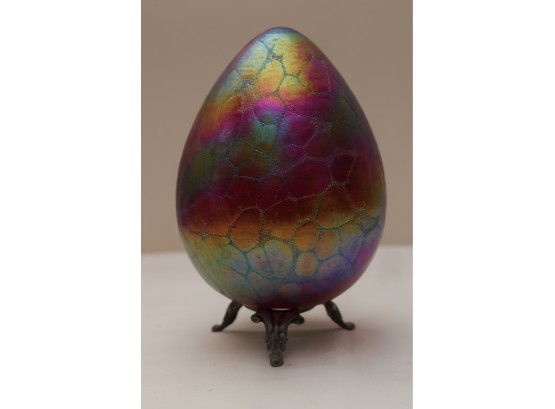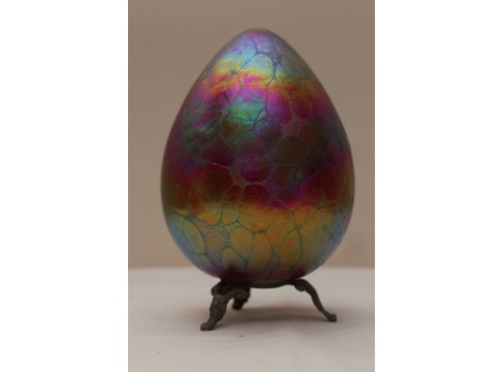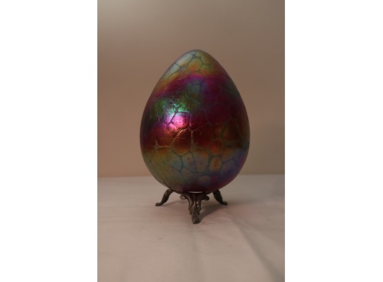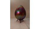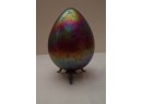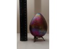 Borowski Iridescent Art Glass Egg On Stand