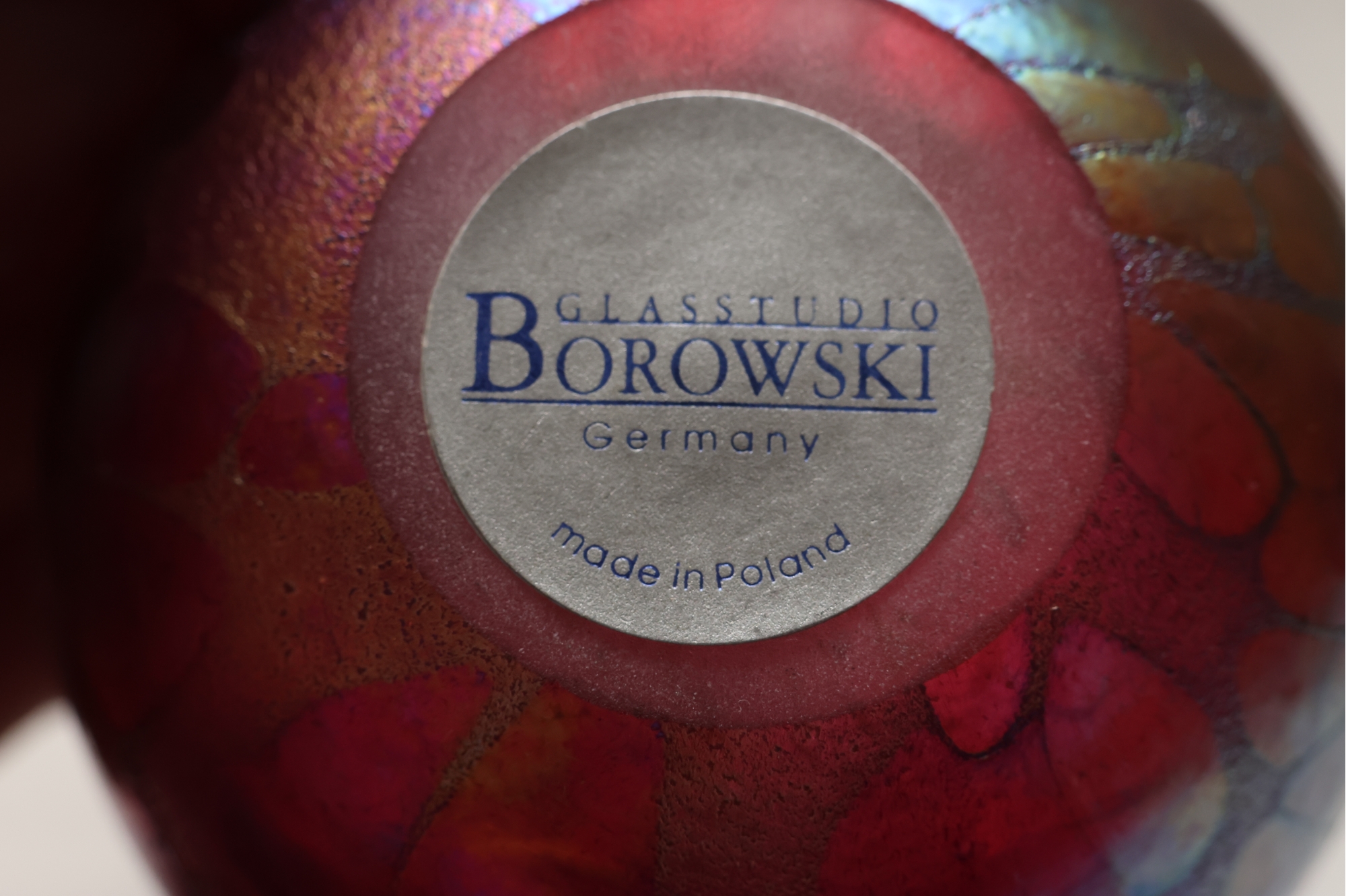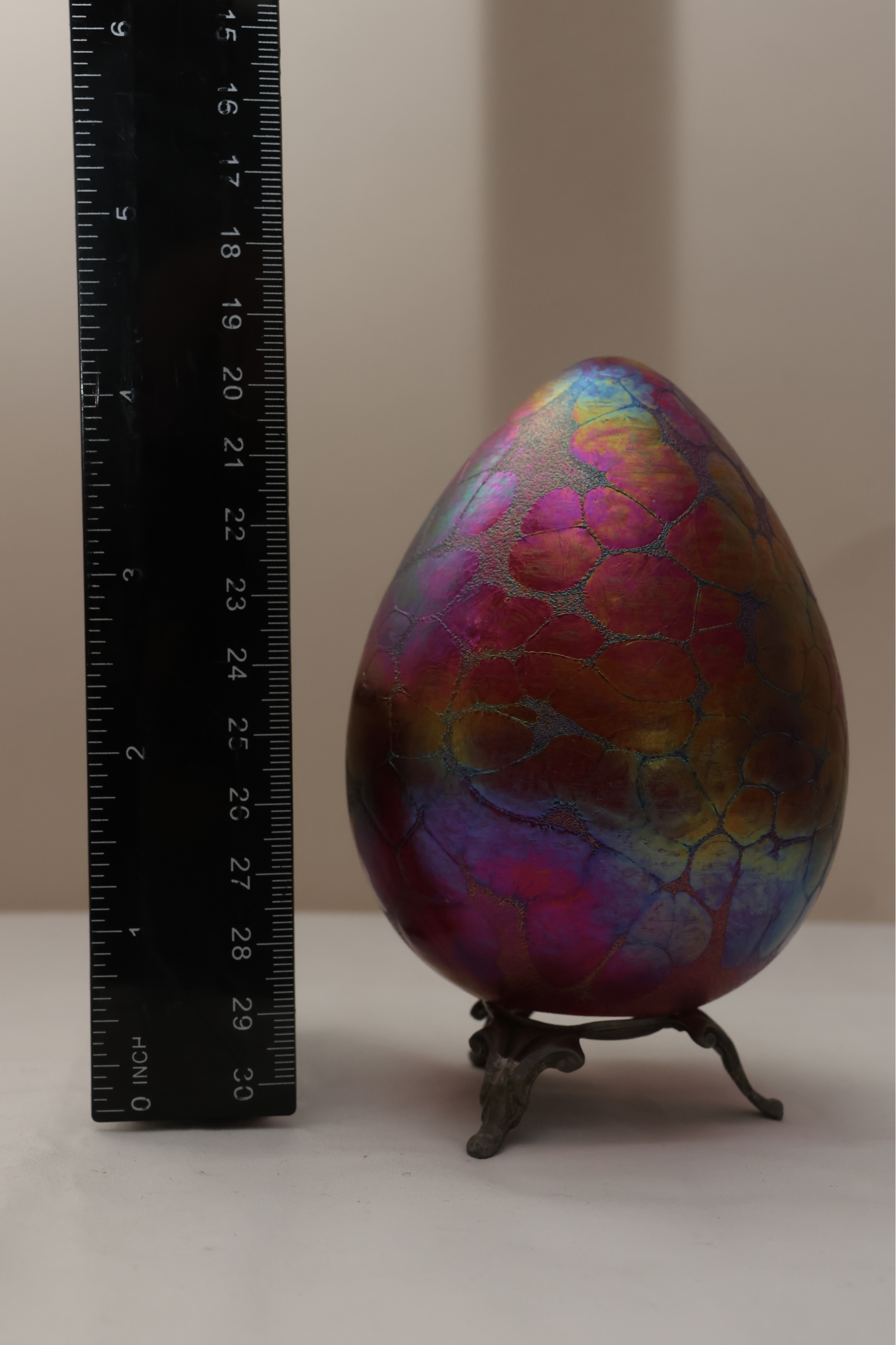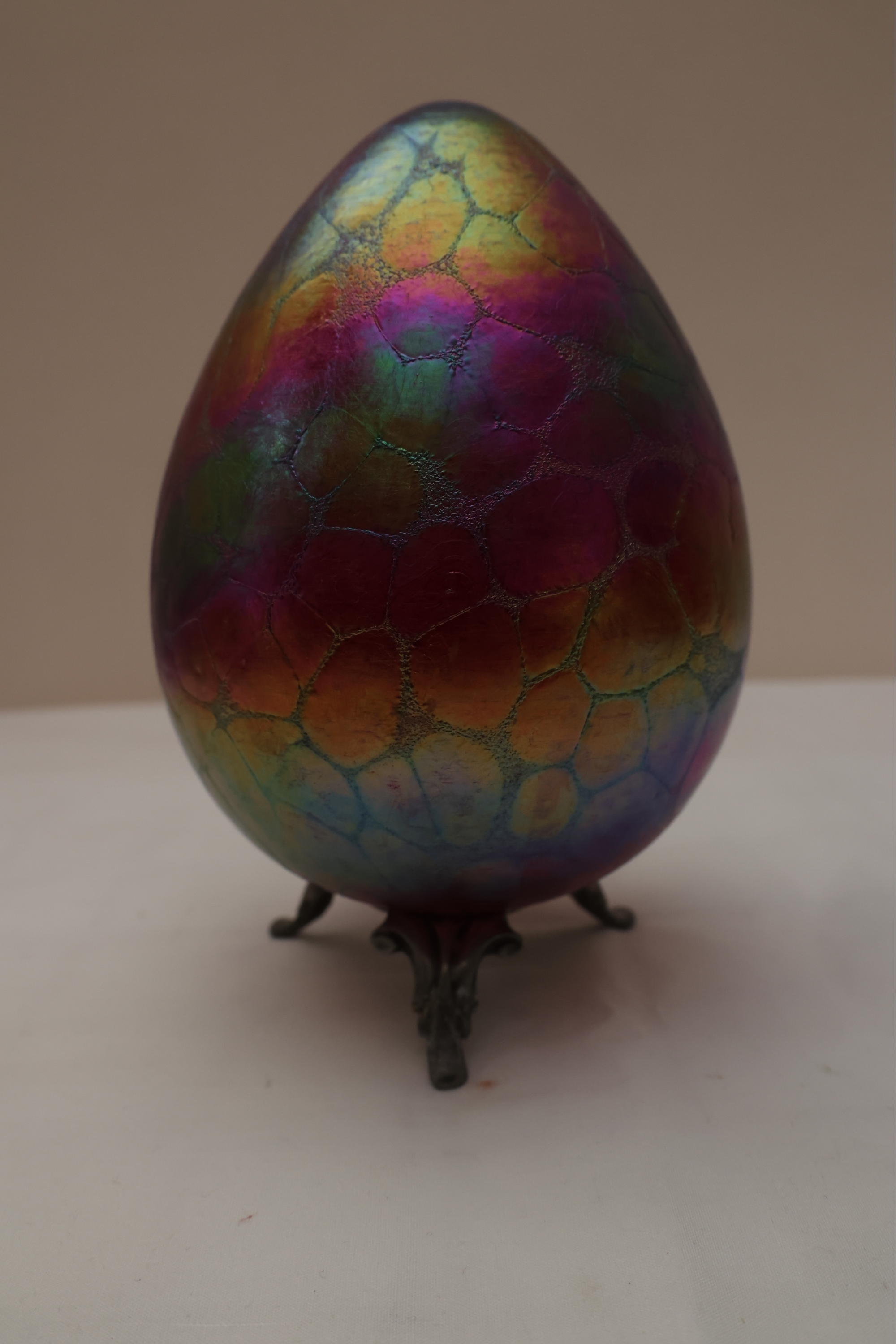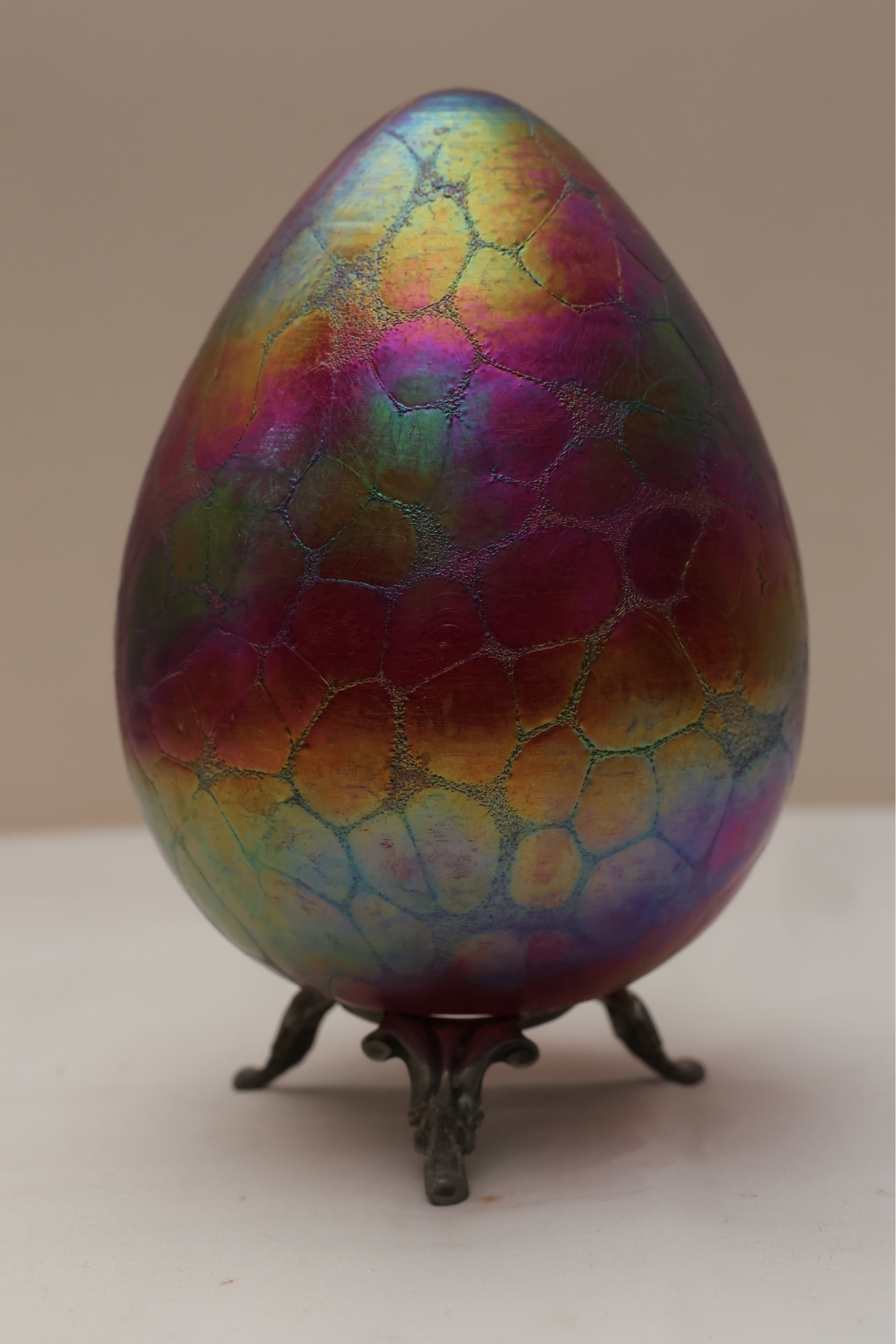 Borowski Iridescent Art Glass Egg On Stand
