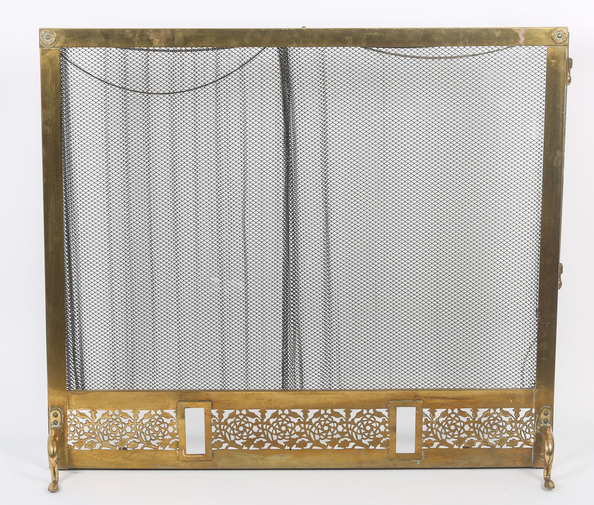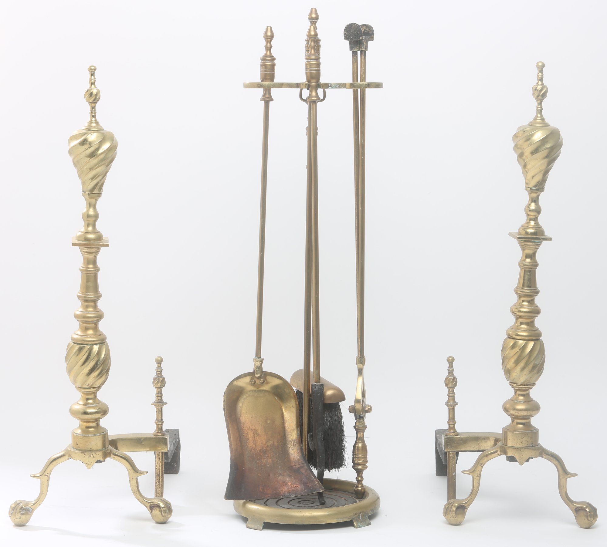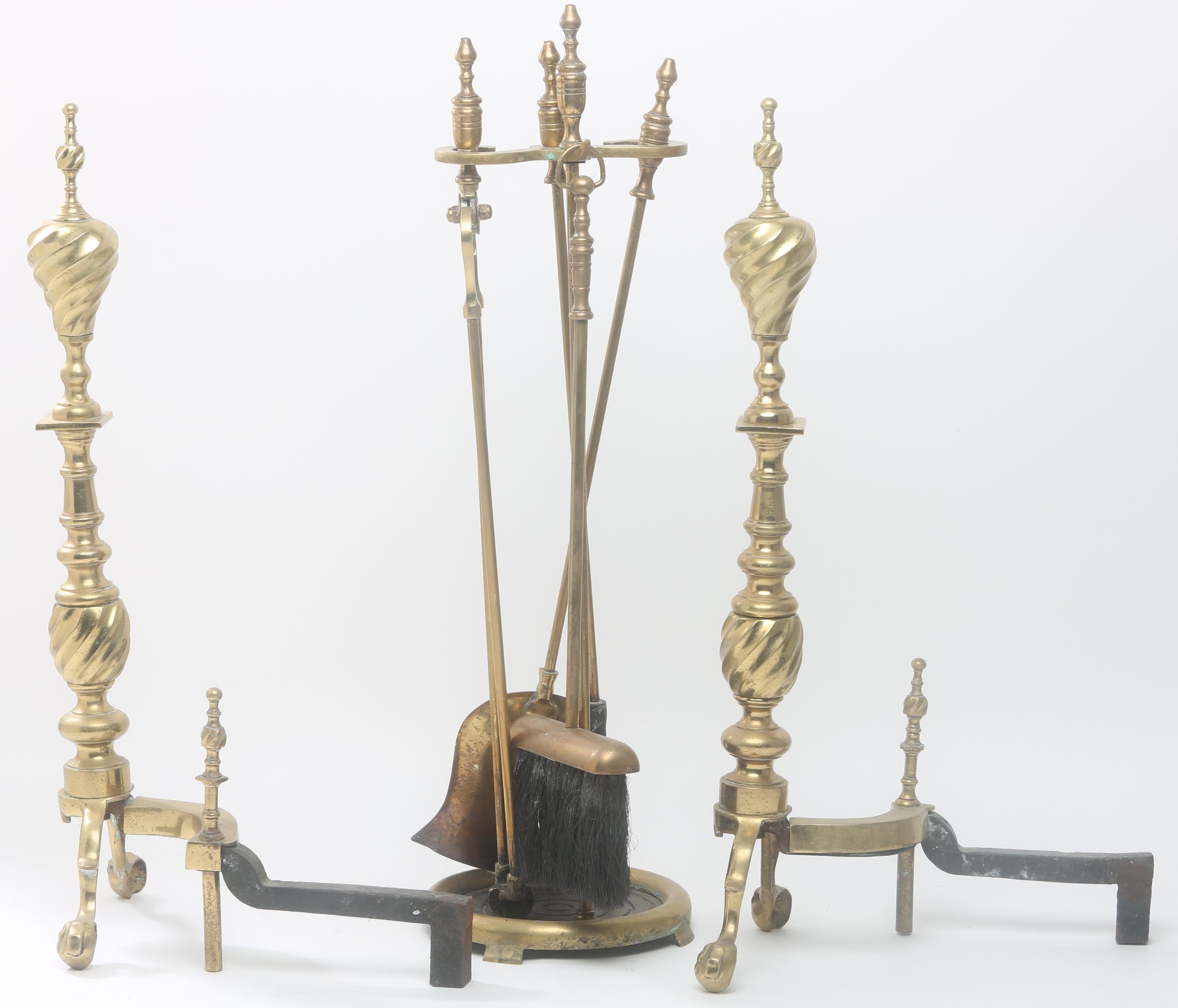 includes Screen (33 x 33 inches), andirons and tools with holder