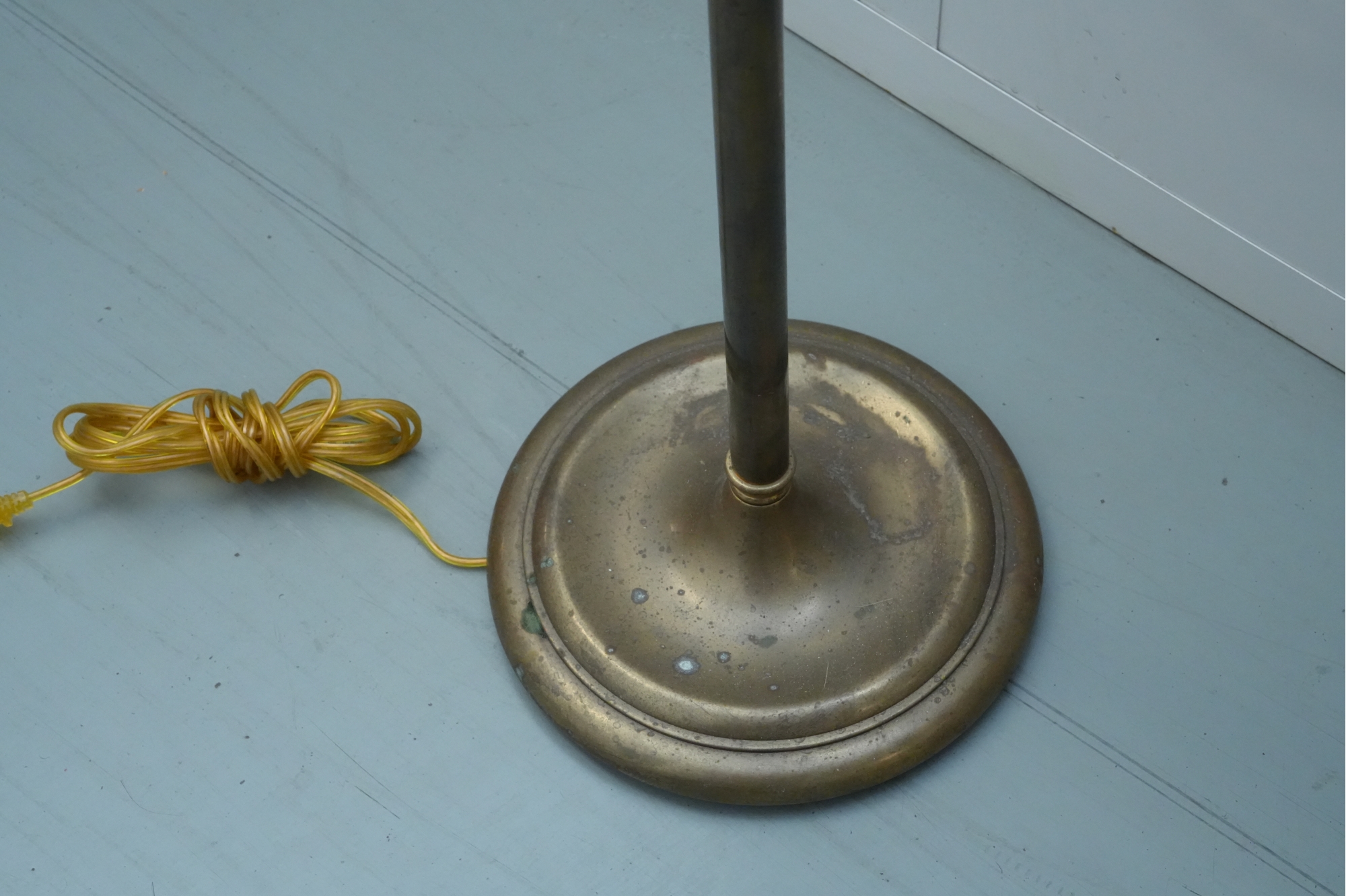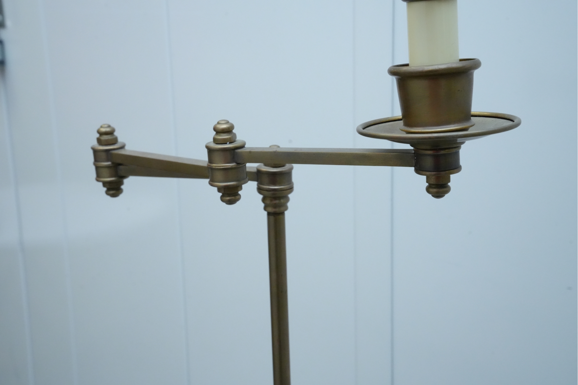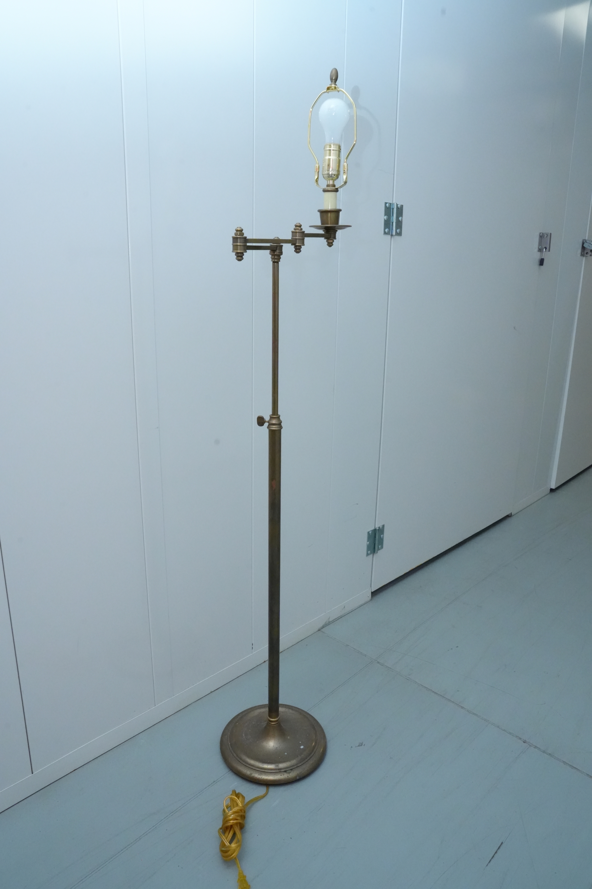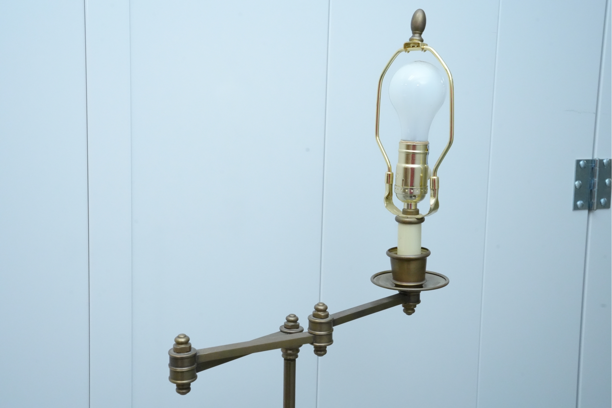 Vintage brass floor lamp with adjustable arm. No lampshade included.