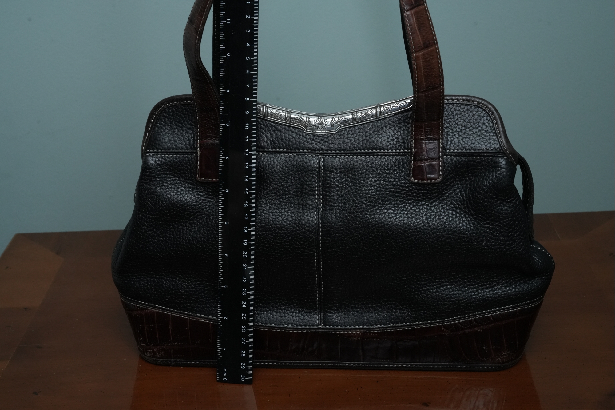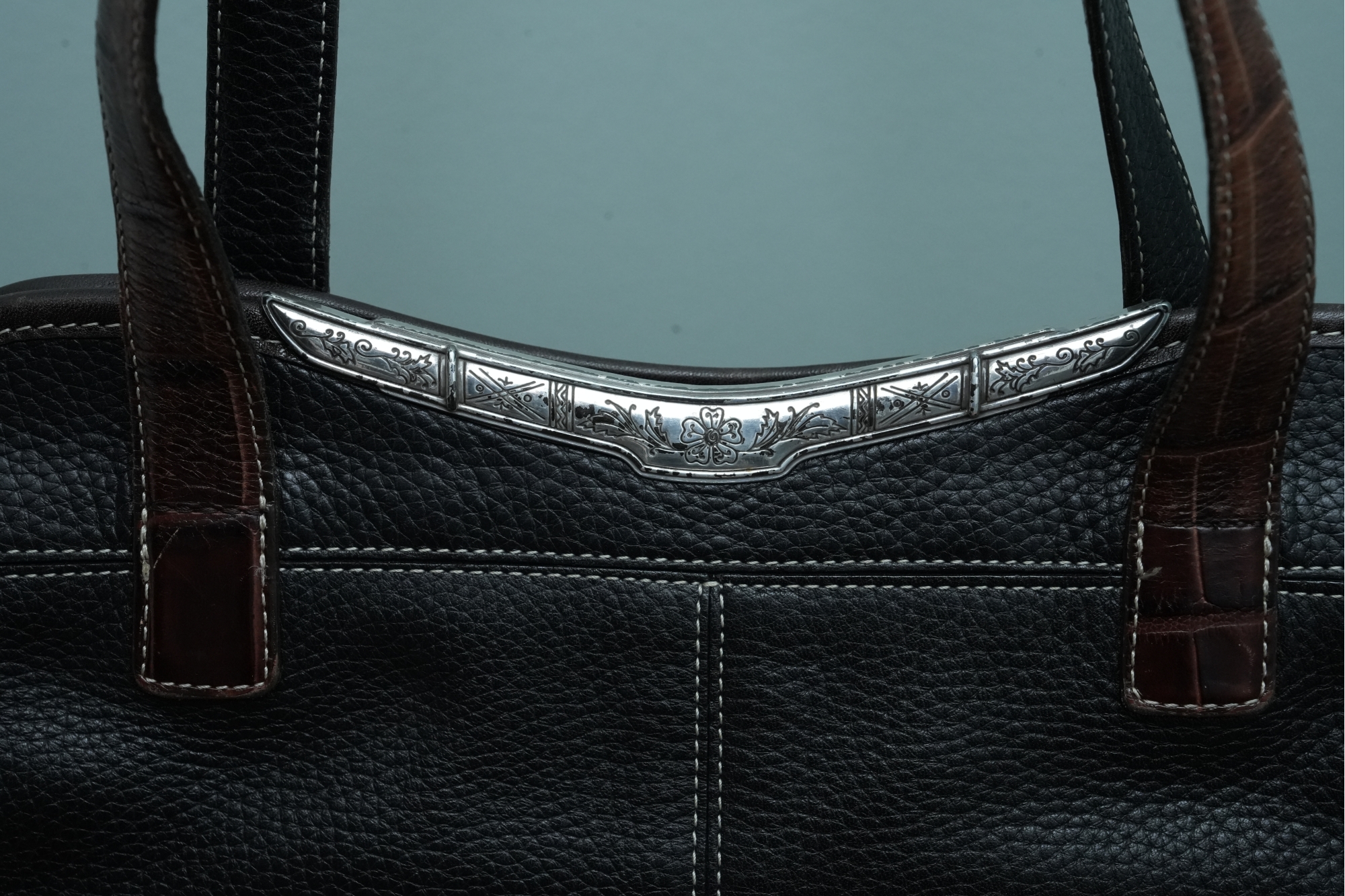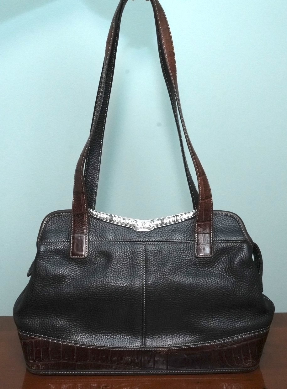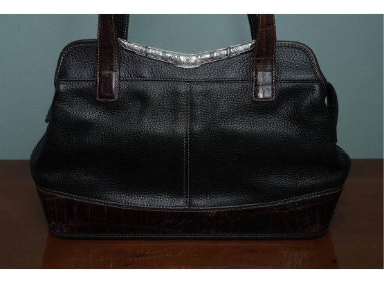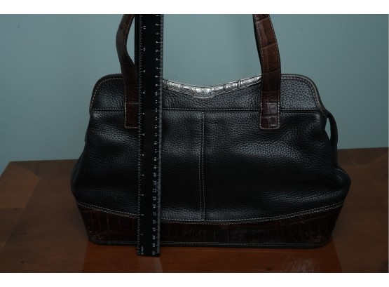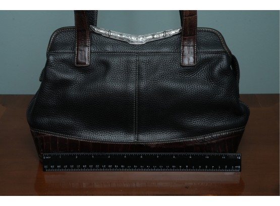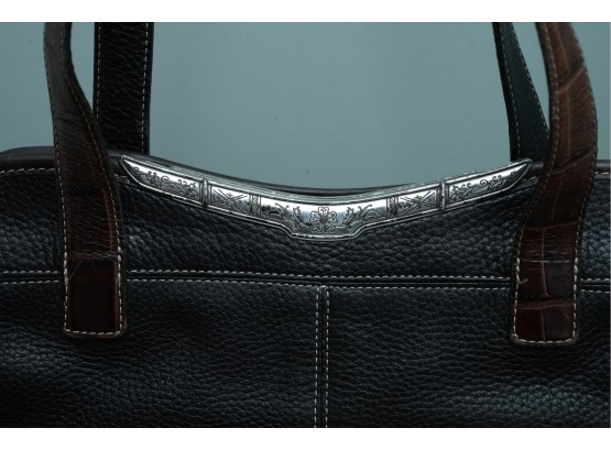 Brighton Black And Brown Leather Handbag With Metal Accent