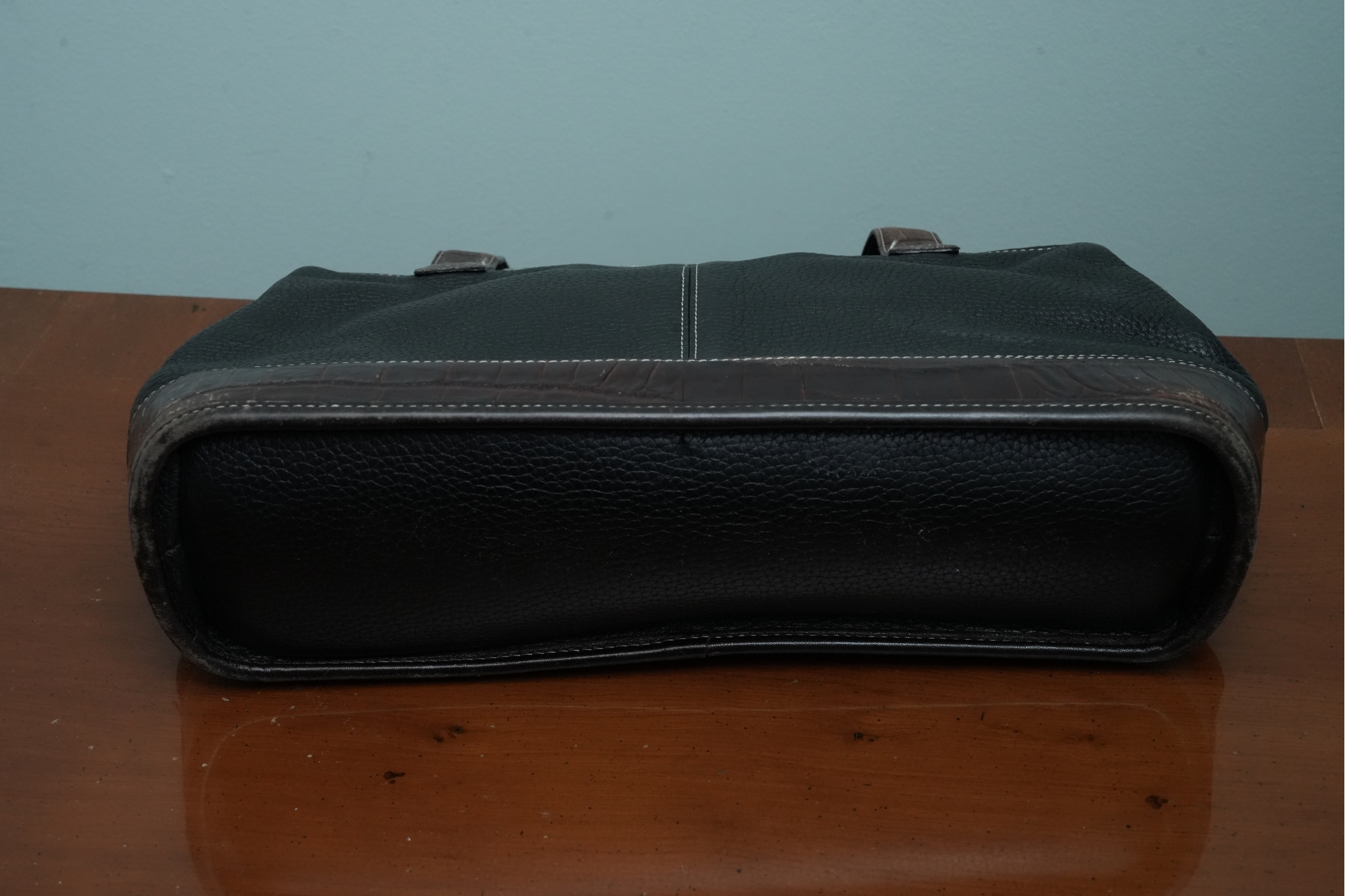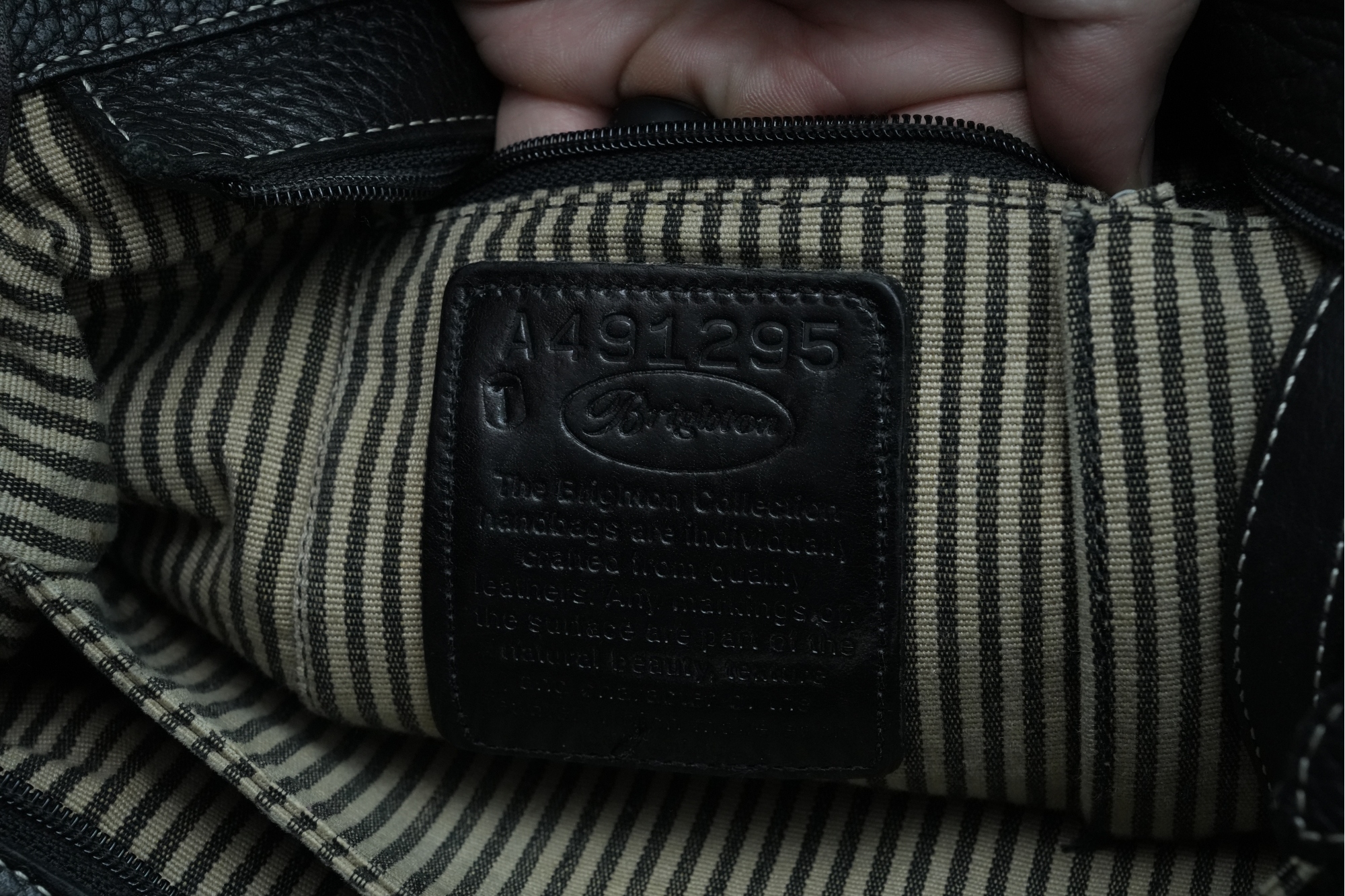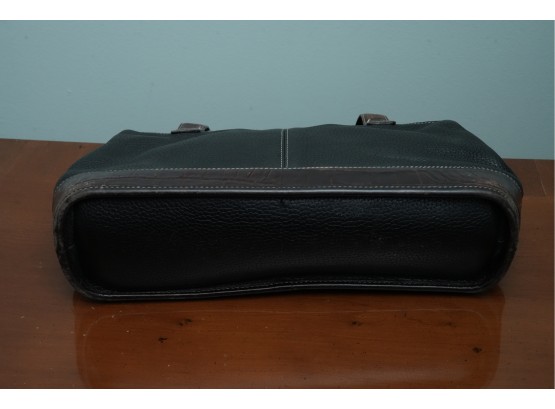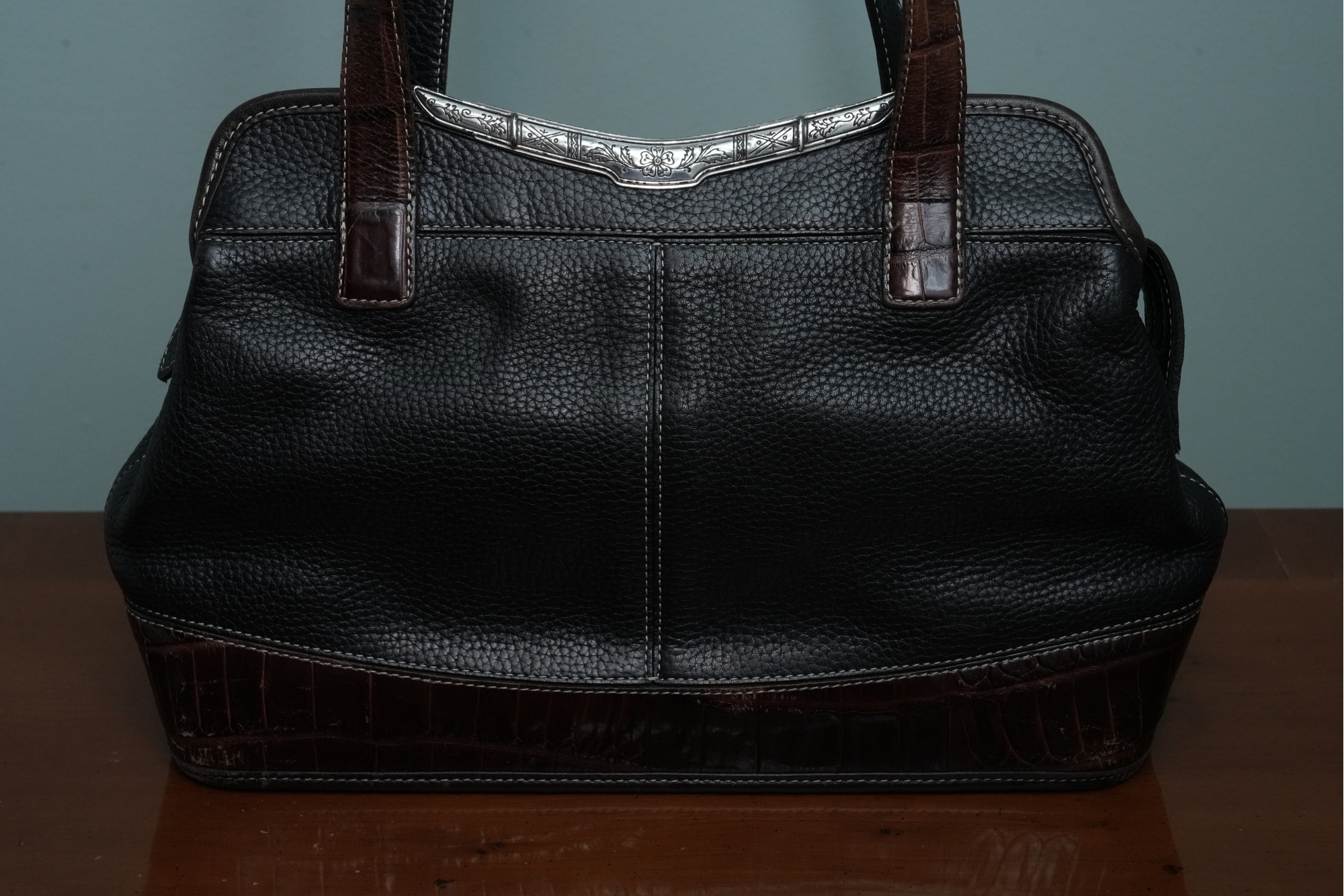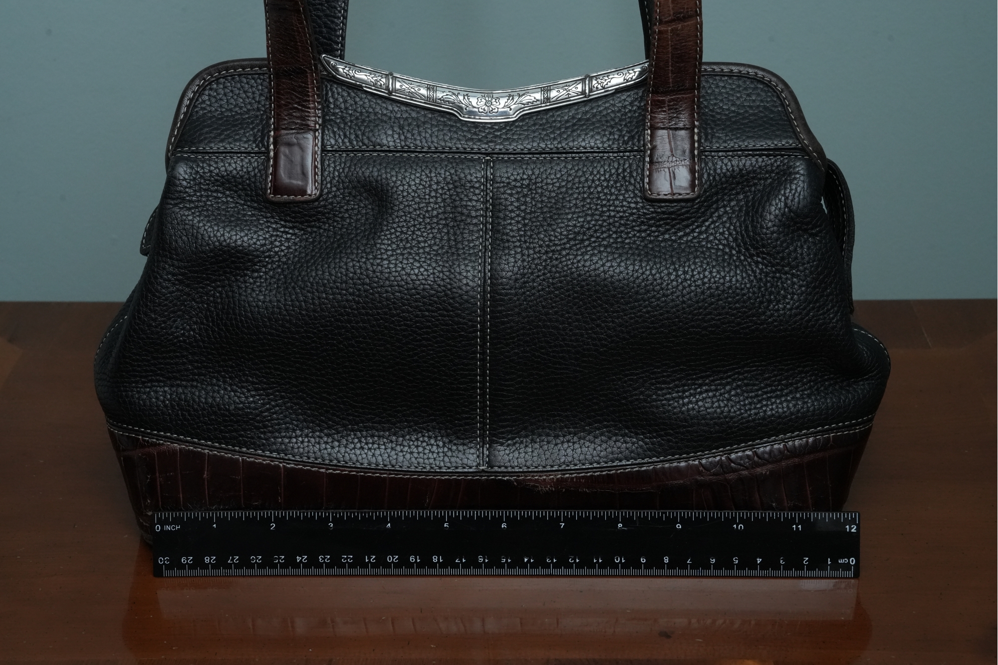 Brighton Black And Brown Leather Handbag With Metal Accent