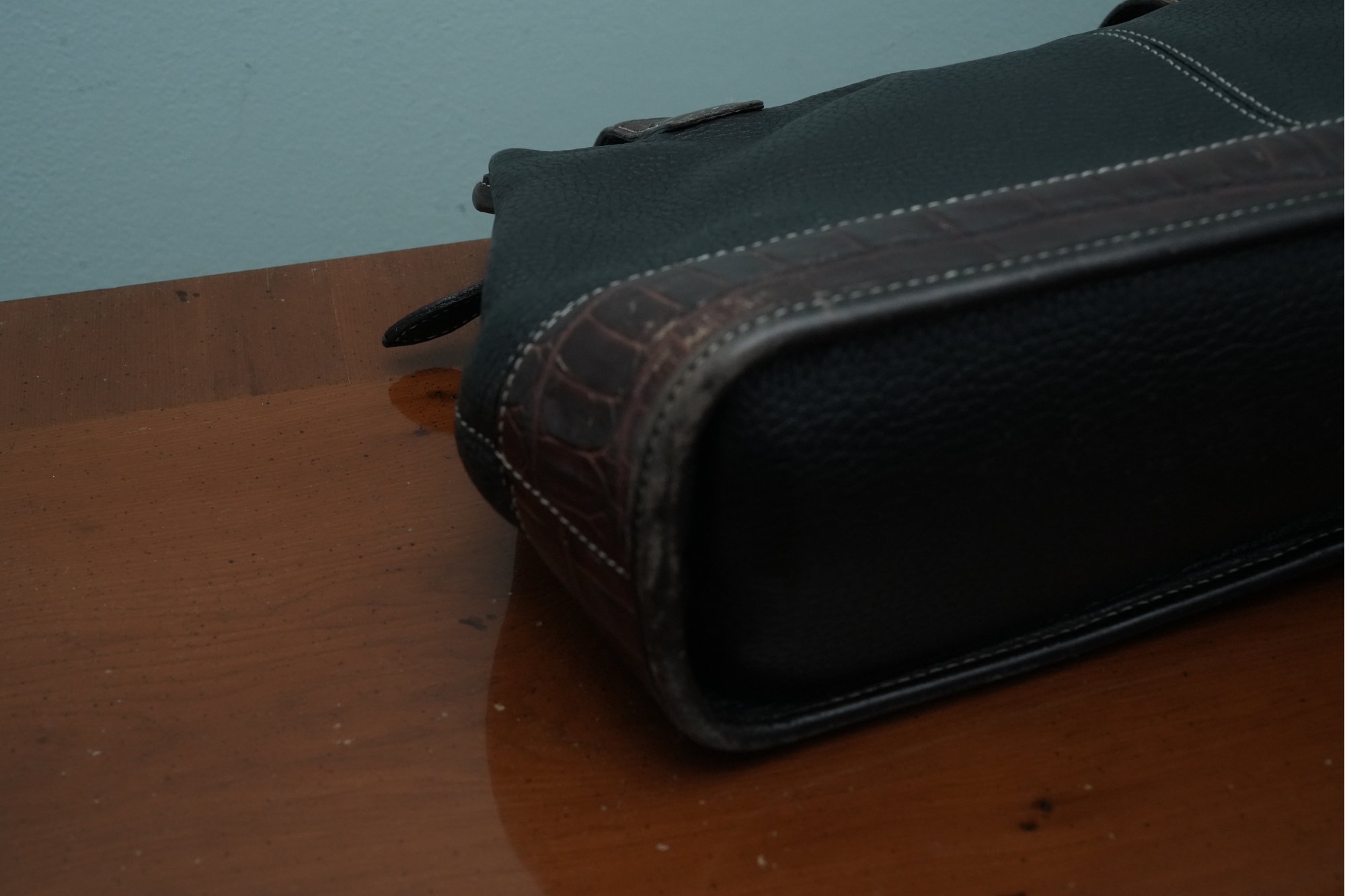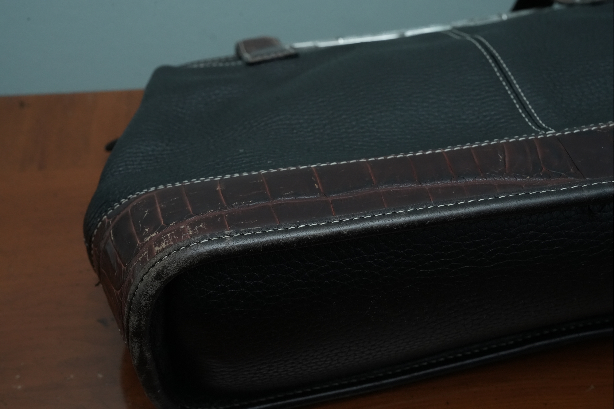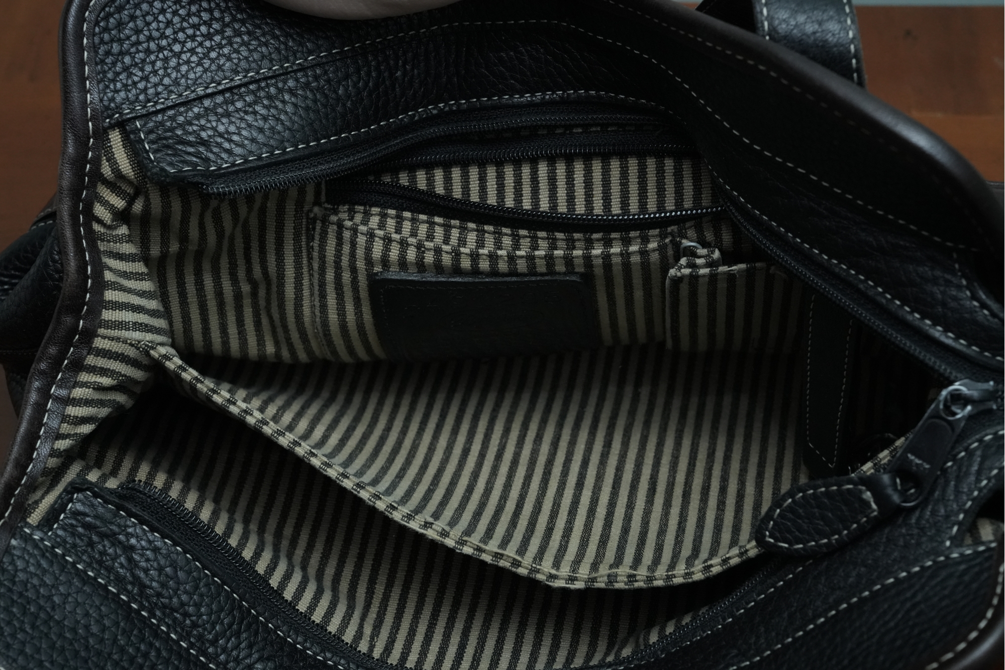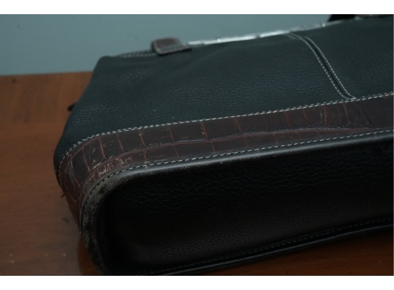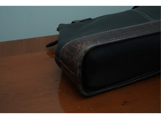 Brighton Black And Brown Leather Handbag With Metal Accent