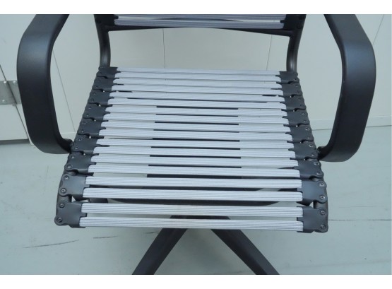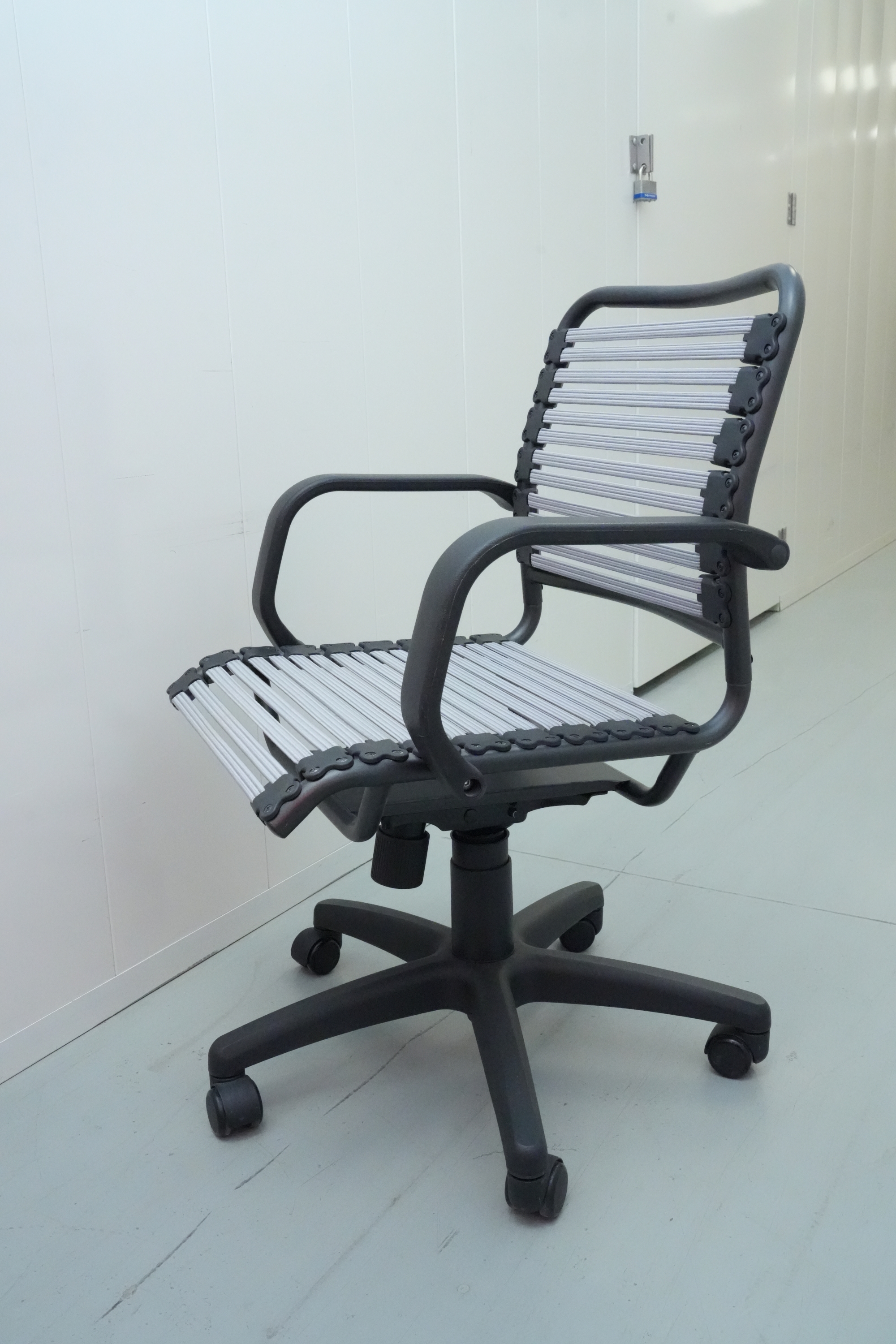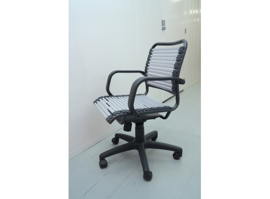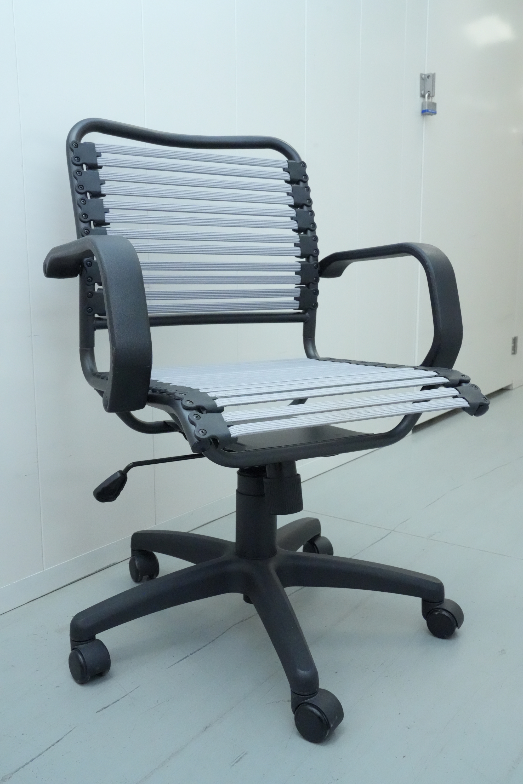 Bungee seat office chair with arms, featuring a graphite black frame and gray bungee cords.