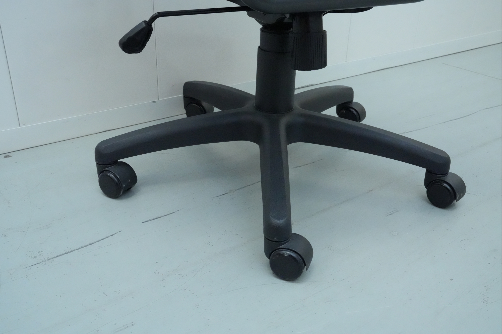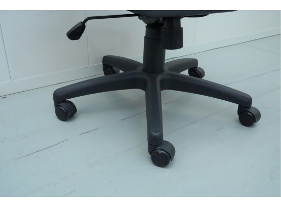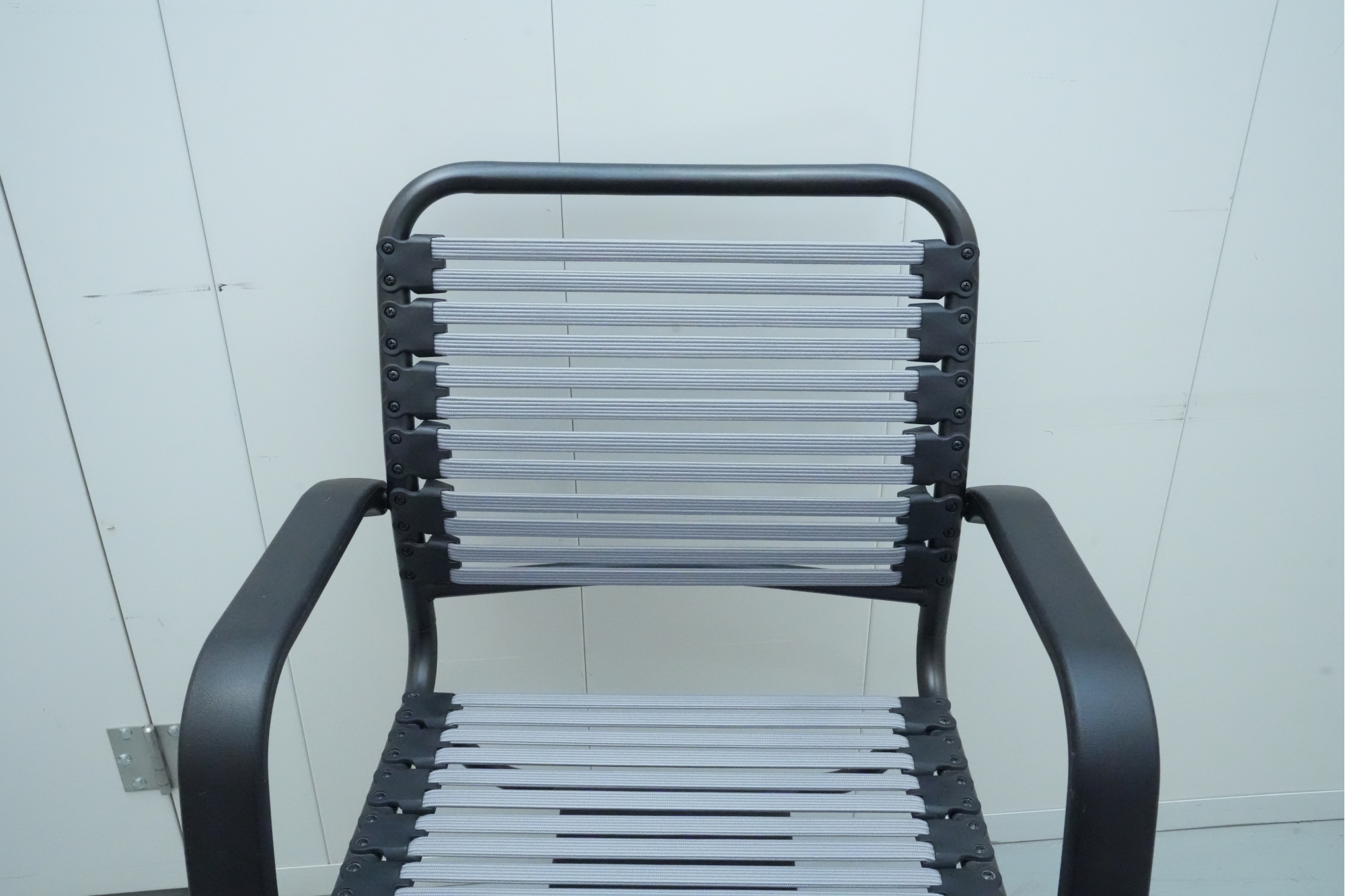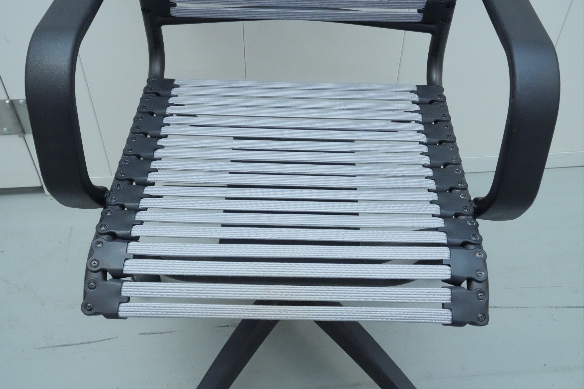 Bungee seat office chair with arms, featuring a graphite black frame and gray bungee cords.