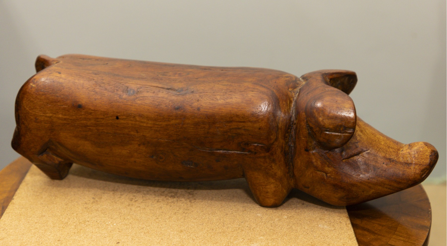 Carved Folk Art Wooden Pig