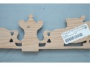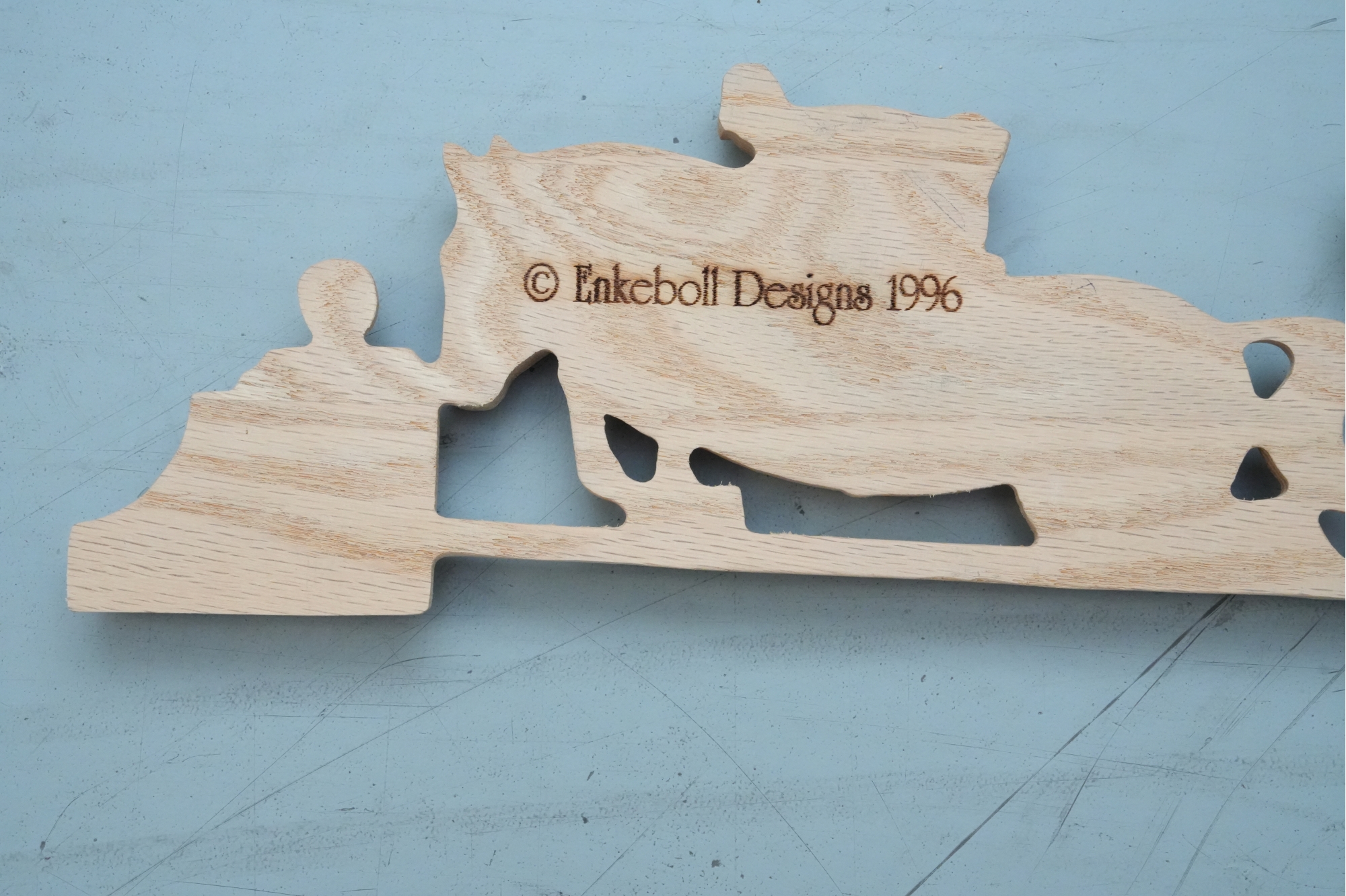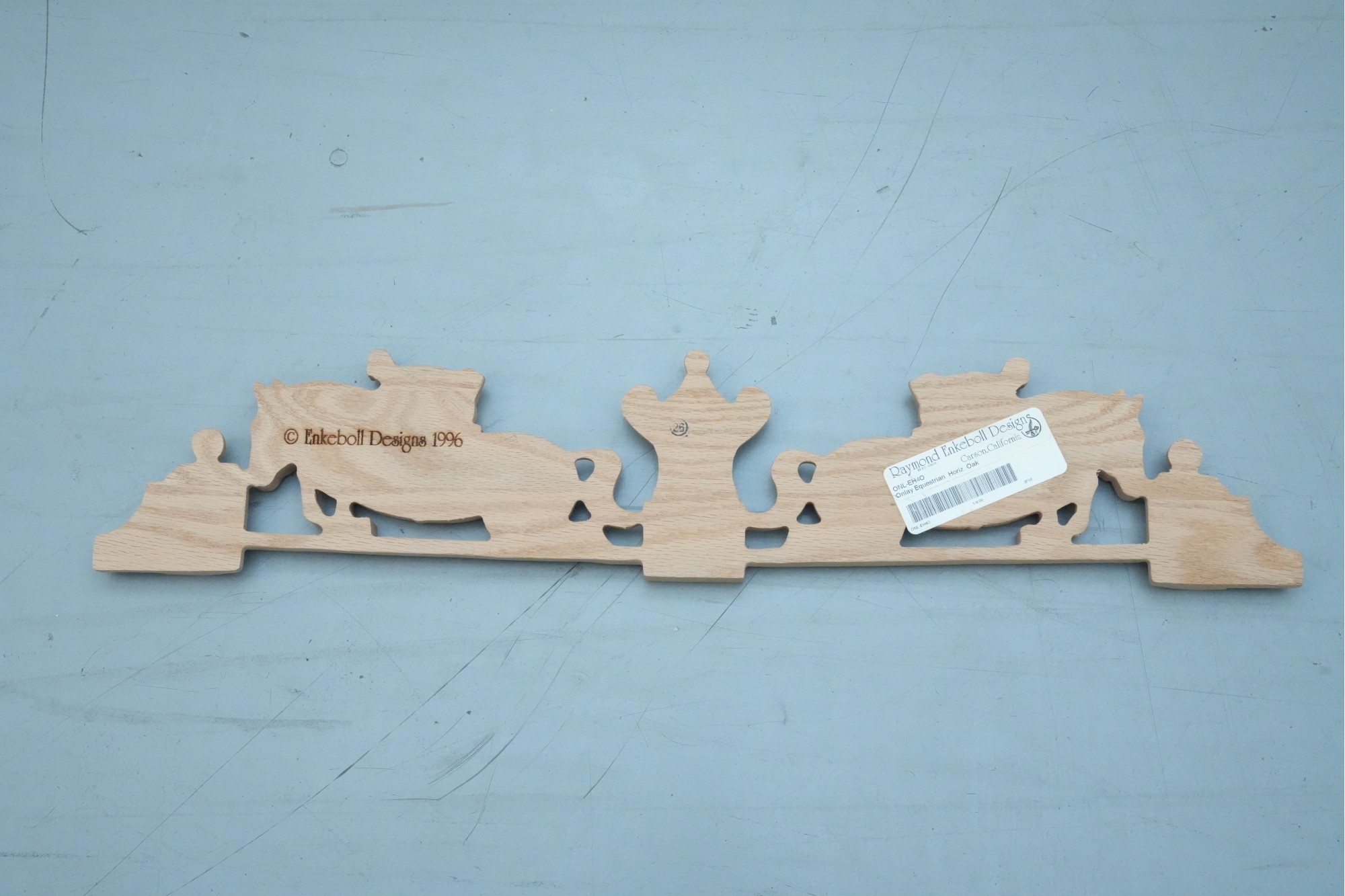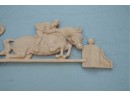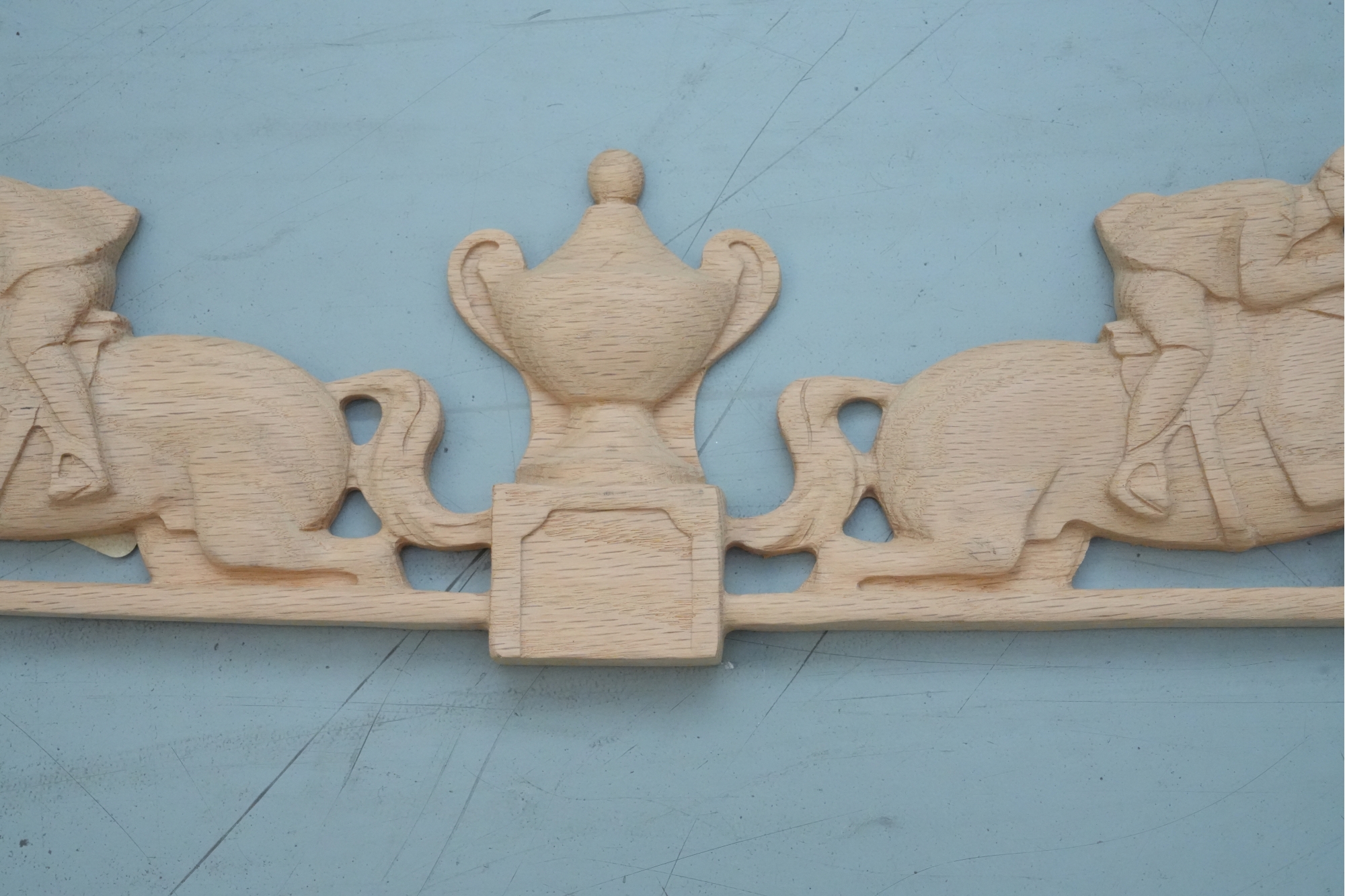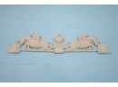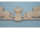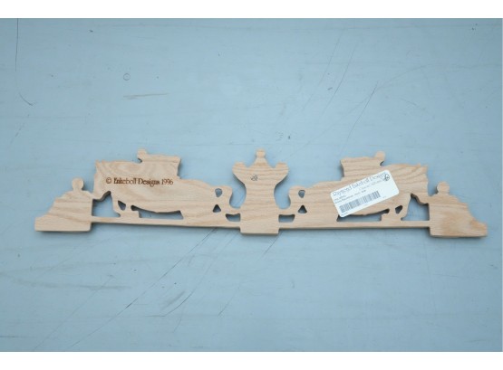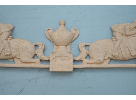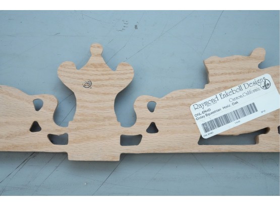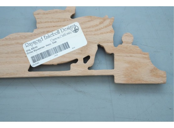 Carved hardwood wall applique featuring a horse jumping motif, for decorative use.