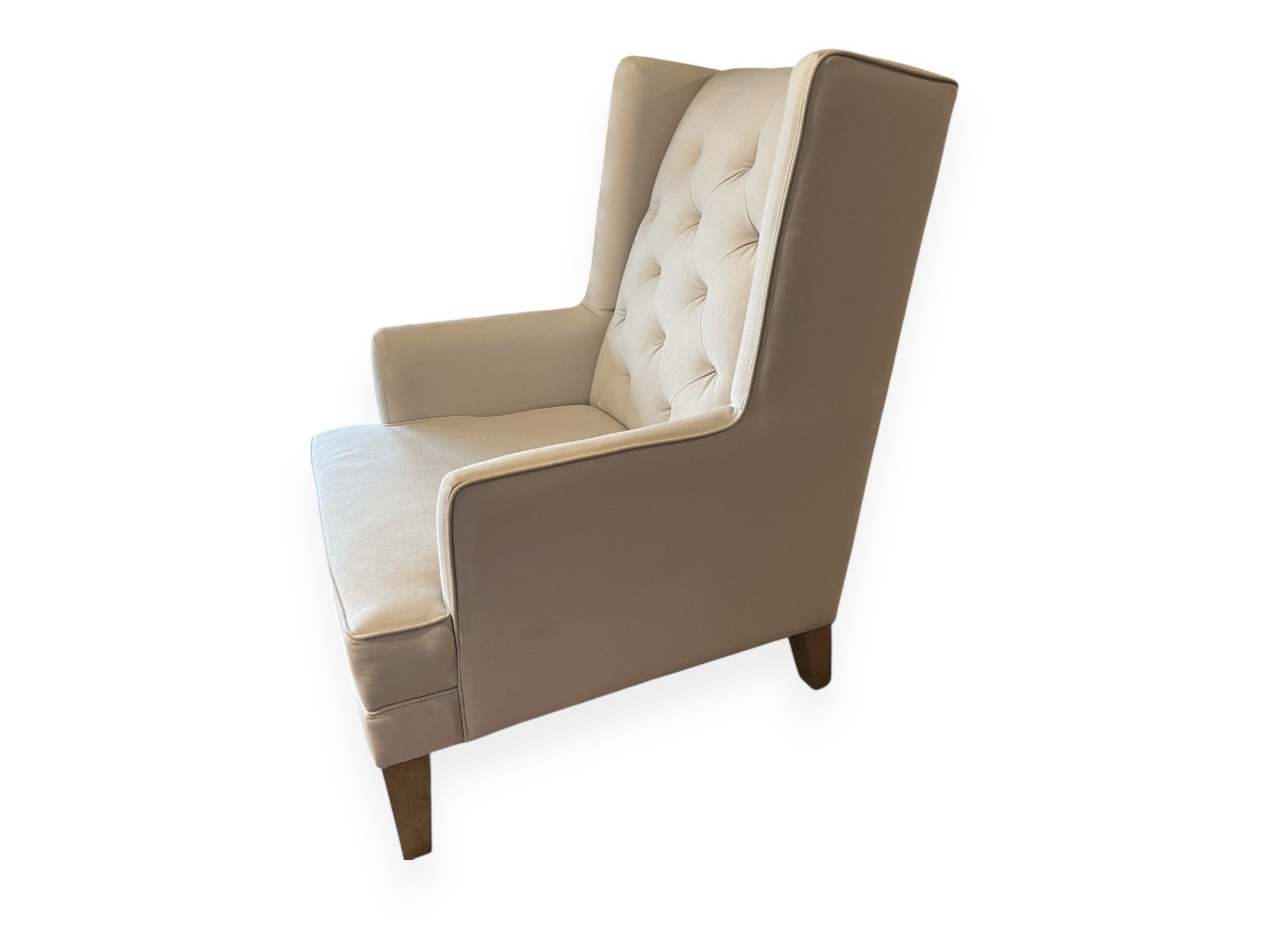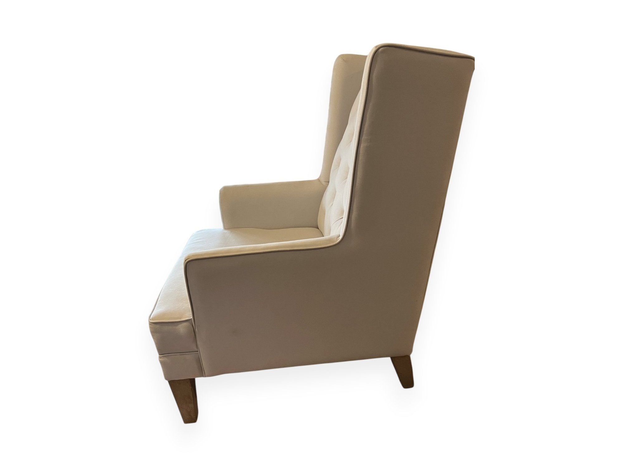 High‑back wing‑style 2‑in‑1 rocker and accent chair with plush seating, padded armrests, and a deep diamond‑tufted back, built on a solid hardwood frame with detachable rocker rails that can be swapped for stationary feet. Rocker rails included. Small stain on seat.