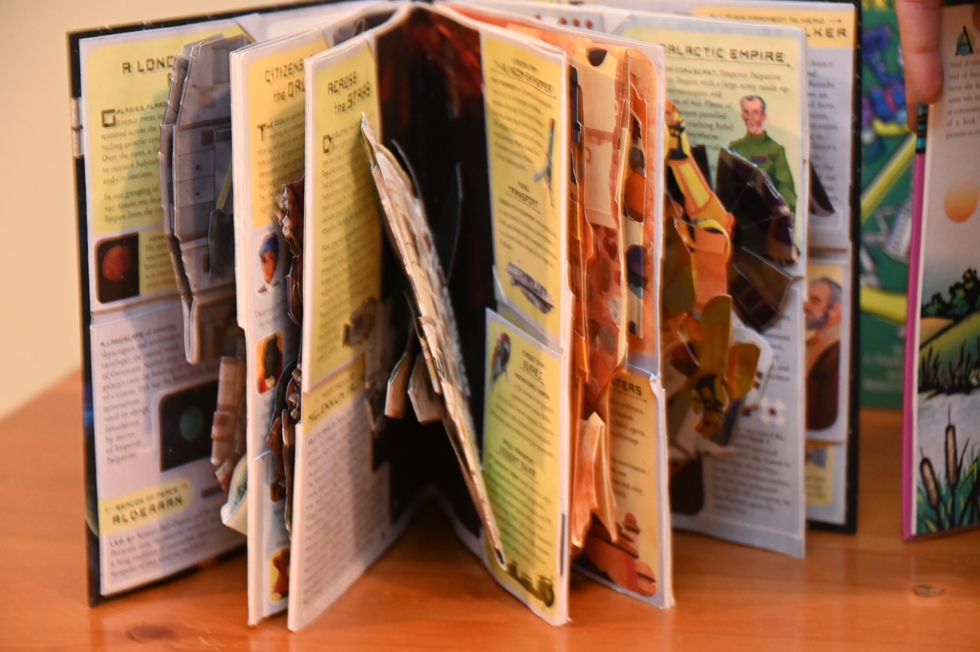 "Star Wars: A Pop-Up Guide to the Galaxy" by Matthew Reinhart – Featuring a dramatic cover with Darth Vader, this book explores the Star Wars universe in an interactive pop-up format.