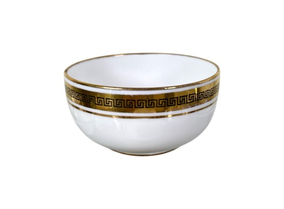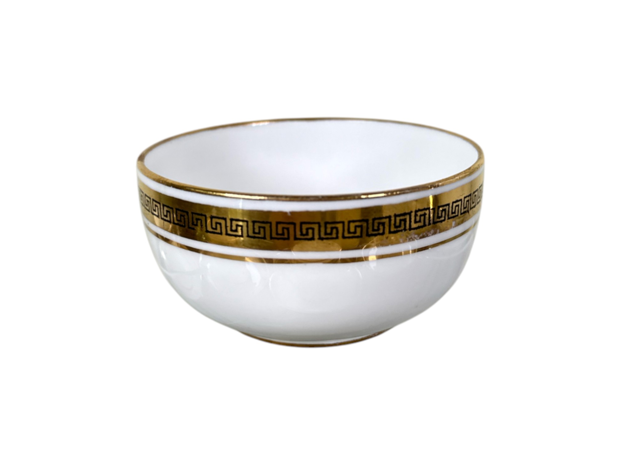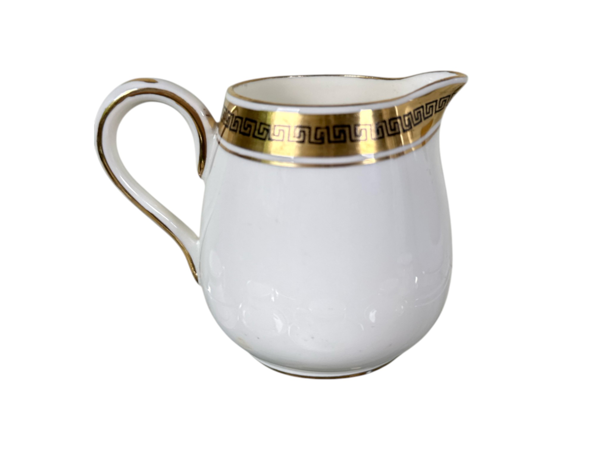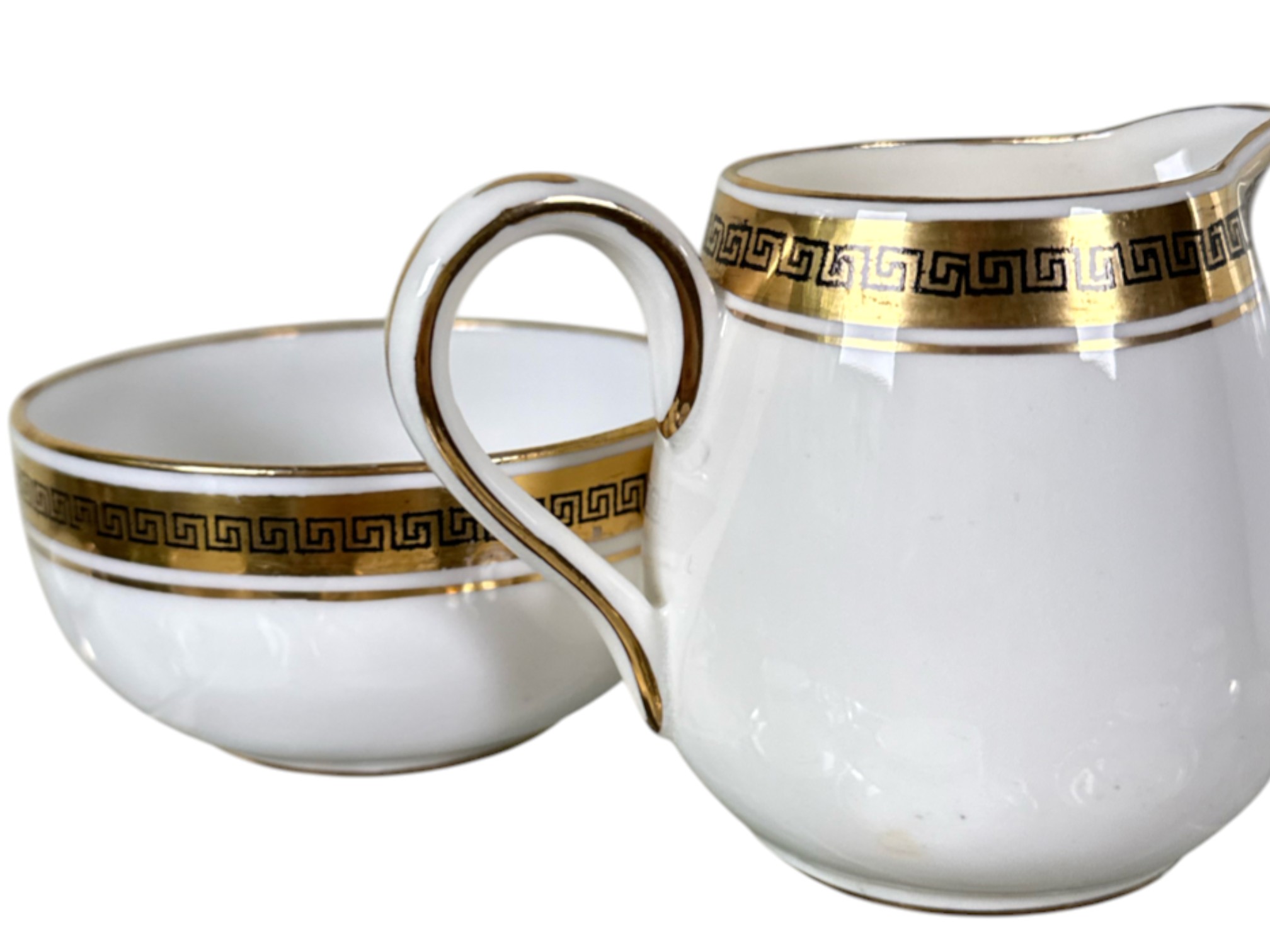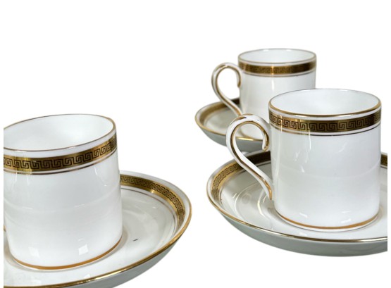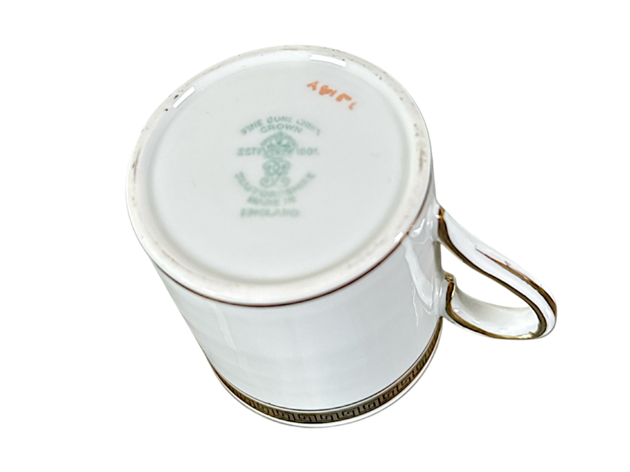 Crown Staffordshire "Greek Key" pattern coffee service, made of ivory fine china and accented with a gold band resembling a Grecian pattern. Full set includes service for six (6) guests: