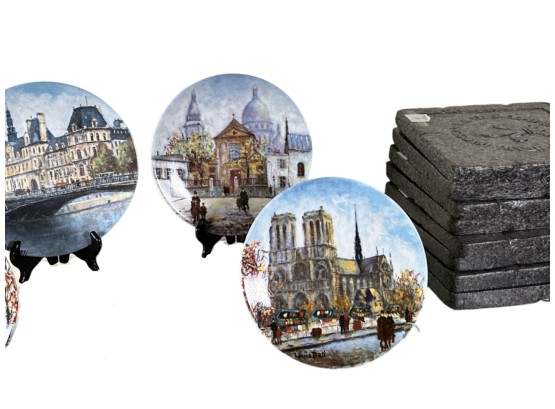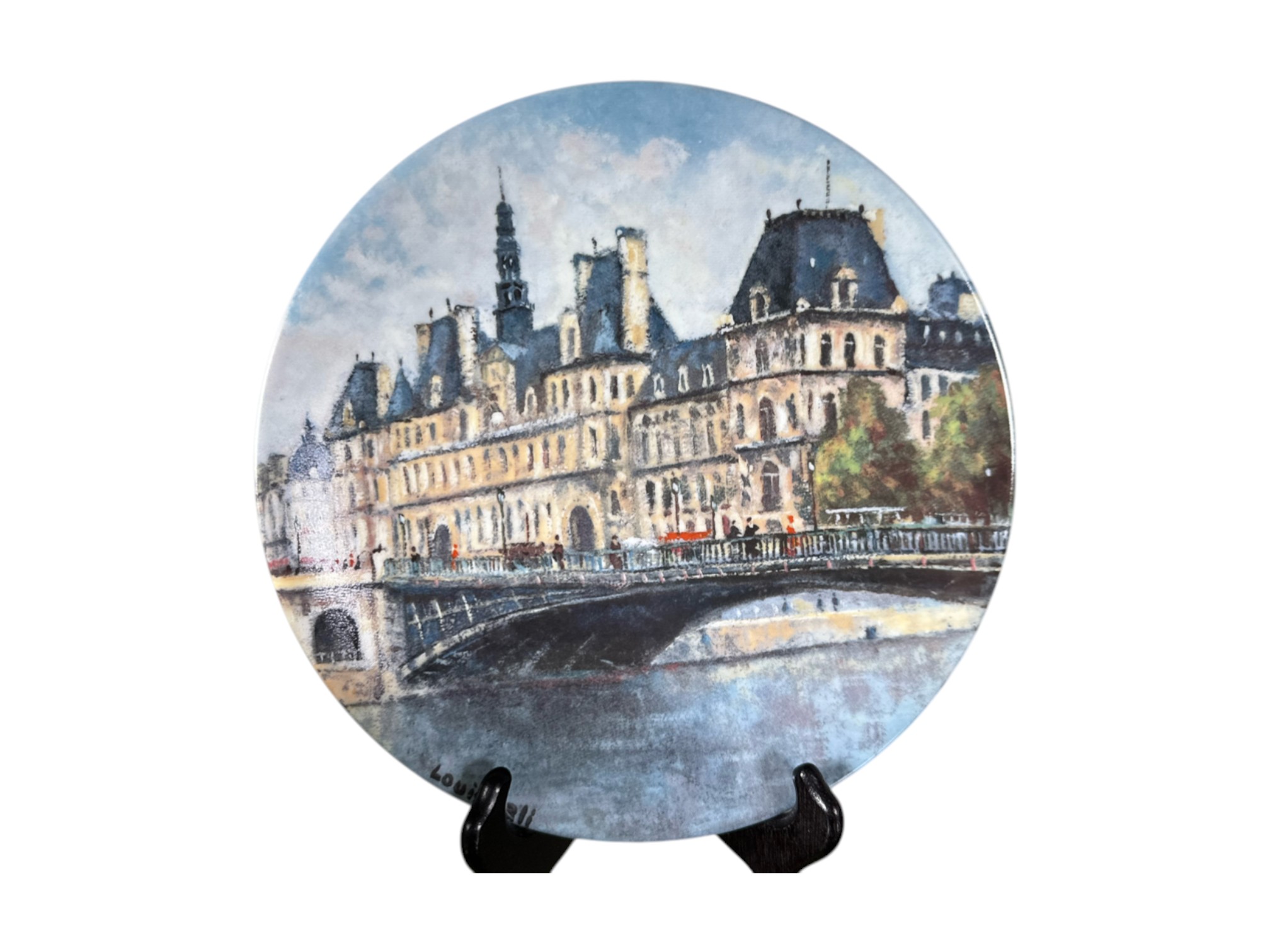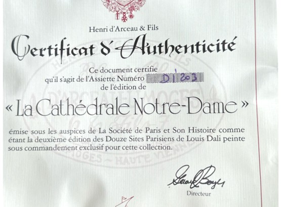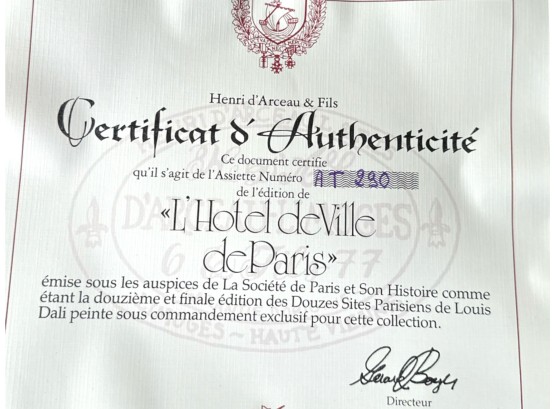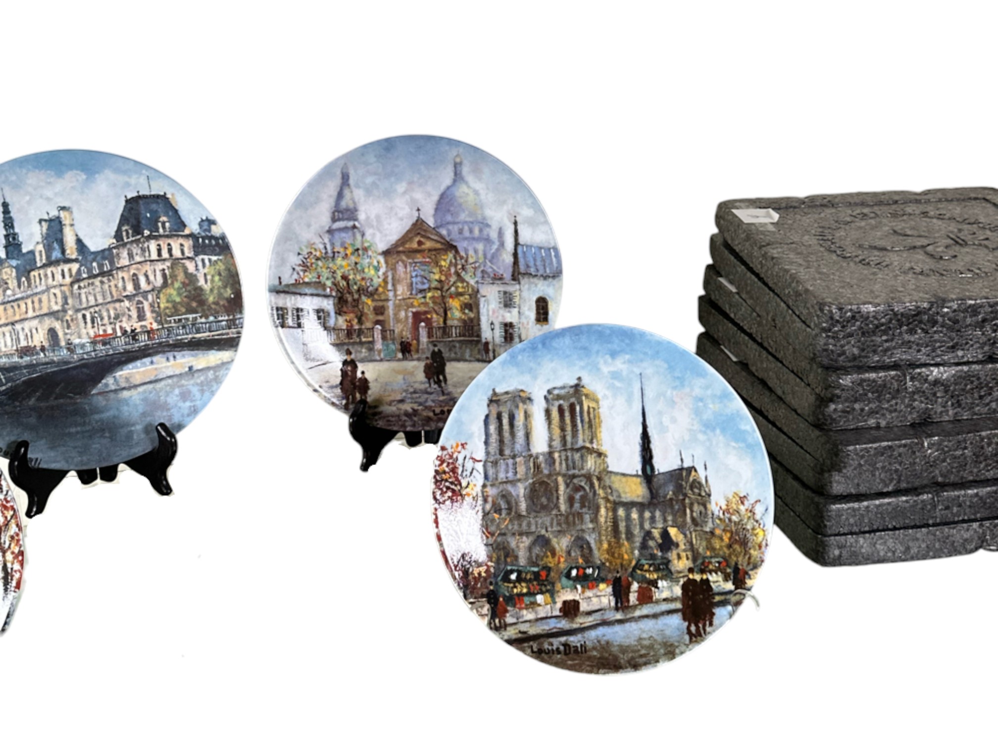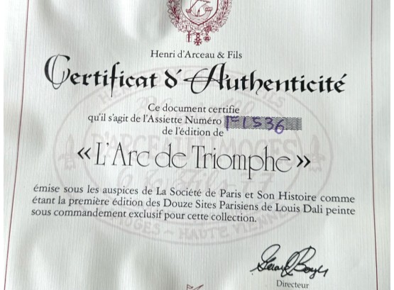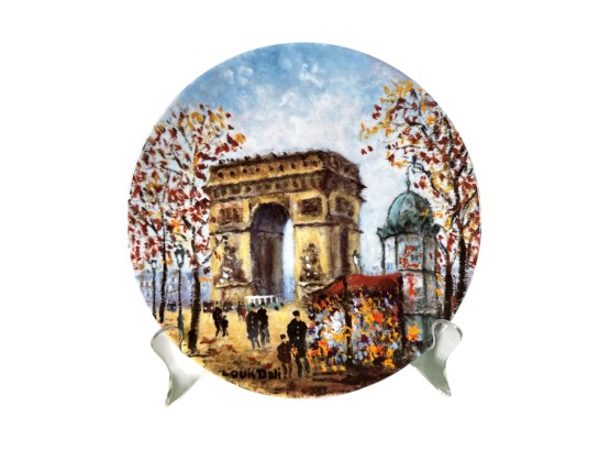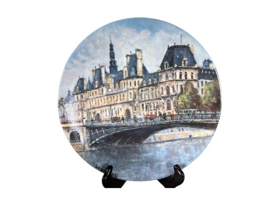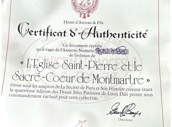 Hand-painted decorative plates (with original boxes and certificates of authenticity), made by Henri D'Arceau Limoges (France), featuring artist Louis Dali who is known for capturing Parisian atmospheres.