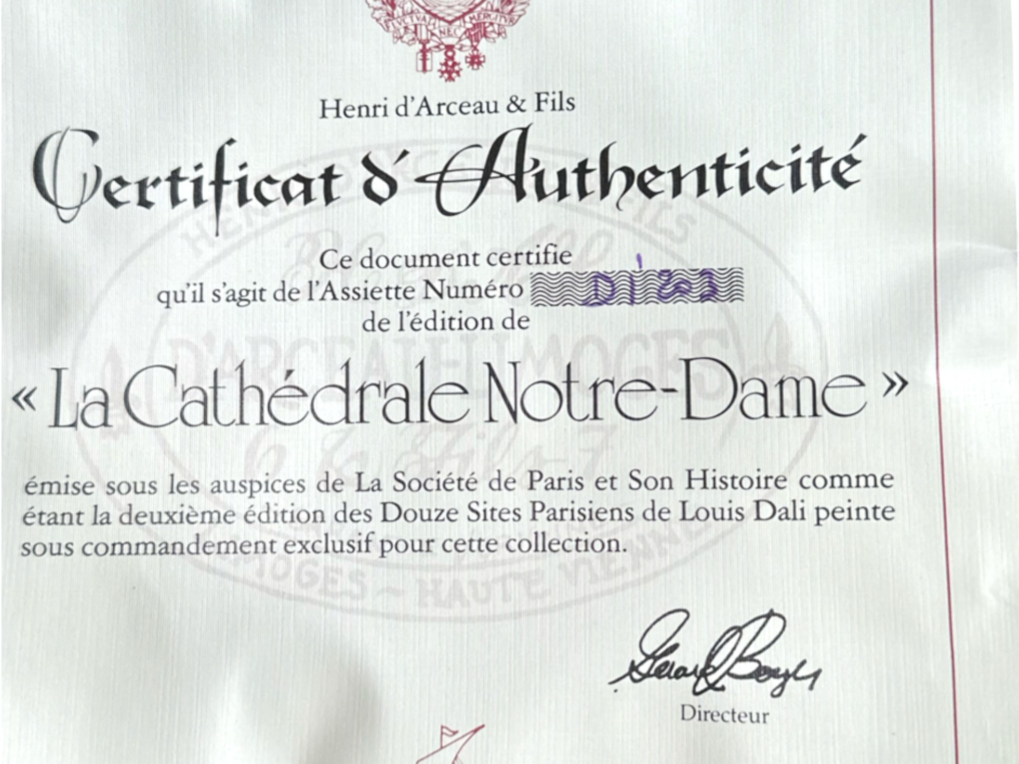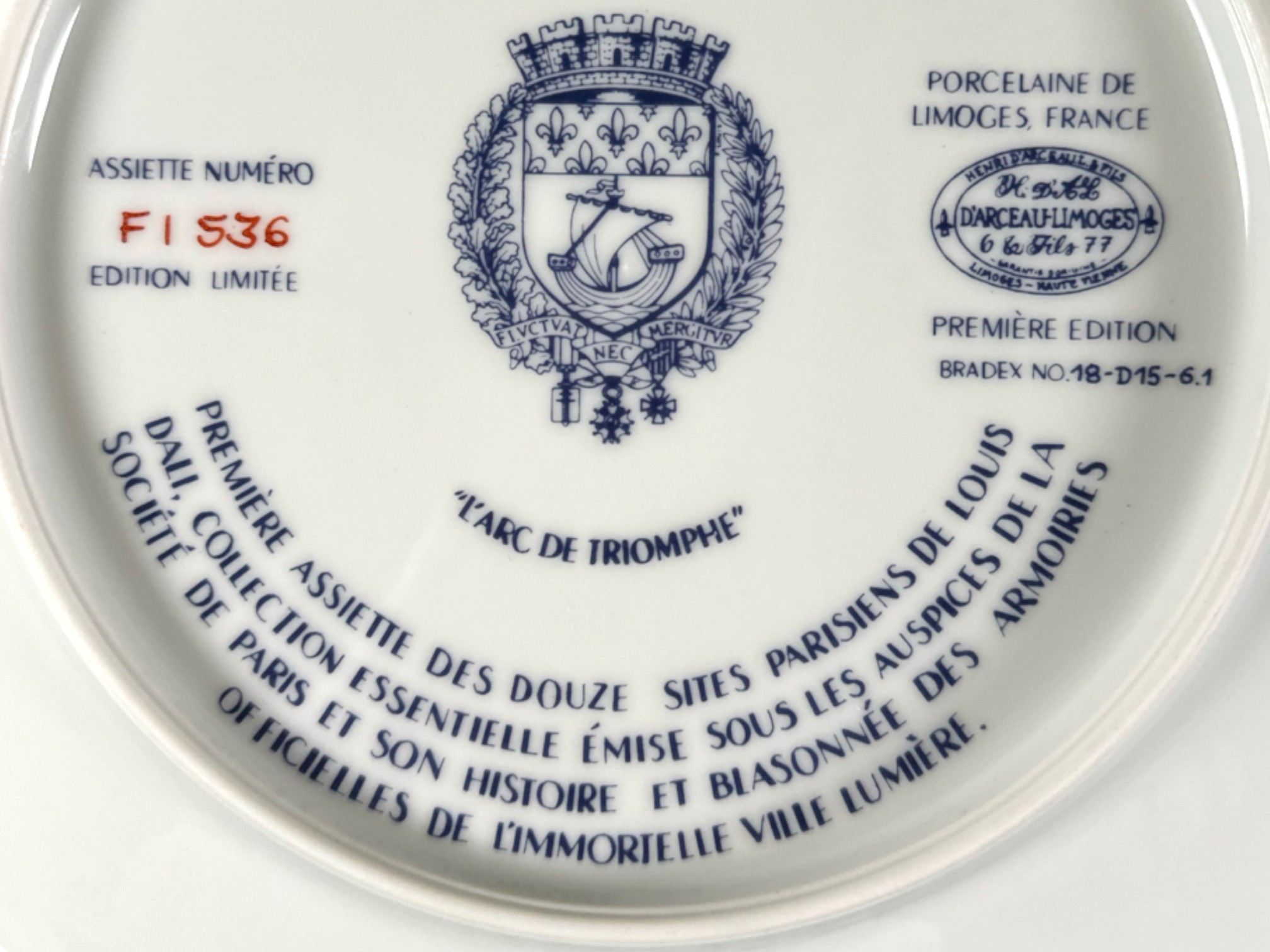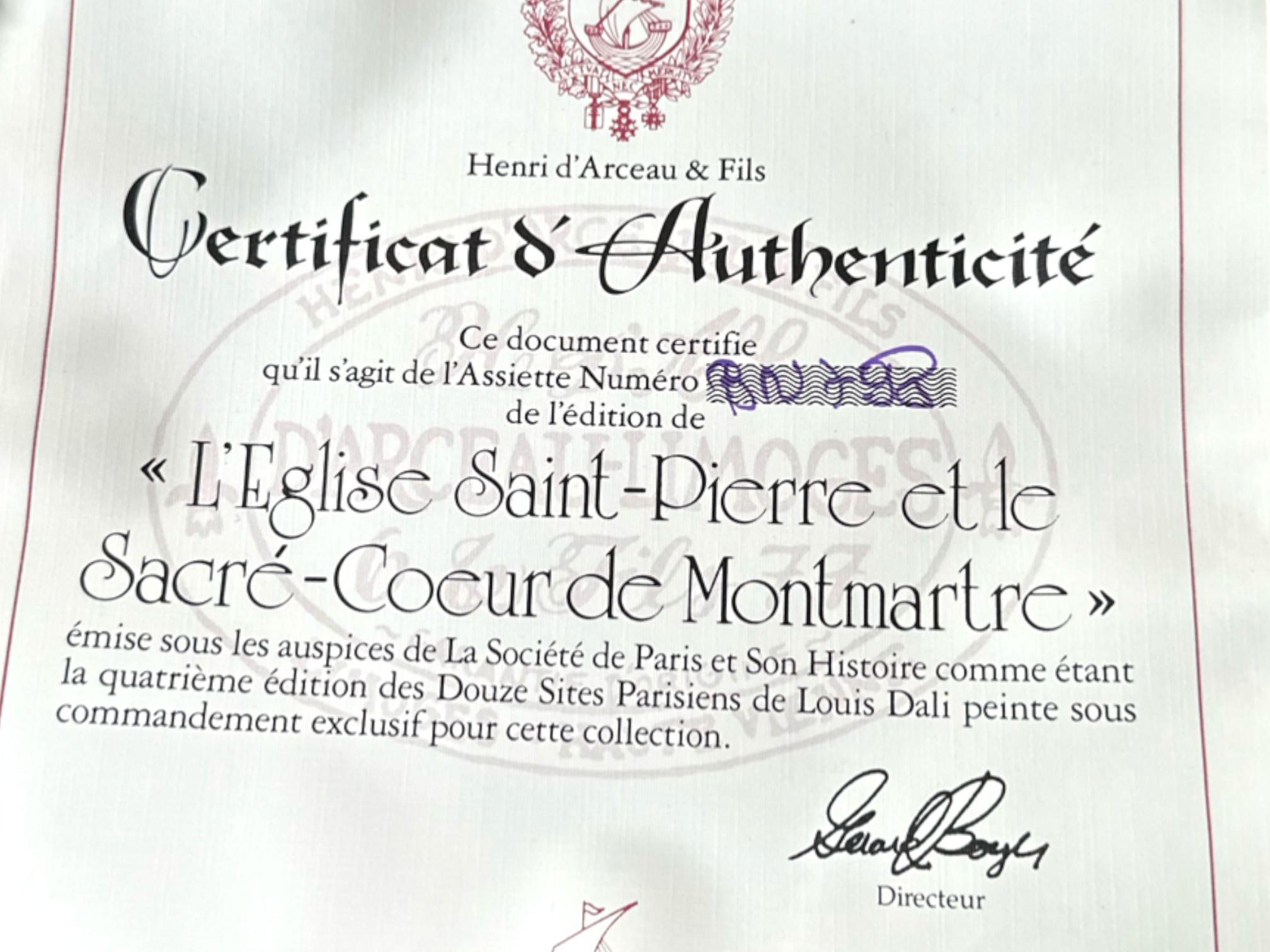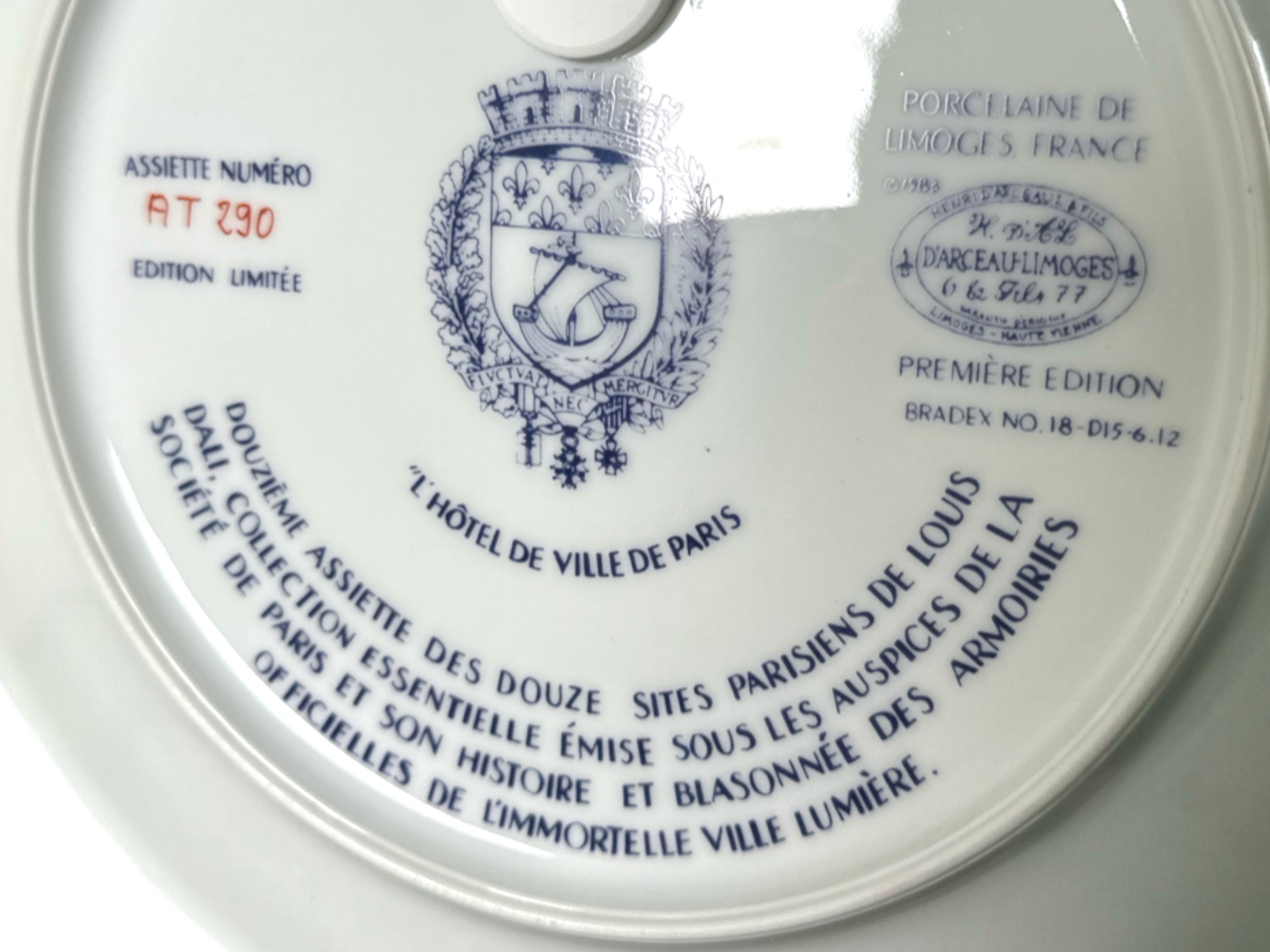Hand-painted decorative plates (with original boxes and certificates of authenticity), made by Henri D'Arceau Limoges (France), featuring artist Louis Dali who is known for capturing Parisian atmospheres.