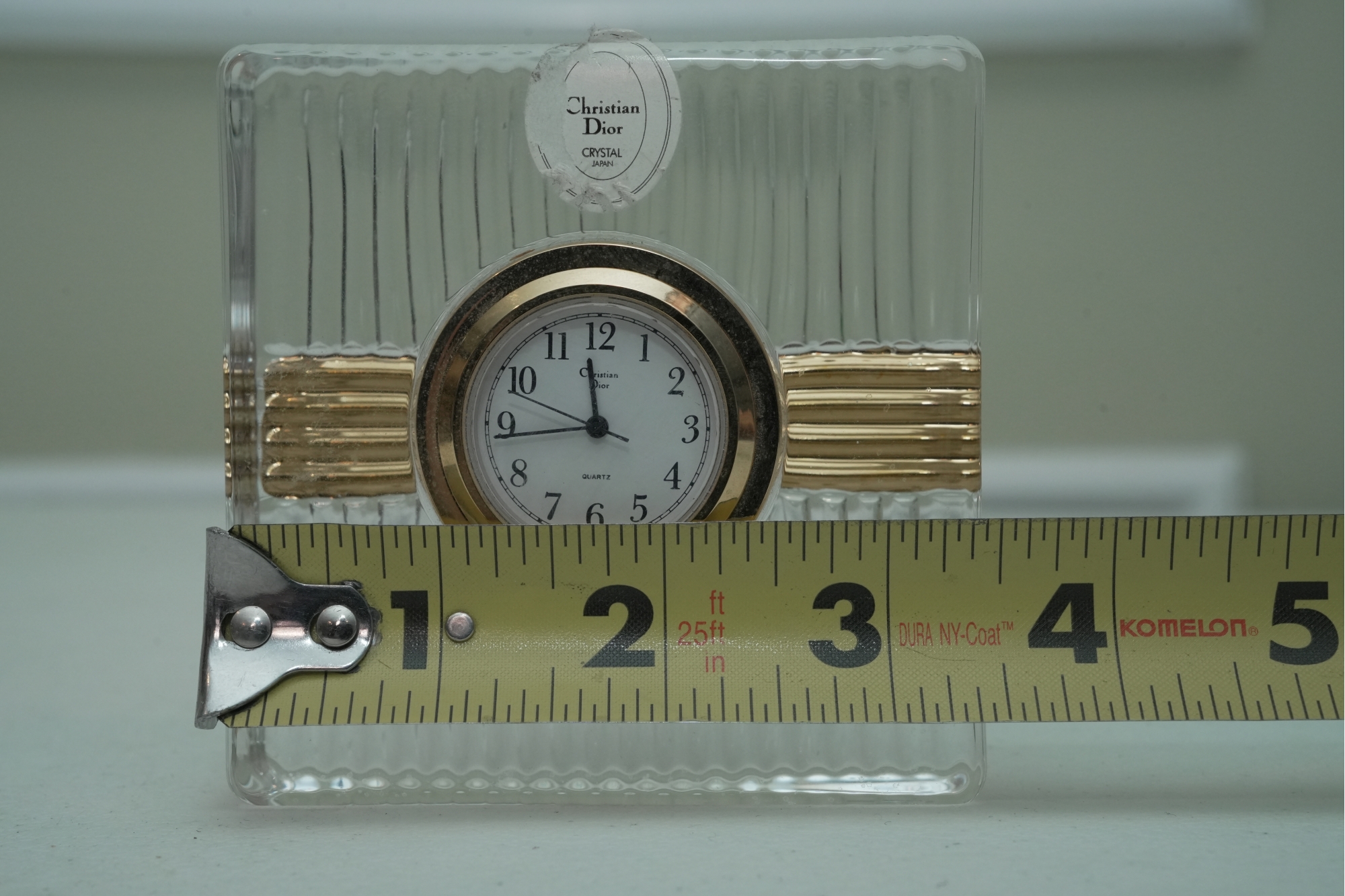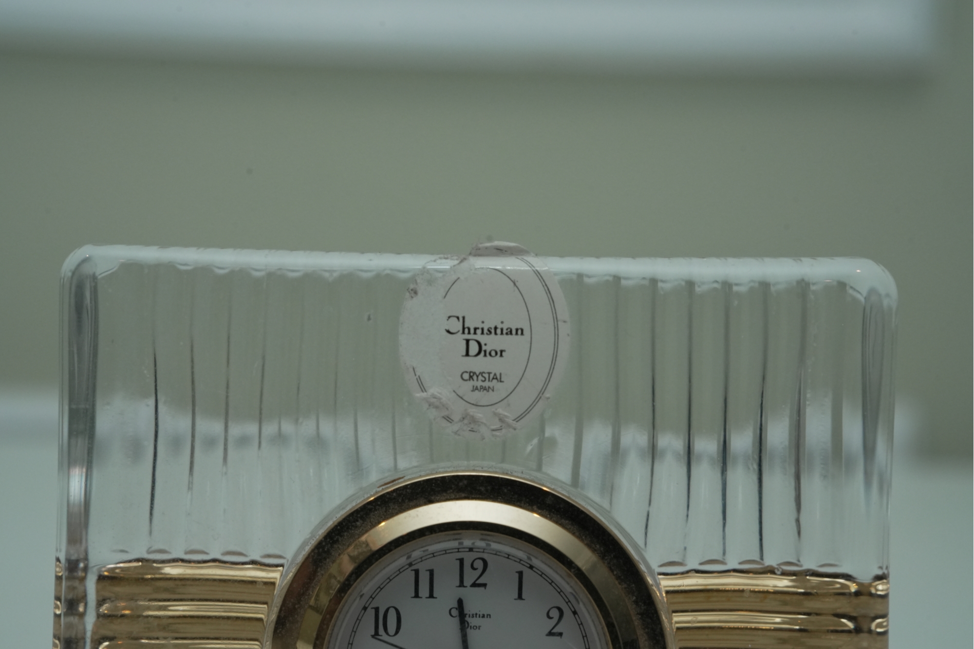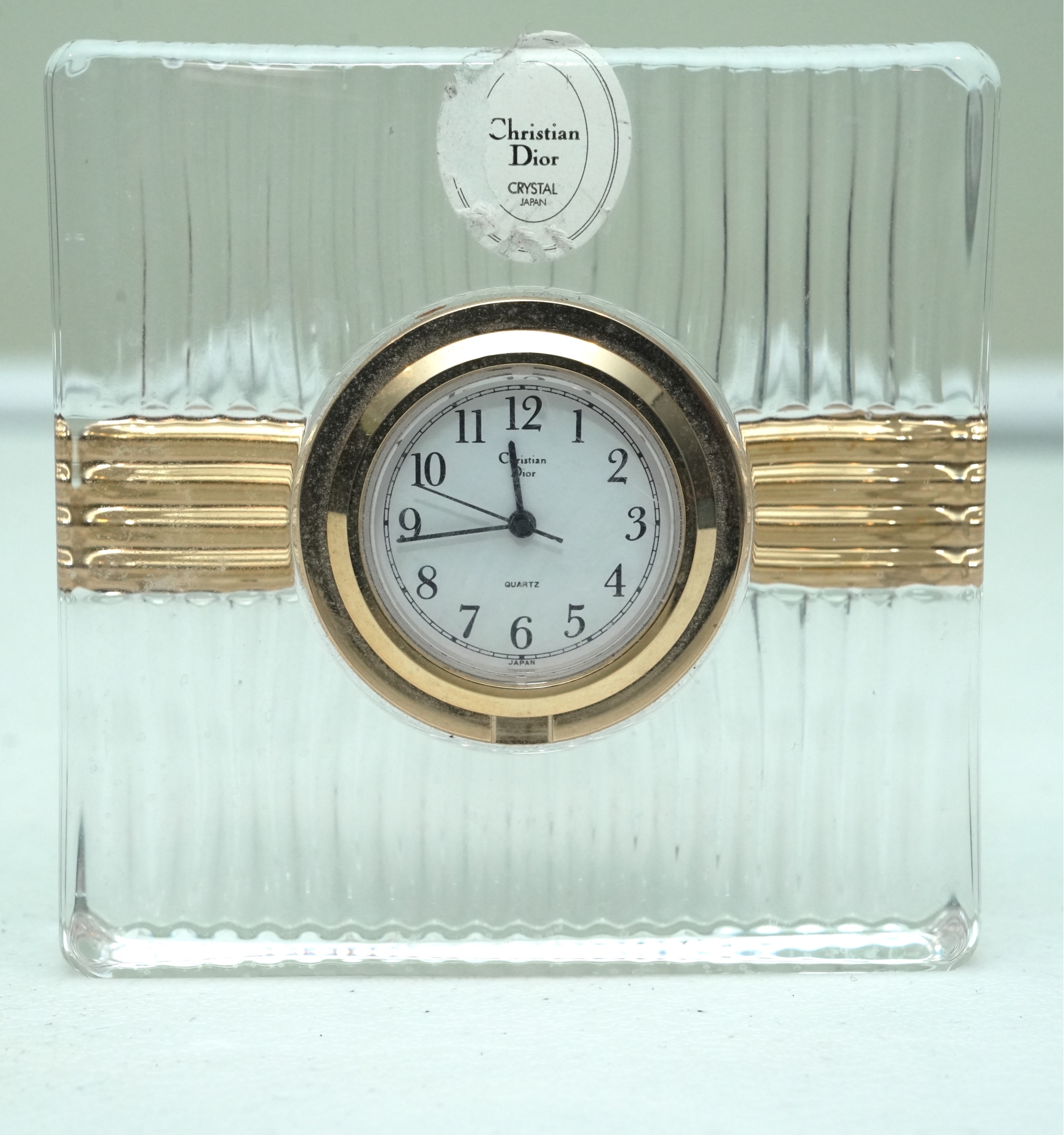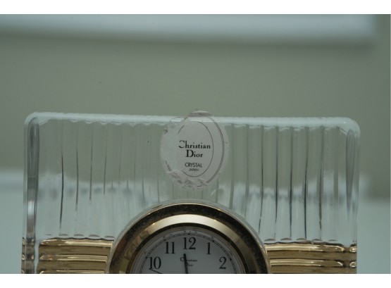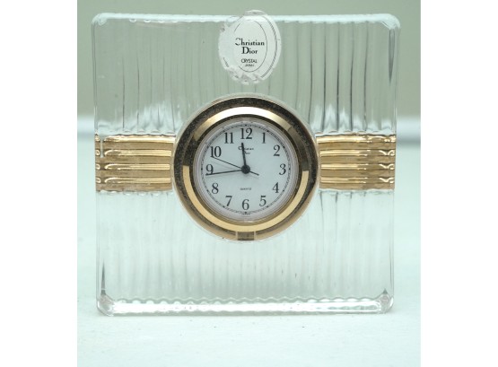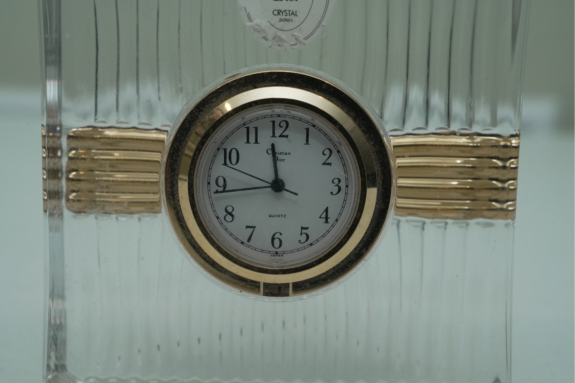 Christian Dior Crystal Desk Clock With Gold-Tone Accents And Fluted Design