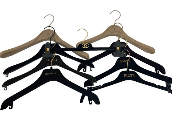 Collection of Luxury Designer Hangers Including Chanel, Gucci, Louis Vuitton, Brunello Cucinelli,