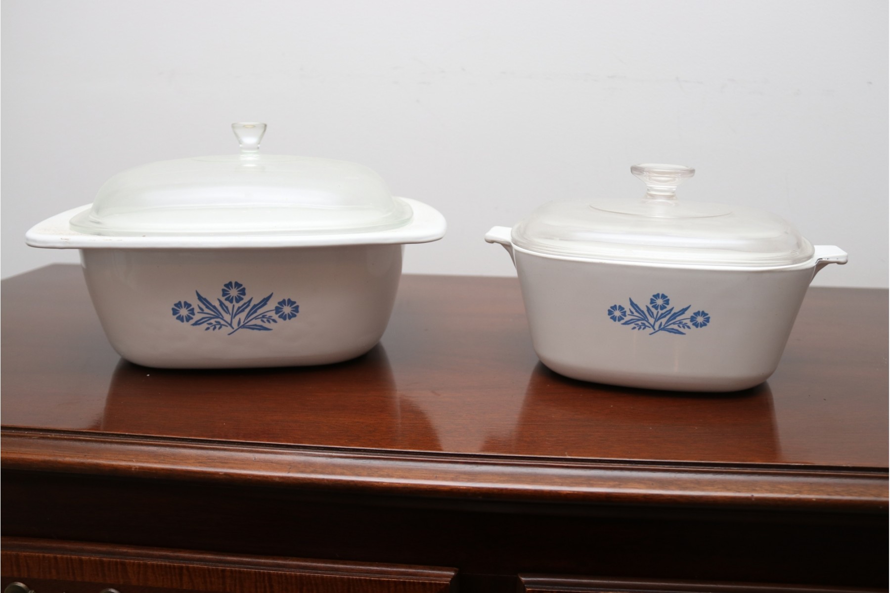 Classic blue cornflower covered dished in used condition as seen and include the matching lids