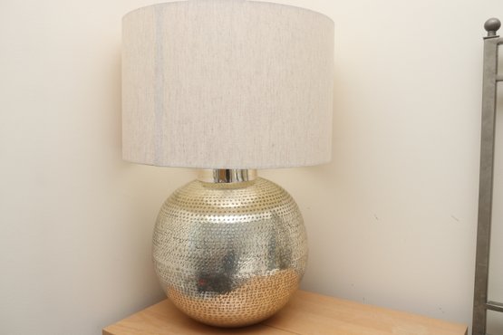 This silver/gold lamp is in good condition. Shade is 19" in diameter.