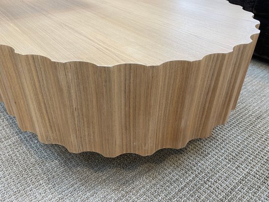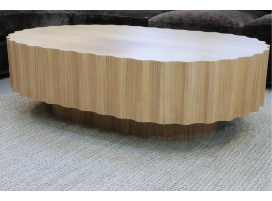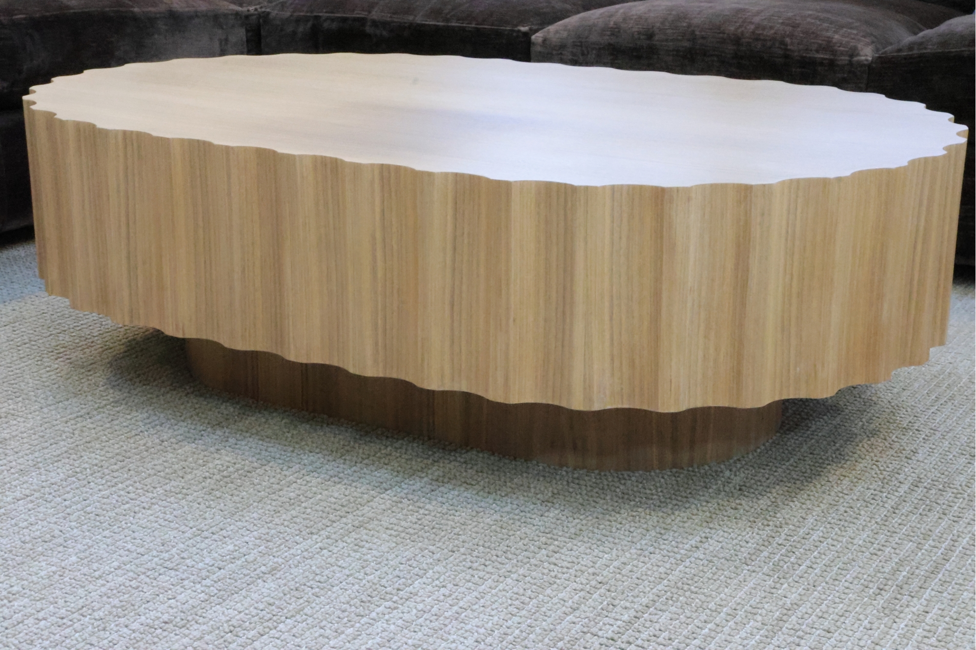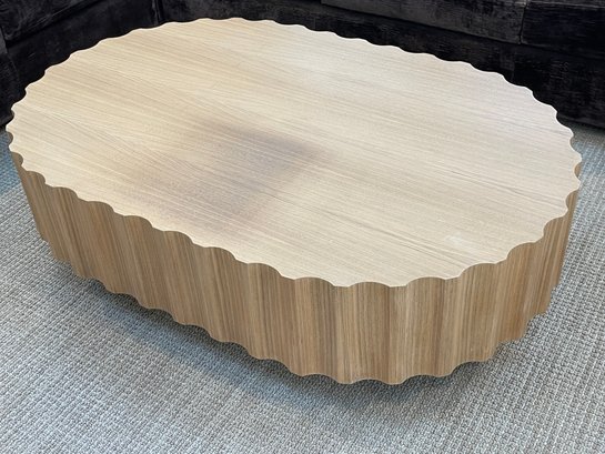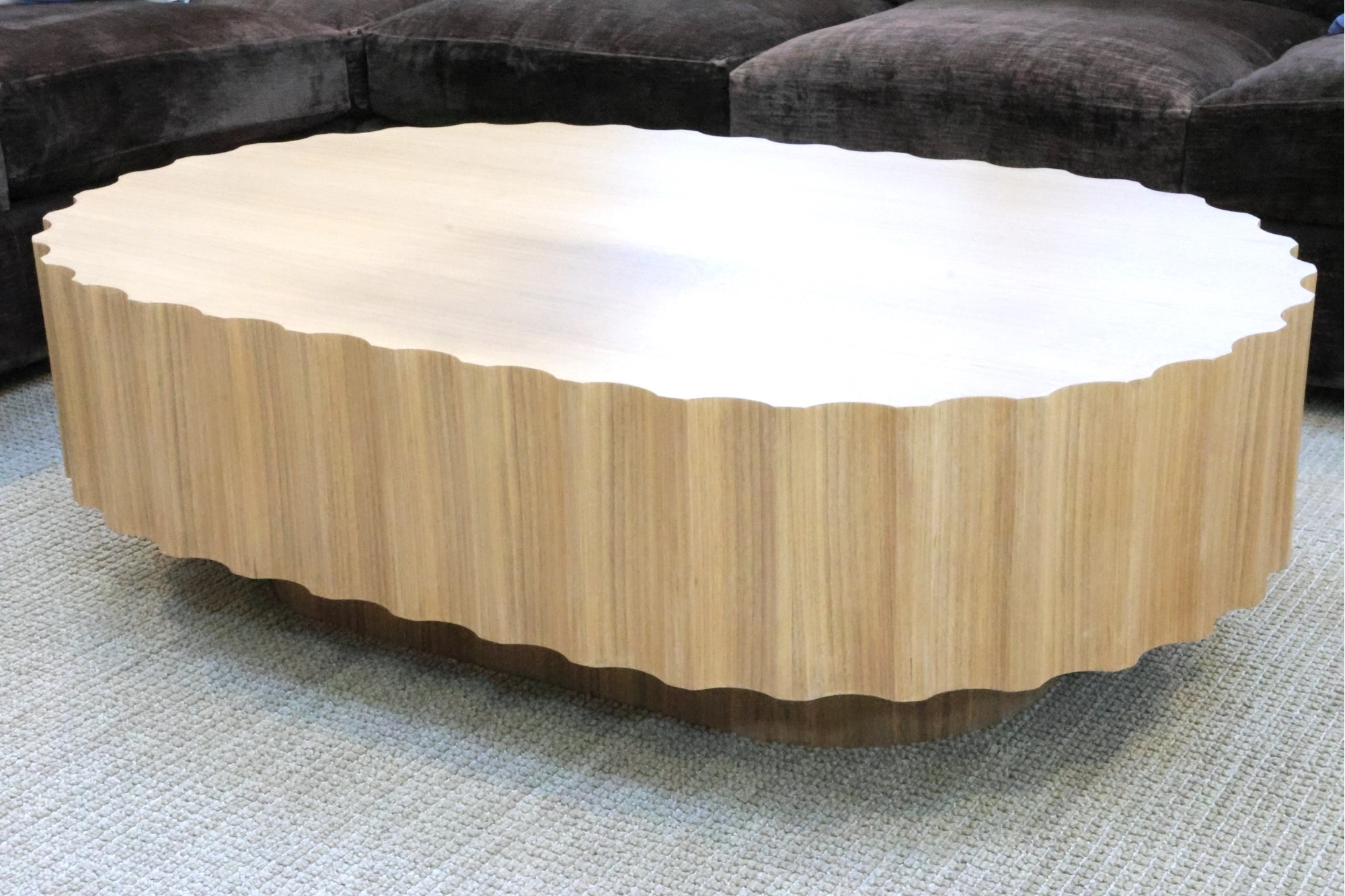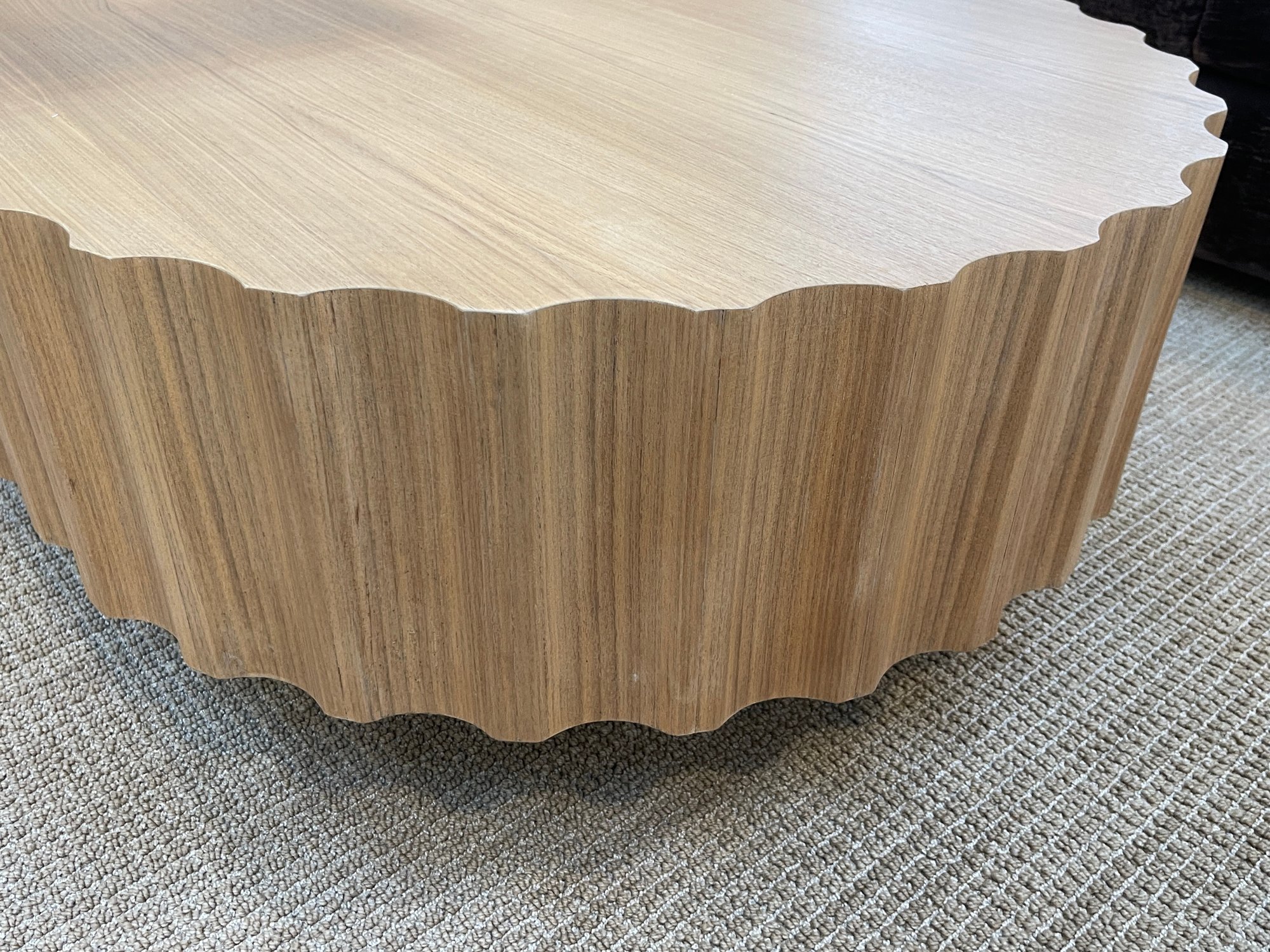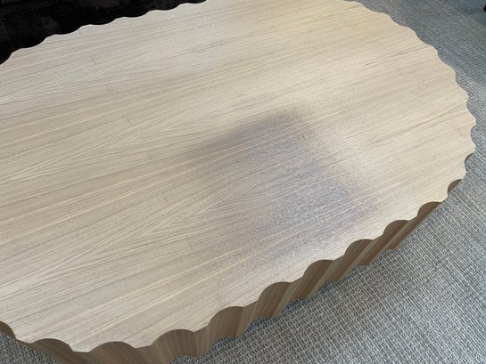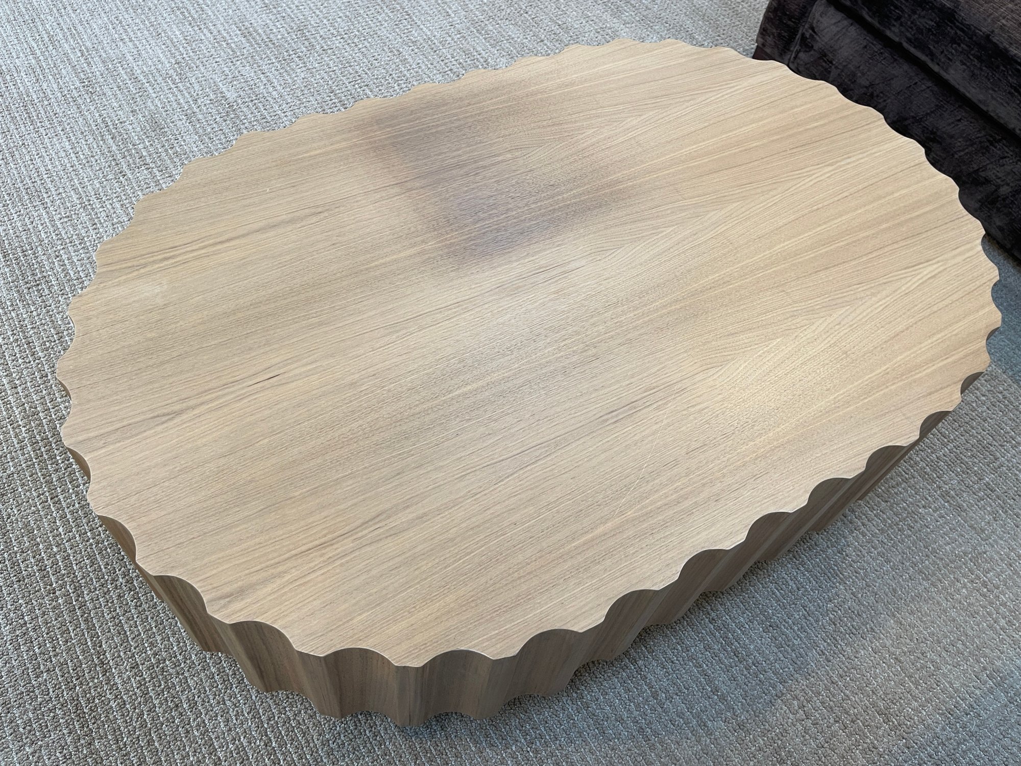 Sculptural coffee table crafted from light-toned wood, featuring an irregular wavy edge and organic form. The design highlights modern craftsmanship. Please note the spot of discoloration as shown.