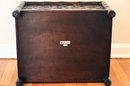 The open-top design makes it practical for storing items such as blankets, magazines, or decorative accessories, while the small rectangular cutout handles on opposite sides provide easy mobility. The piece stands on four short, sturdy legs, elevating it slightly off the floor and adding to its balanced and polished aesthetic.
