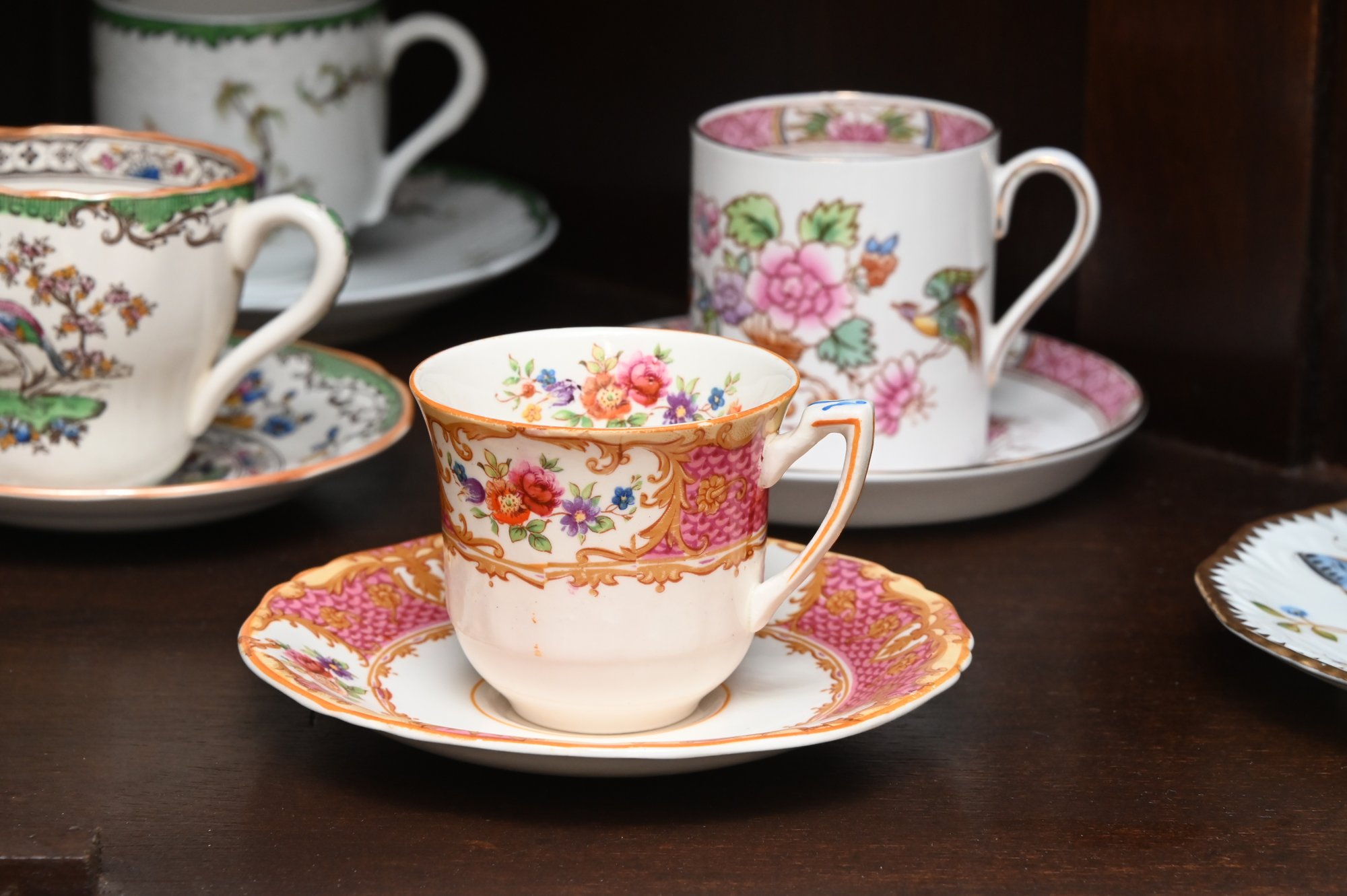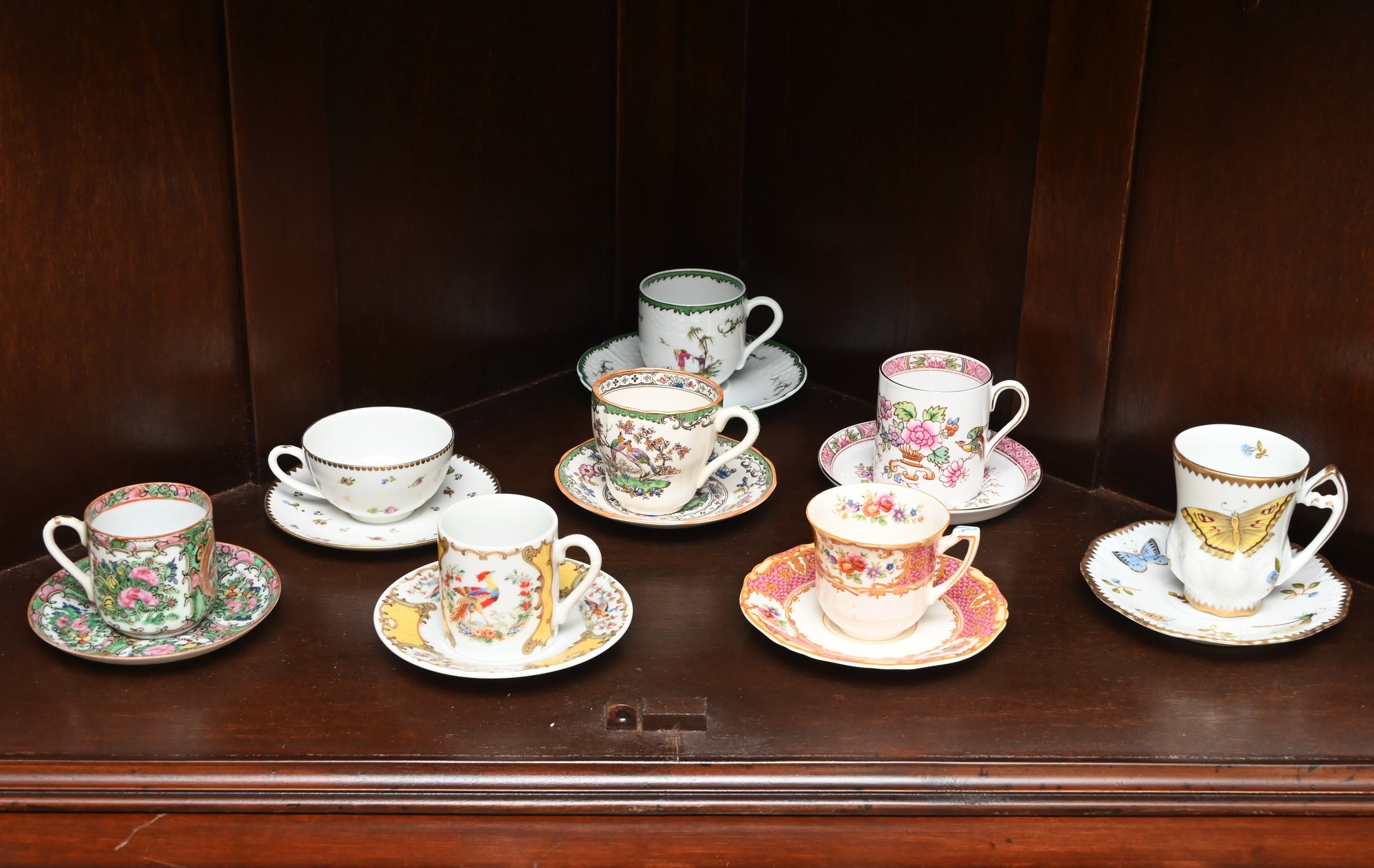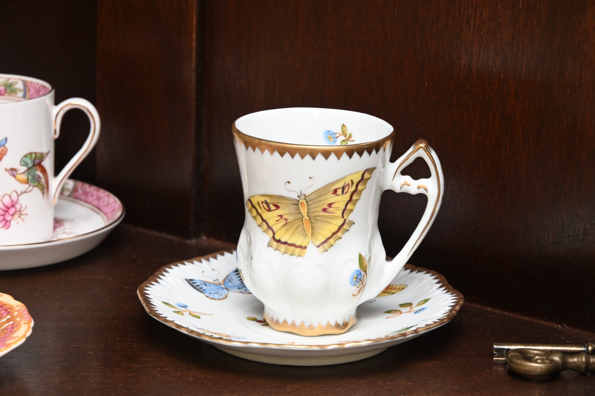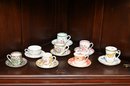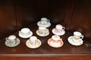 This is a beautiful and diverse collection of antique and vintage cups and saucers . Each piece features unique designs, representing a variety of artistic styles and porcelain traditions.