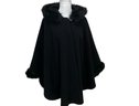 Dennis By Dennis Basso Black Wool Cape With Fur Trim And Hood