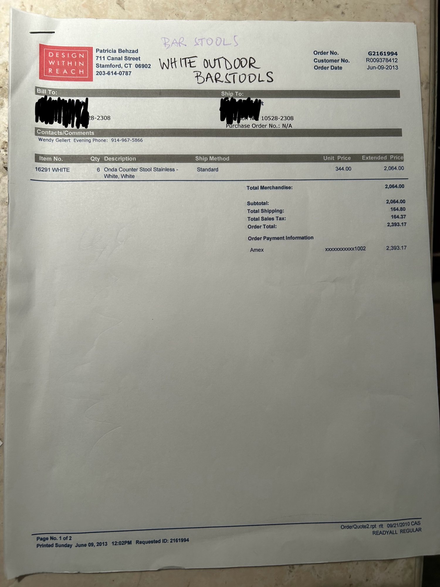 ALTERNATE PICK UP & SHIPPING: