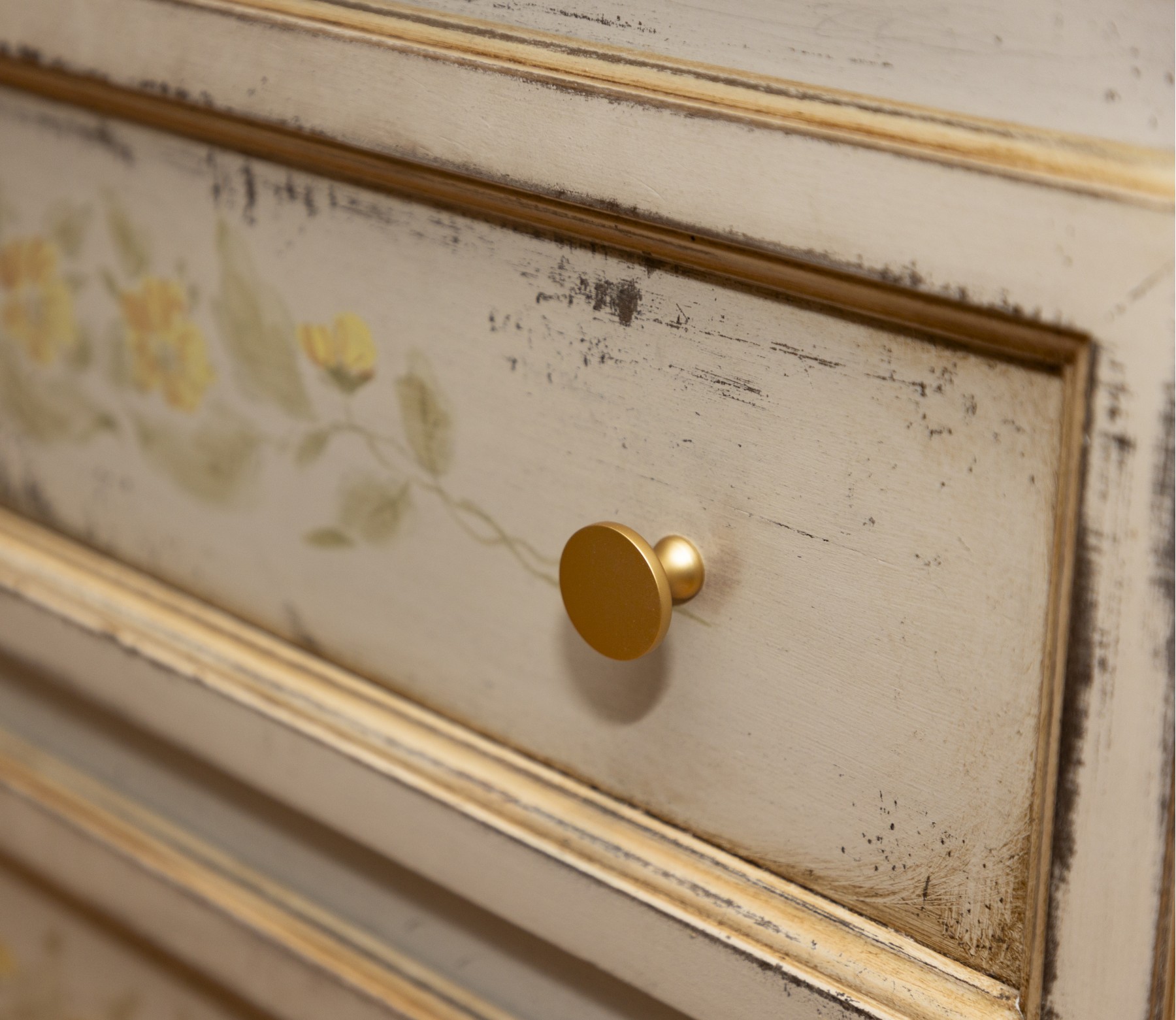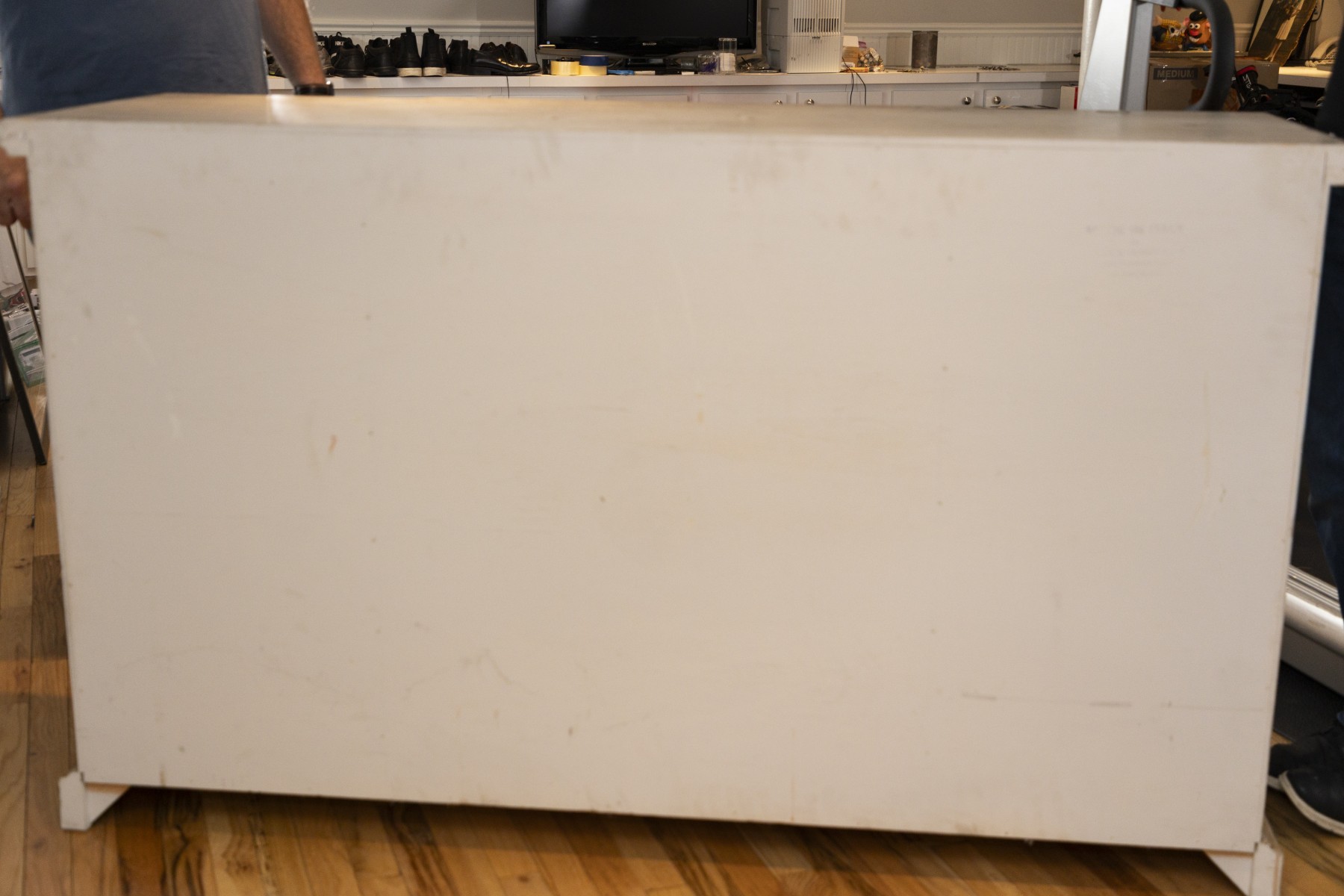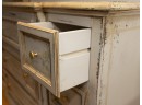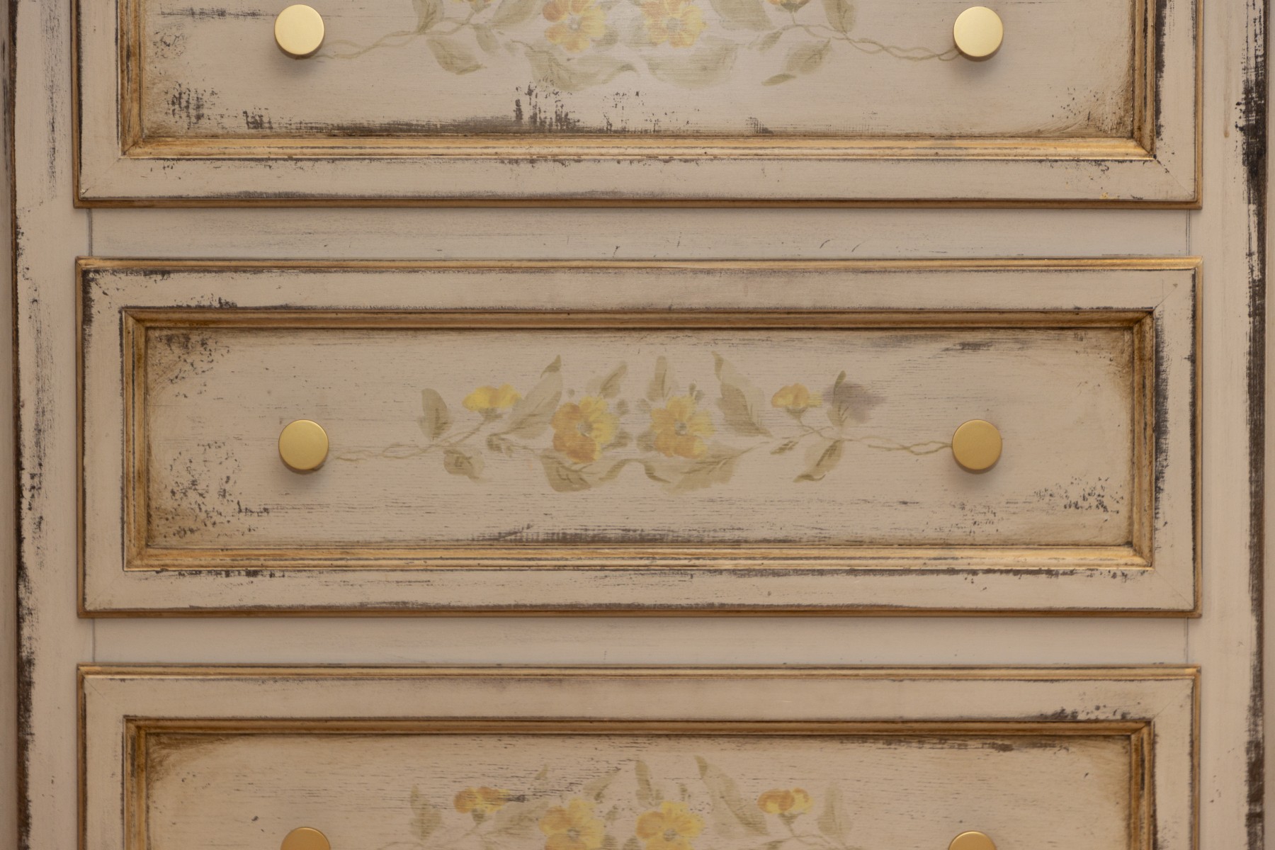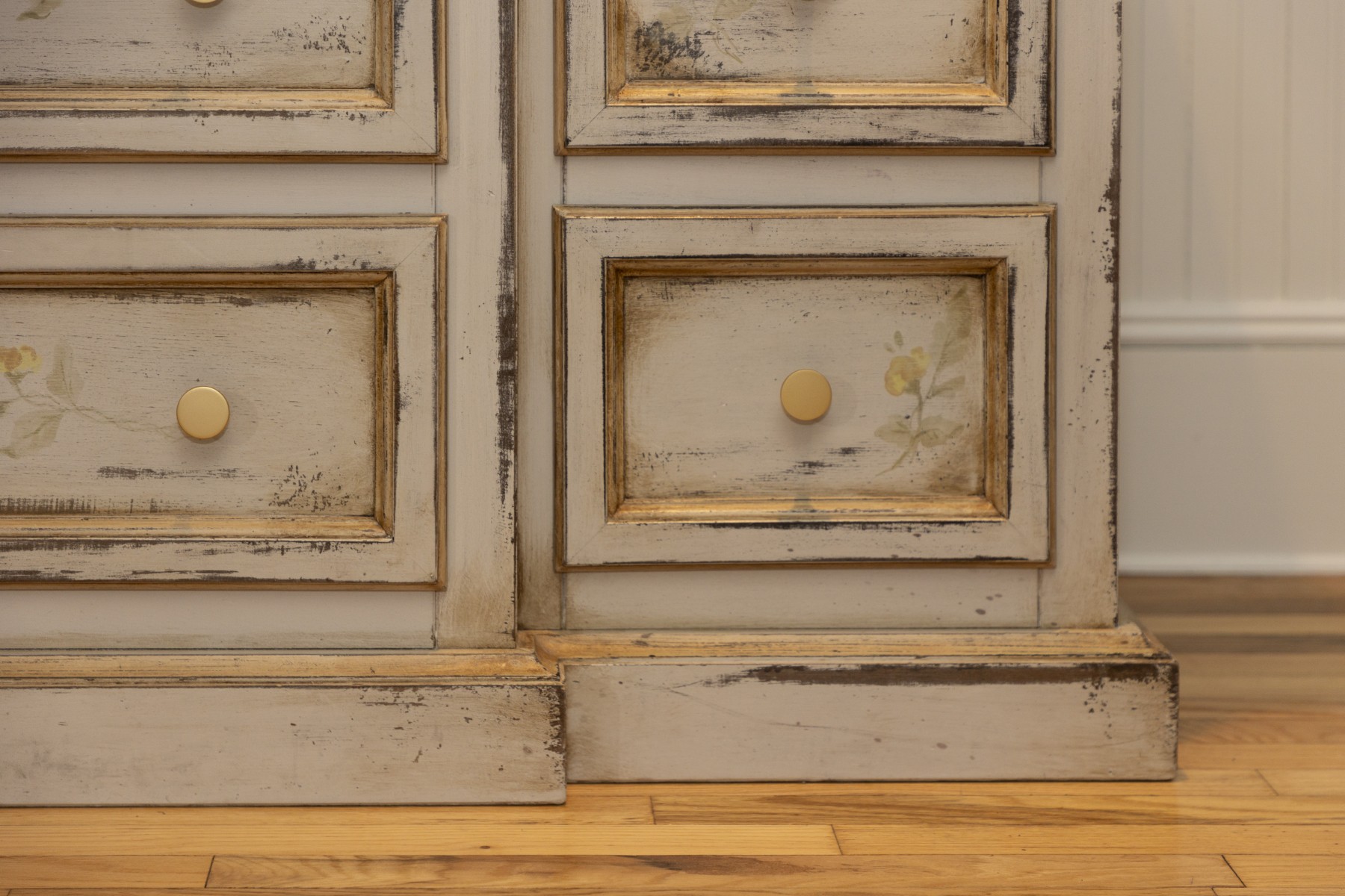 polychrome style painted front, this 9 drawer dresser is in good condition