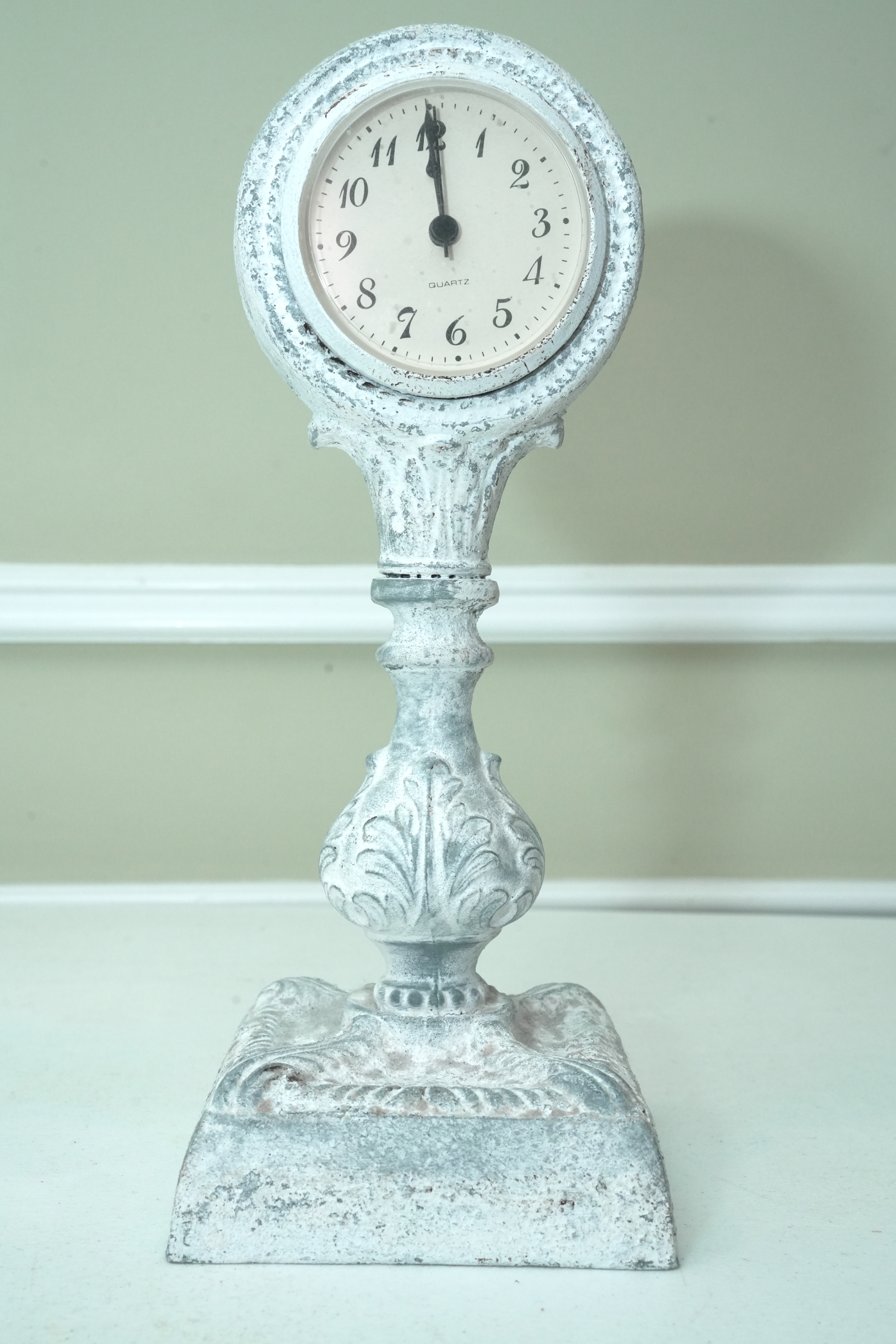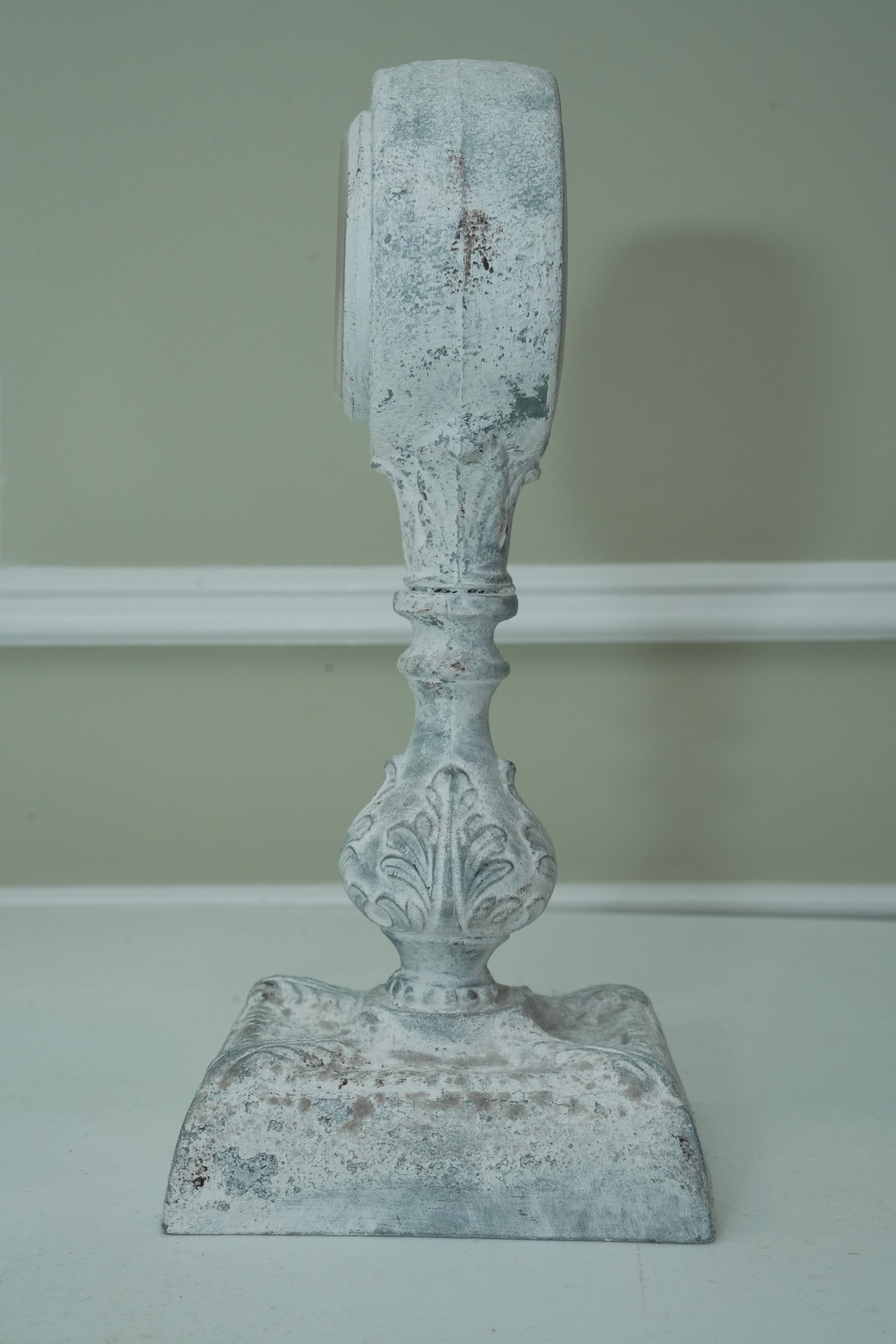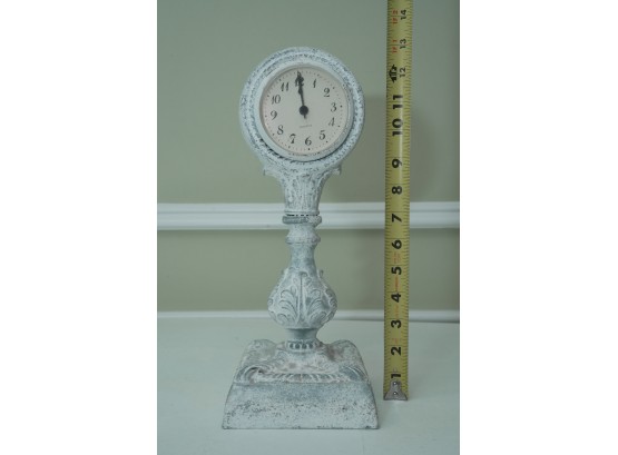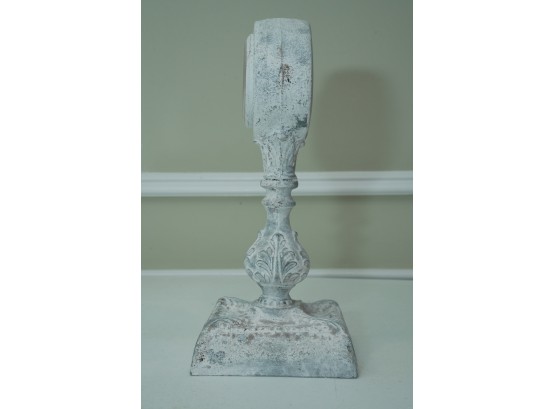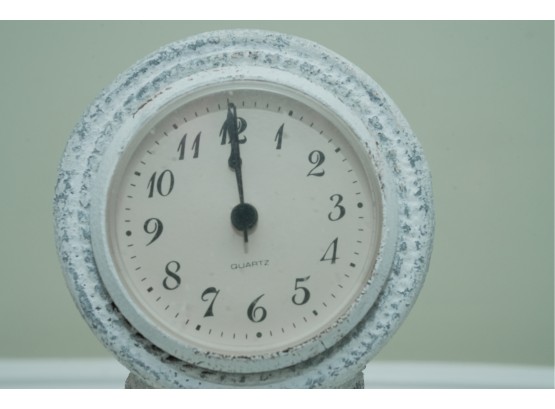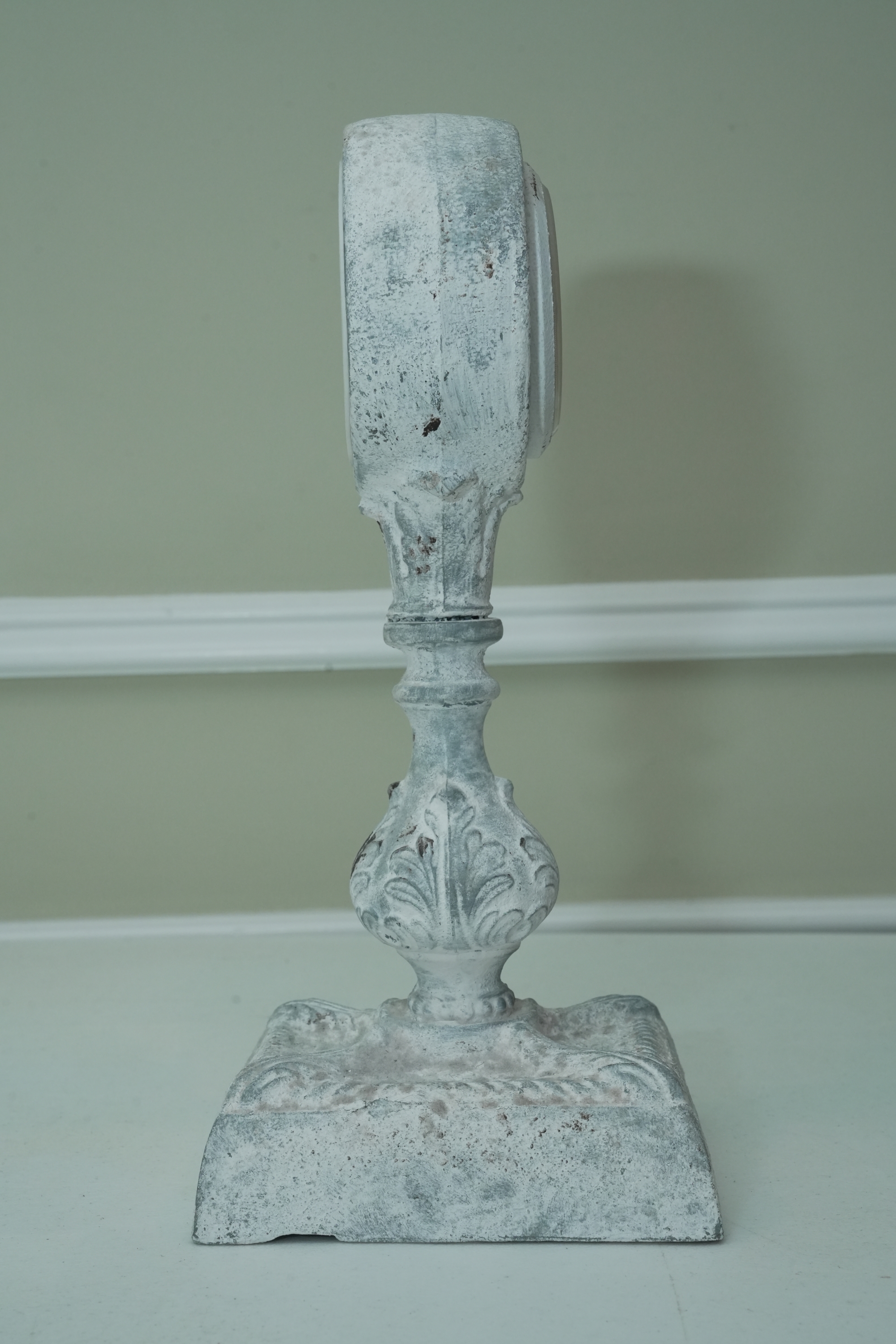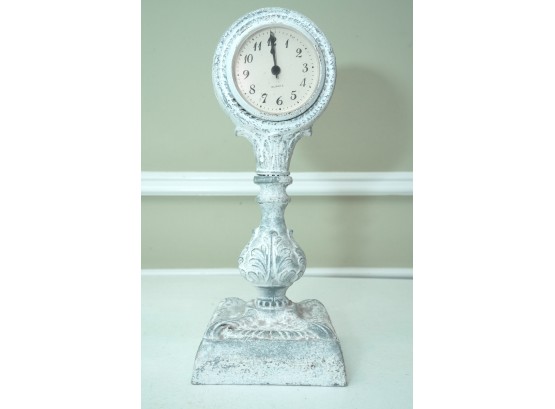 Distressed White Ornate Pedestal Table Clock