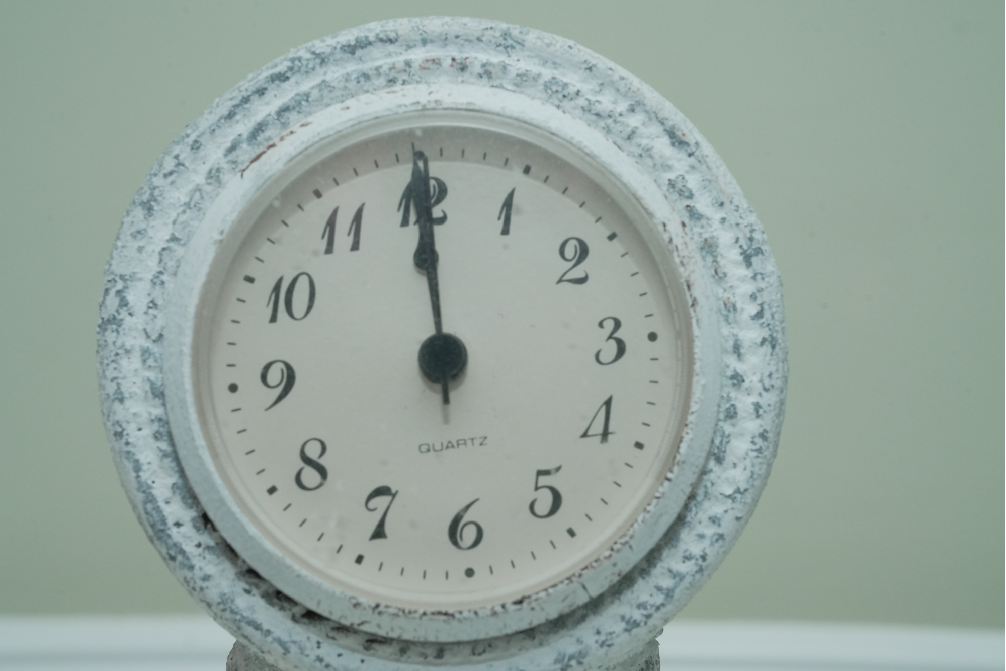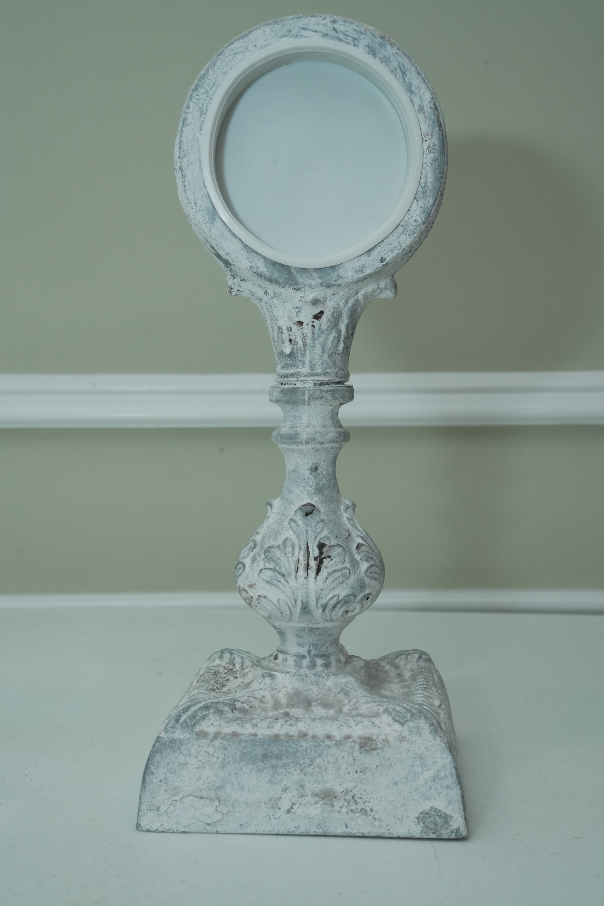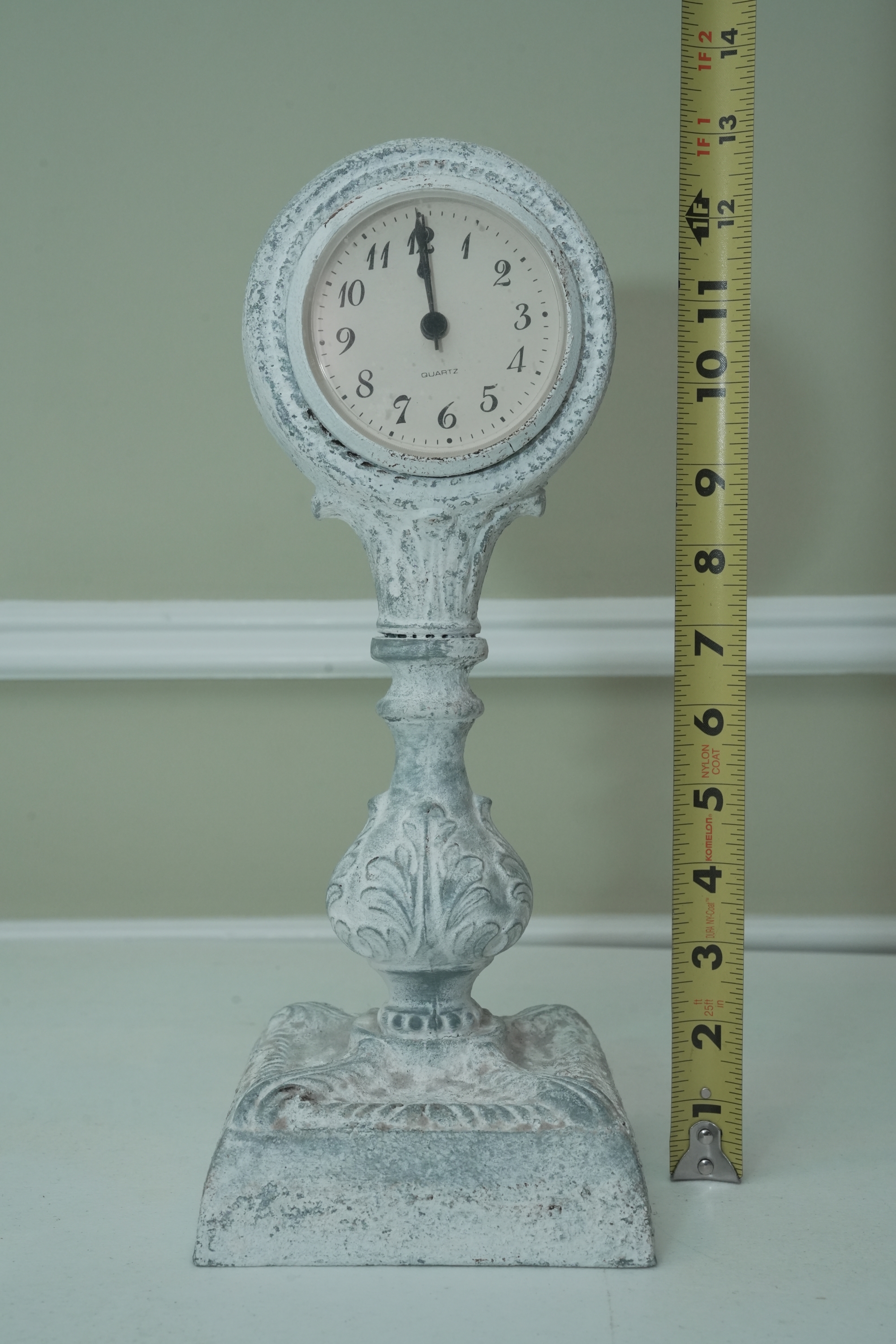 Distressed White Ornate Pedestal Table Clock