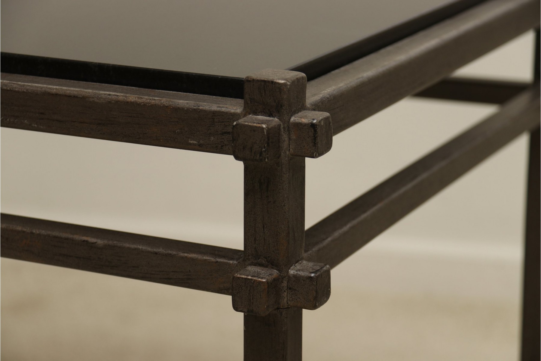 The Industrial Black Marble And Bronze Frame Coffee Table is a stunning piece of furniture that combines the beauty of natural marble with the strength and durability of bronze. The table features a sleek black marble top that is supported by a sturdy metal frame with a unique industrial design. The result is a coffee table that is not only functional but also a work of art that will enhance the look of any living space.