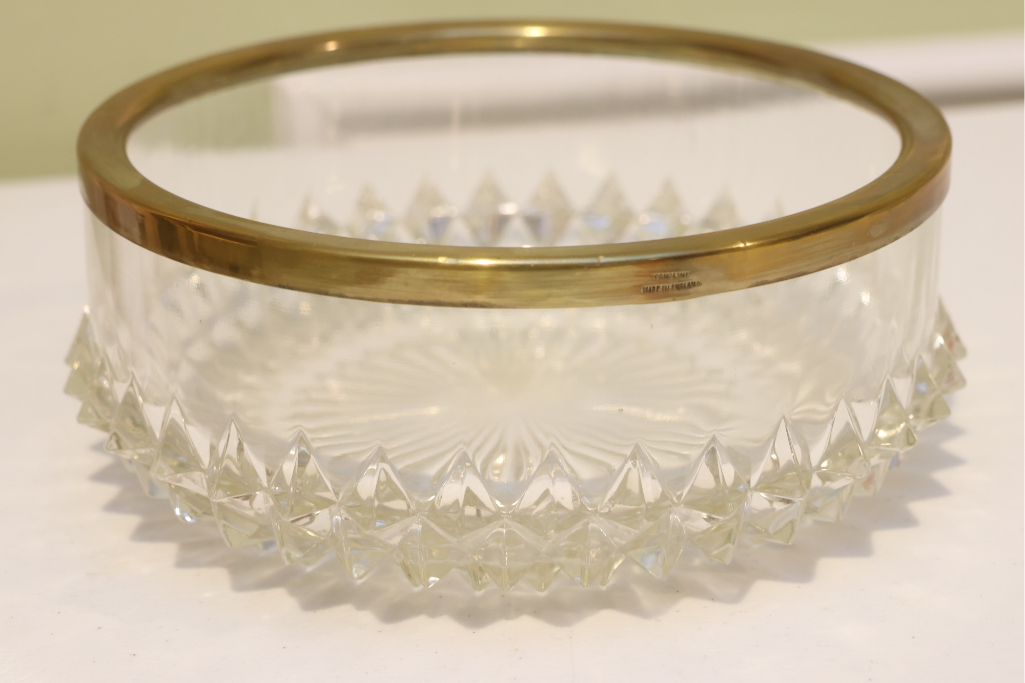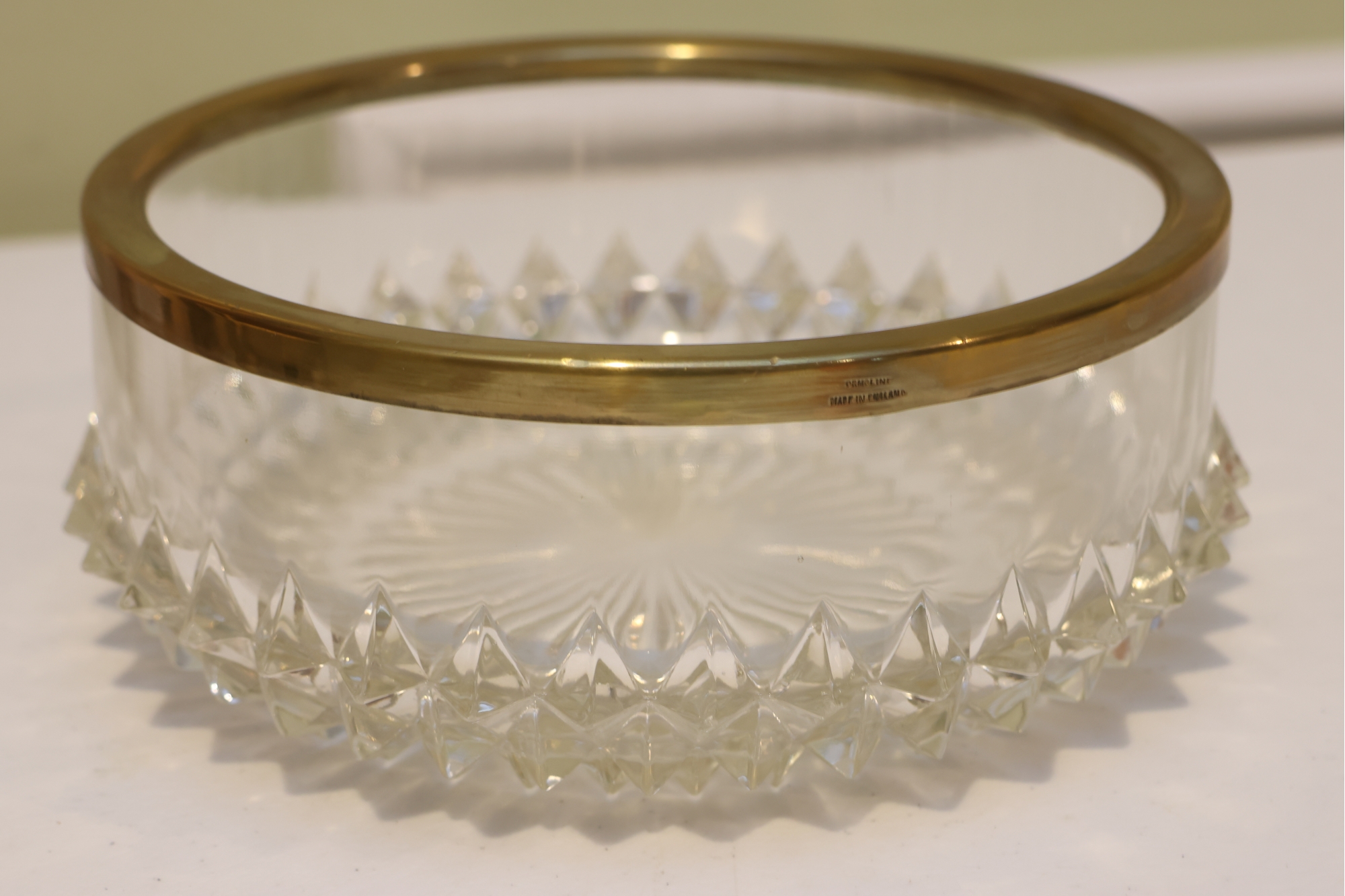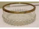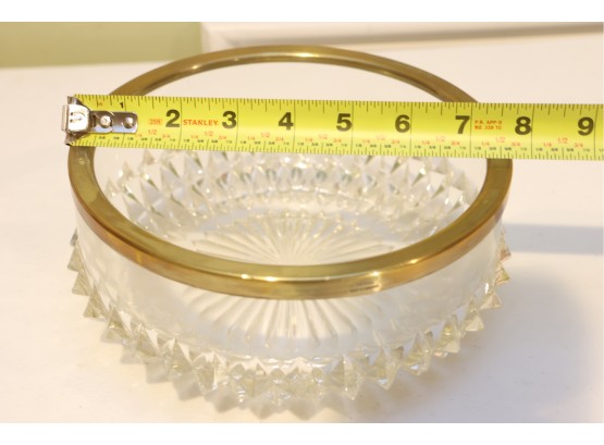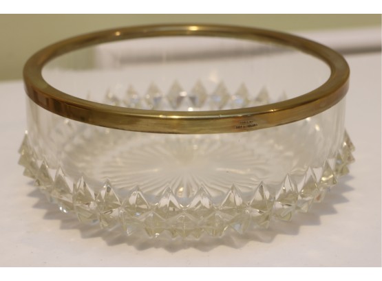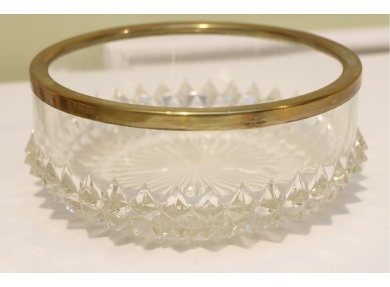 English Crystal Bowl With Brass Rim And Faceted Base