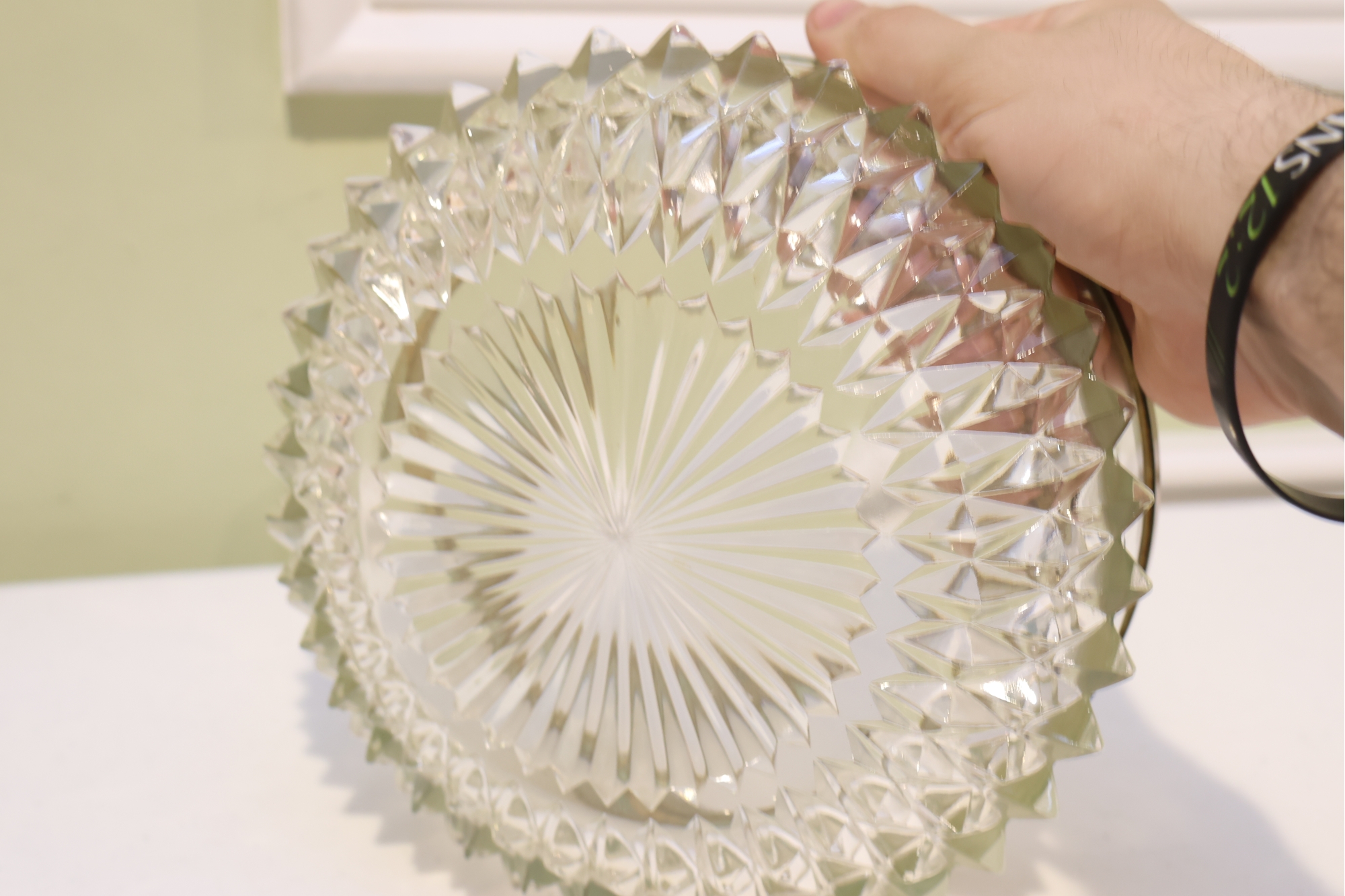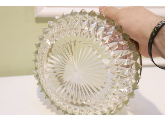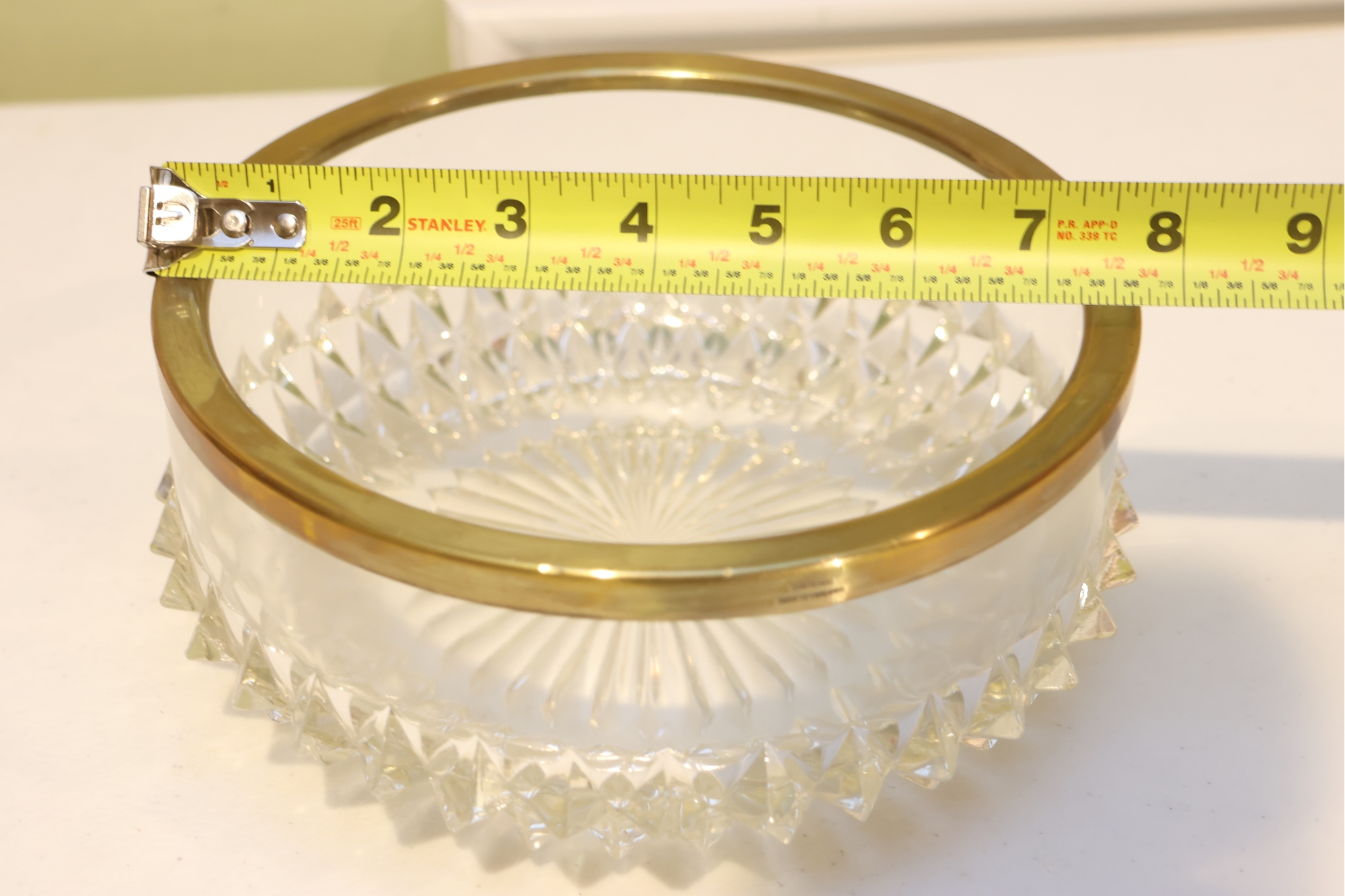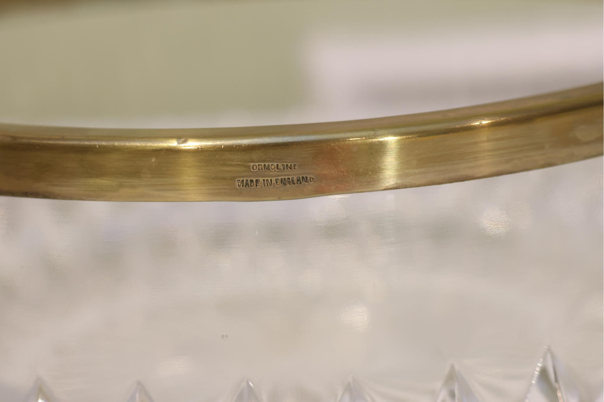 English Crystal Bowl With Brass Rim And Faceted Base
