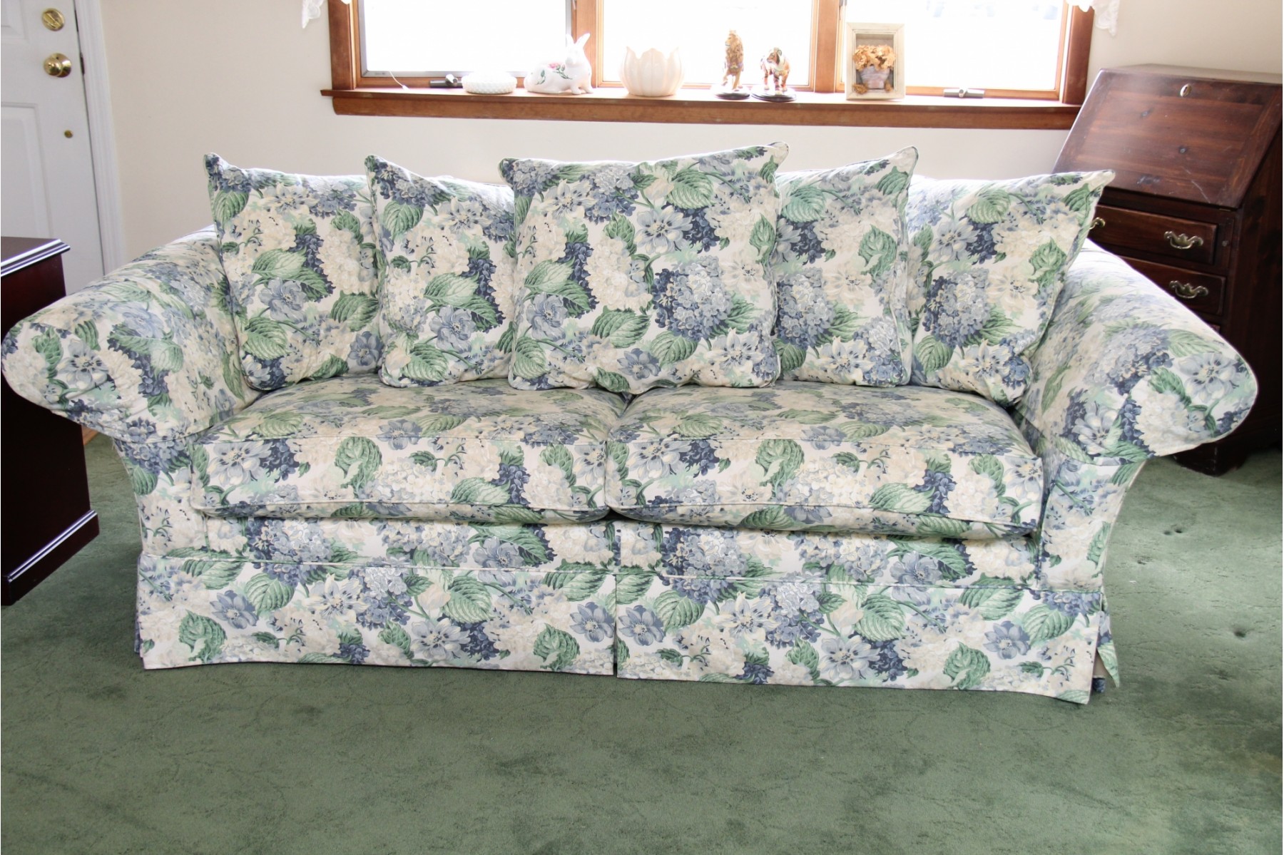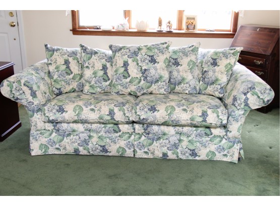 A beautiful Ethan Allen sofa with throw pillow back and comfy cushions. This item is in excellent condition