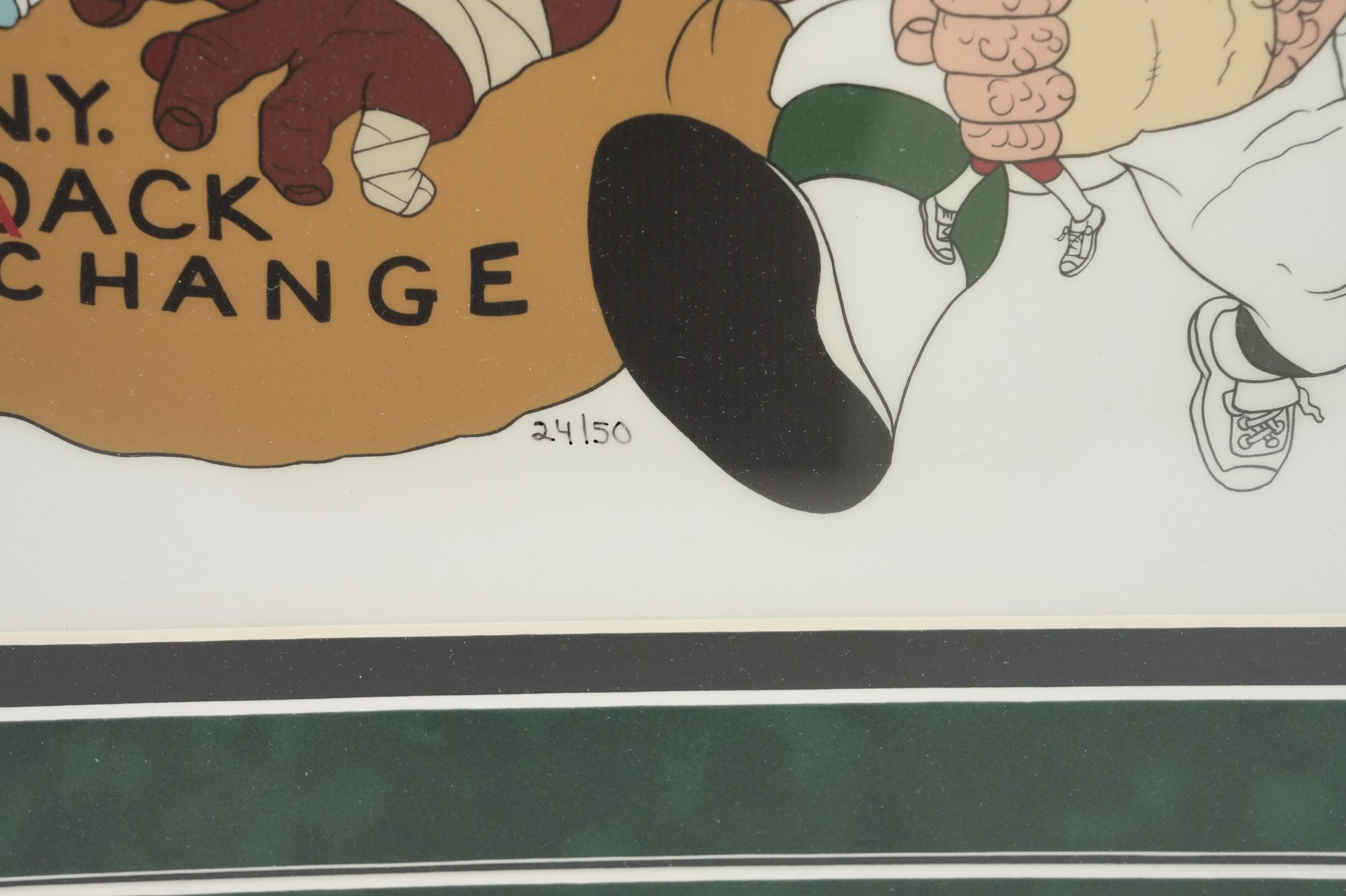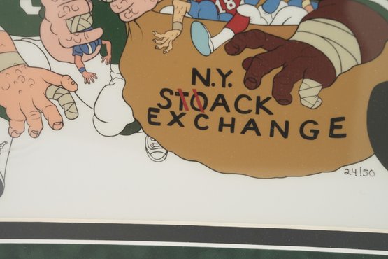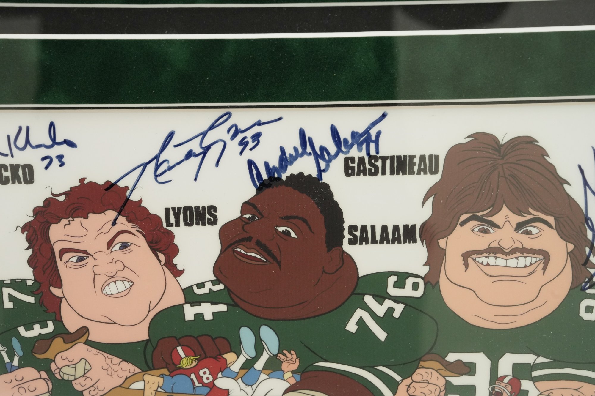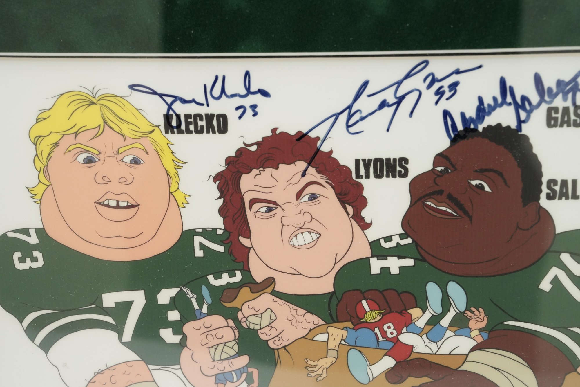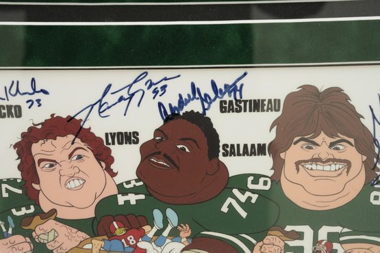 New York Jets (NFL football team) "The New York Sack Exchange" caricature art, autographed by defensive line back players, Mark Gastineau, Joe Klecko, Marty Lyons, and Abdul Salaam