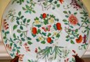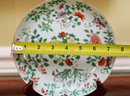 This is a beautifully decorated Chinese porcelain plate, likely an antique, featuring a richly detailed hand-painted floral design. The plate is adorned with an intricate pattern of vines, leaves, and flowers in vibrant shades of green, red, purple, and orange, all set against a white porcelain background. The design includes auspicious elements such as pomegranates, peonies, and butterflies, which are commonly associated with prosperity, longevity, and happiness in Chinese culture.