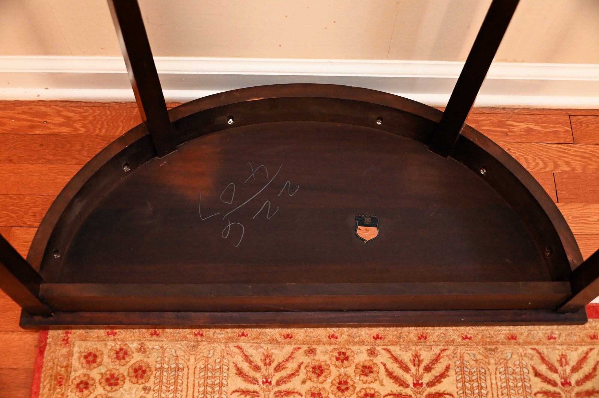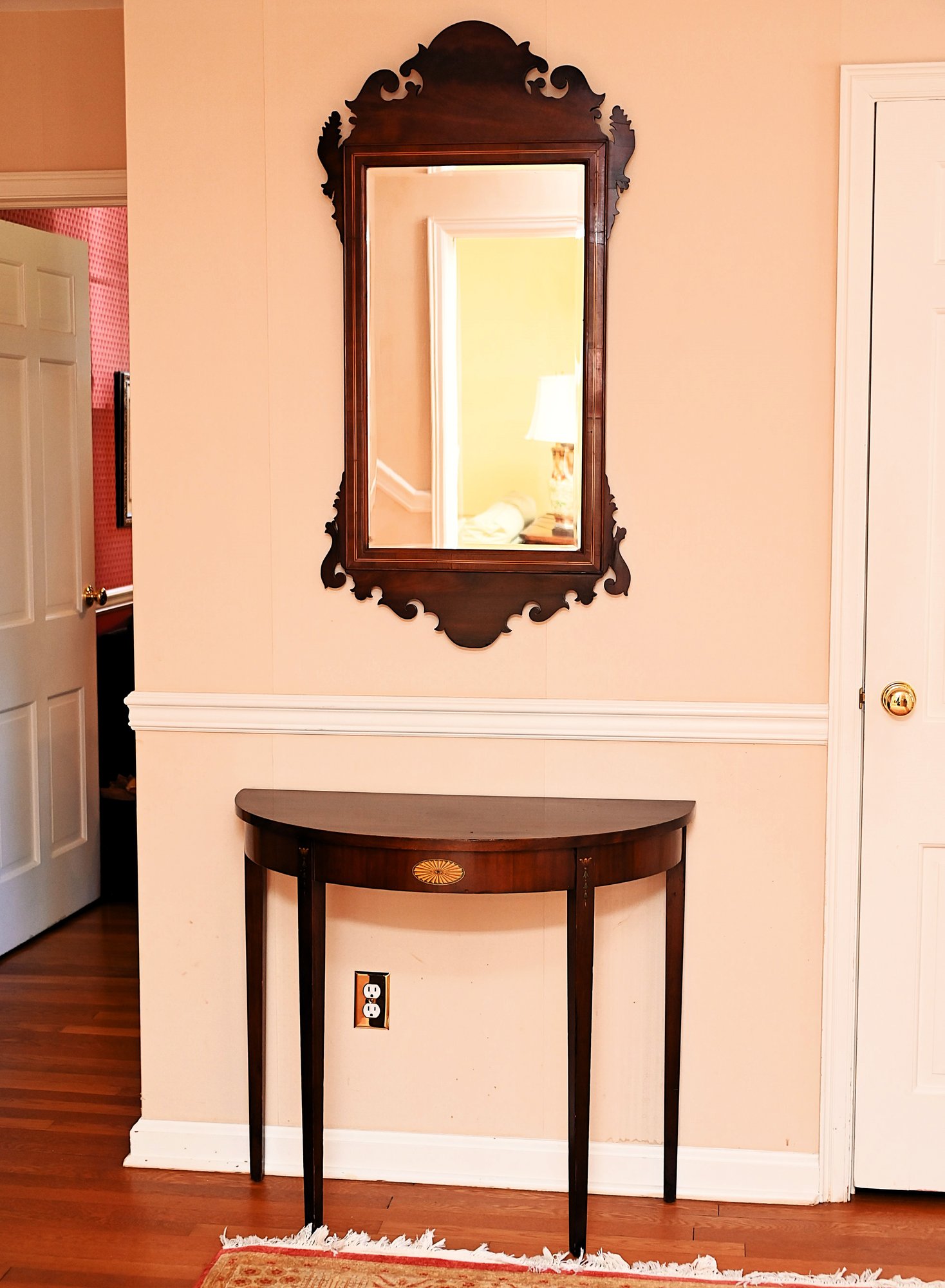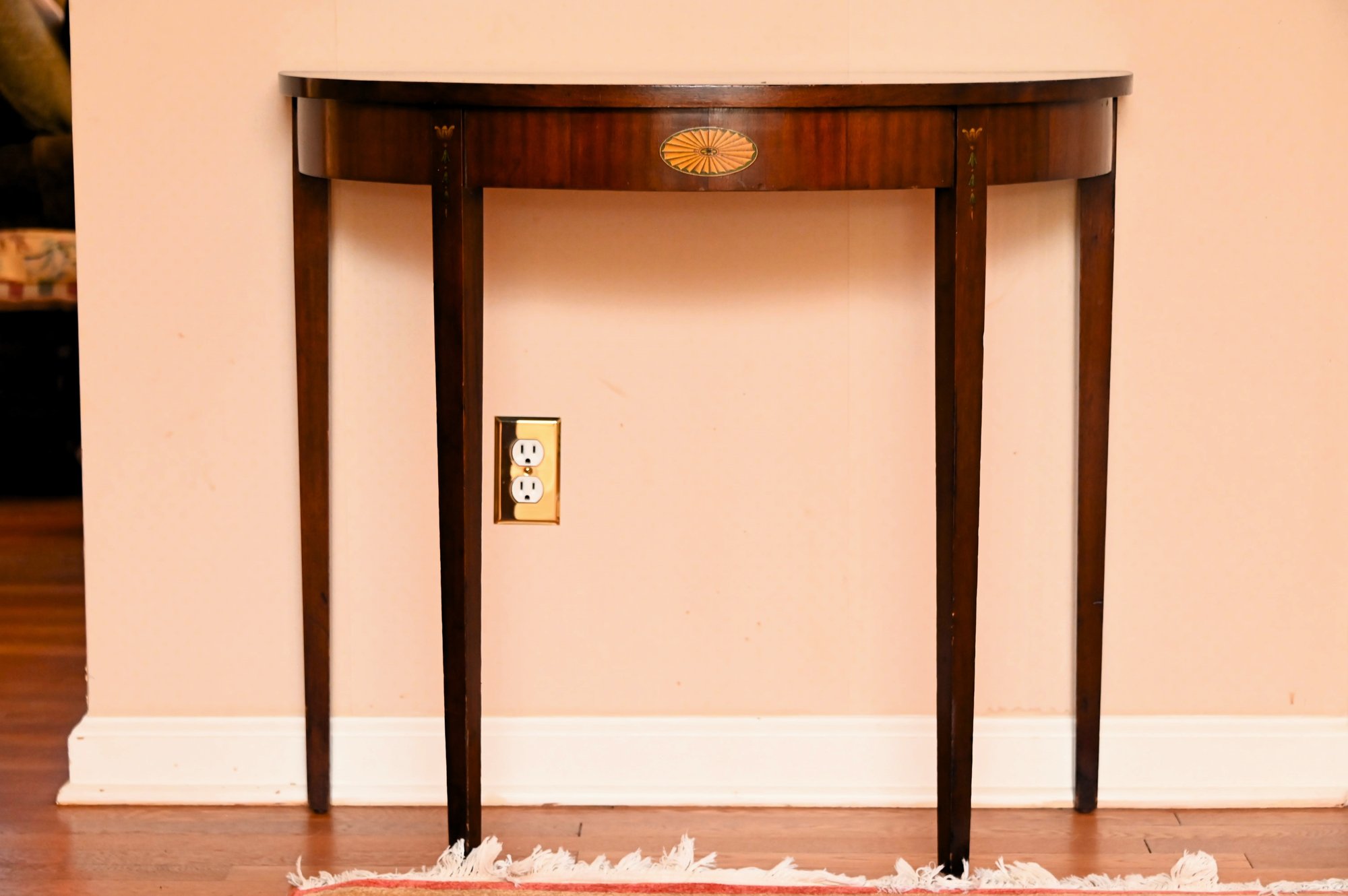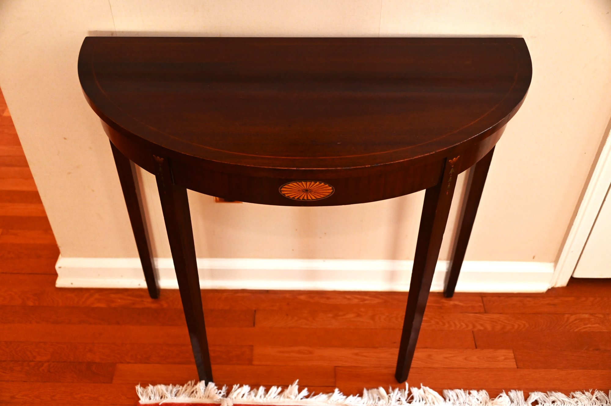 The demilune (half-moon) console table is a beautifully crafted piece in a Federal-style design.