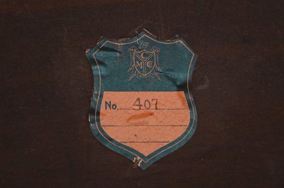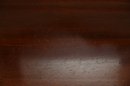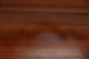 The inlaid sunburst motif on the apron adds a touch of elegance and craftsmanship, enhancing the warm mahogany wood grain.