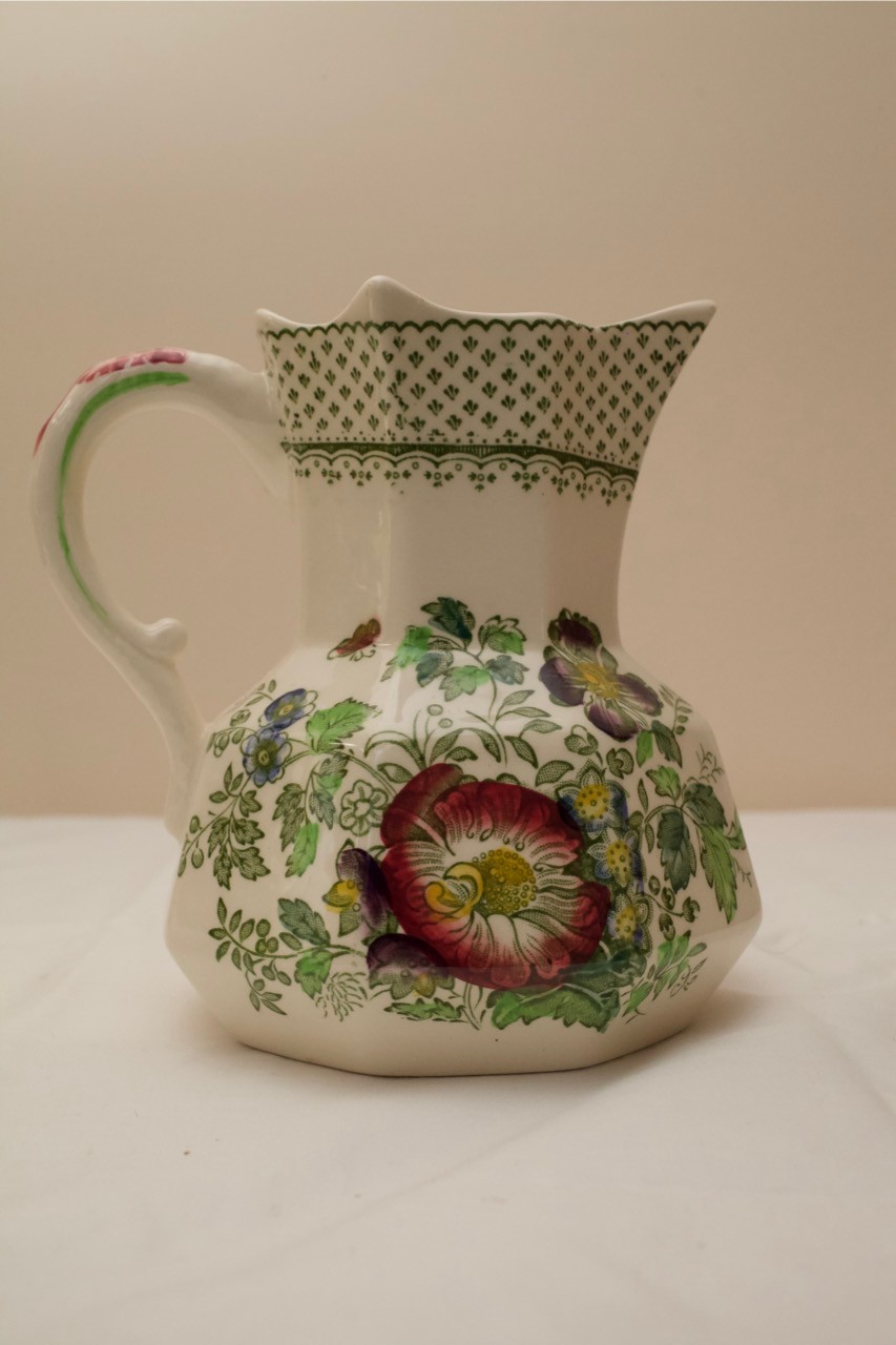 Floral Decorated Ceramic Pitcher And Matching Bowl