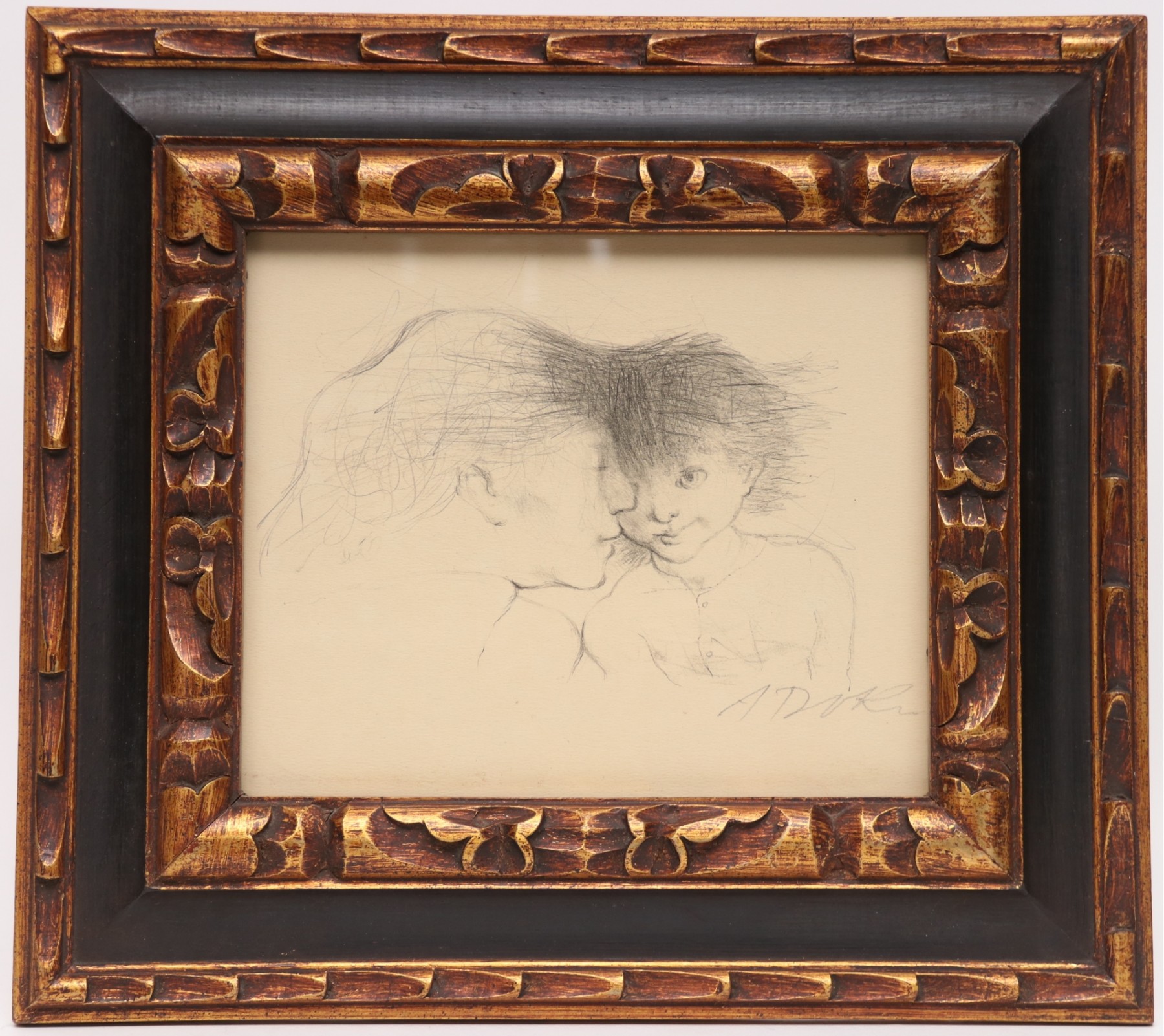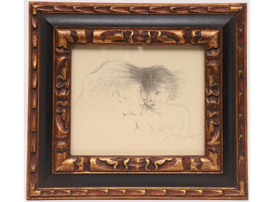 This sketch is in a gold and black frame ready to hang. This item is in overall good condition.