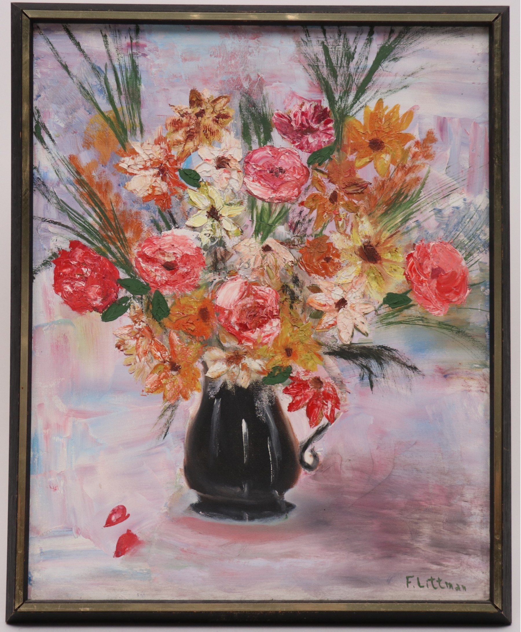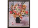 This canvas painting is in good condition in a dark wooden frame with brass trim ready to hang.